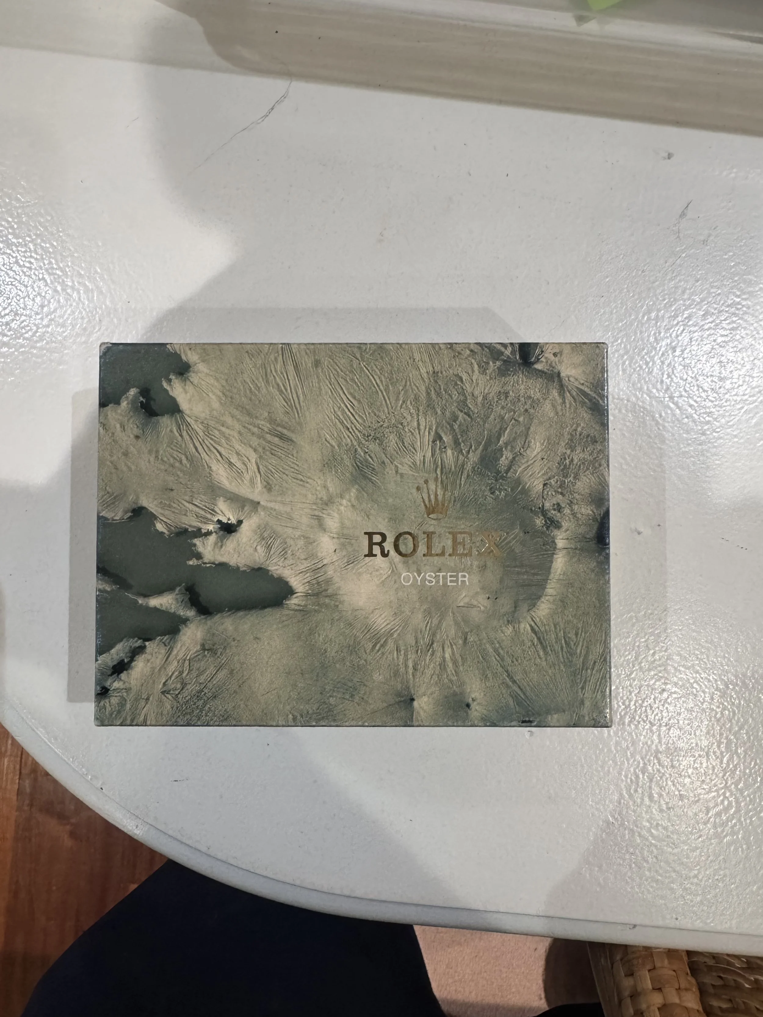 The watch comes with box and service papers from 2021. We do not know the service history, but it is running well. It comes from the original owner. It recently passed a water resistance test of 5 bar.