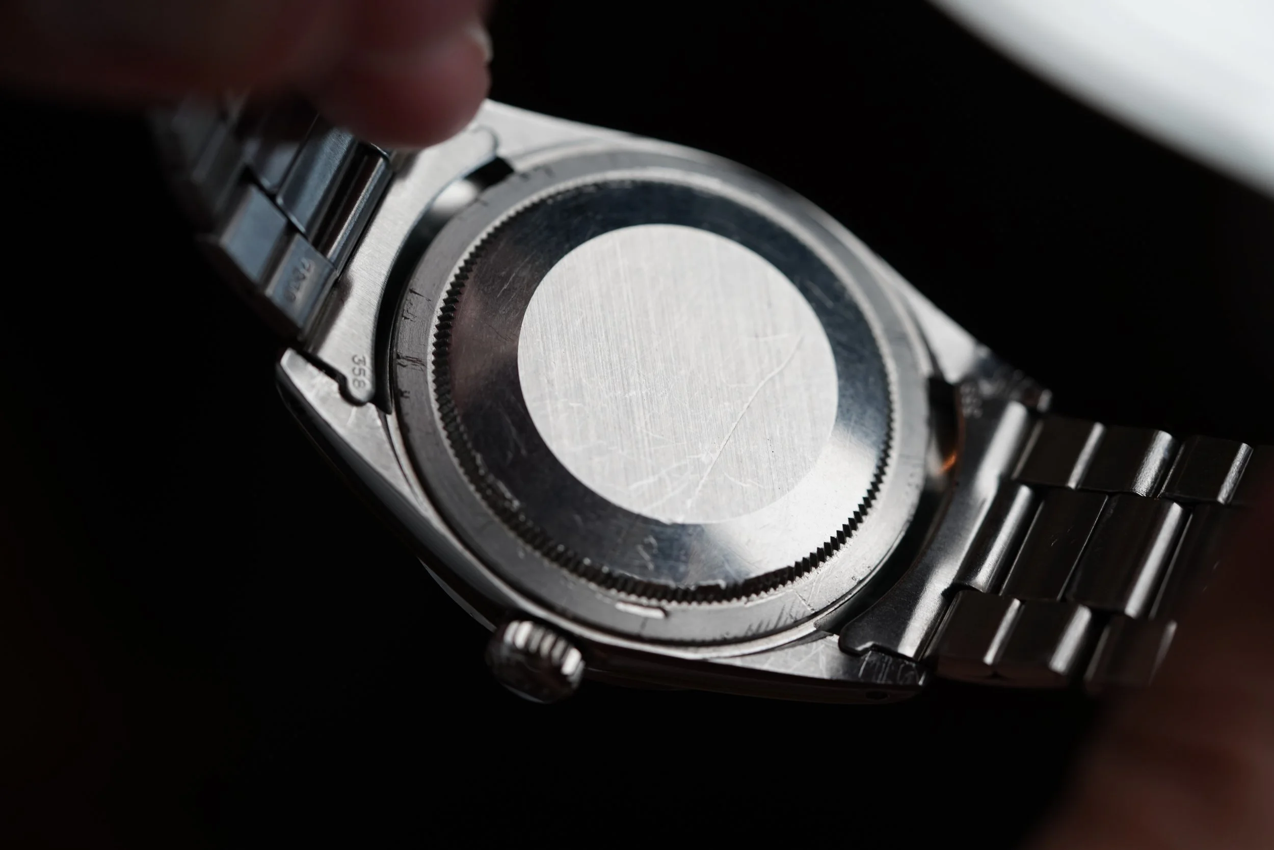 This example dates to circa late 1974 with a 3.6M serial. It features a tritium matte dial. The case has been polished. It measures 36mm in diameter (43mm lug-to-lug). It is paired on Rolex folded Oyster 7838 bracelet with 358 end links without date code dating to 1973-1975. The hands have been relumed.