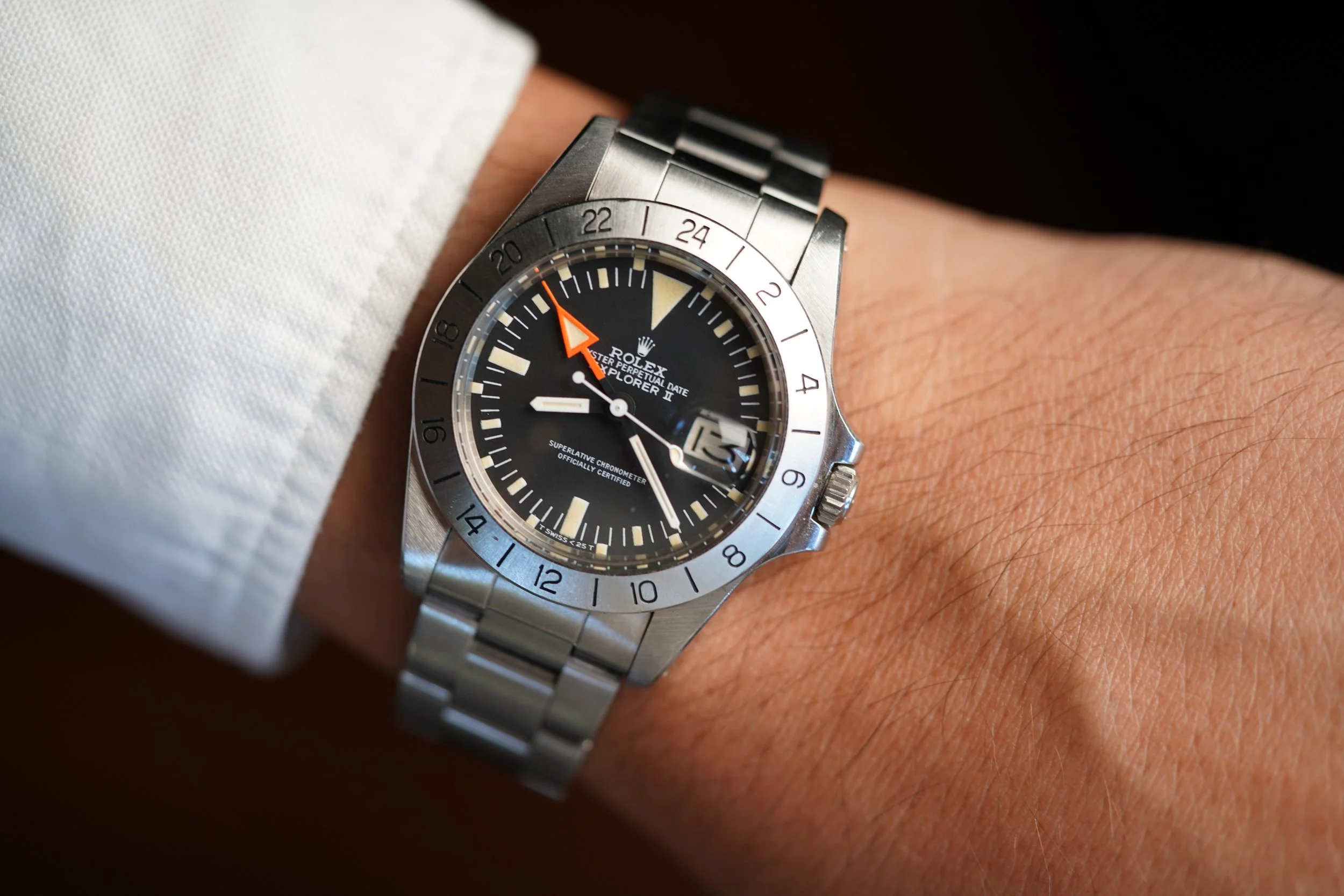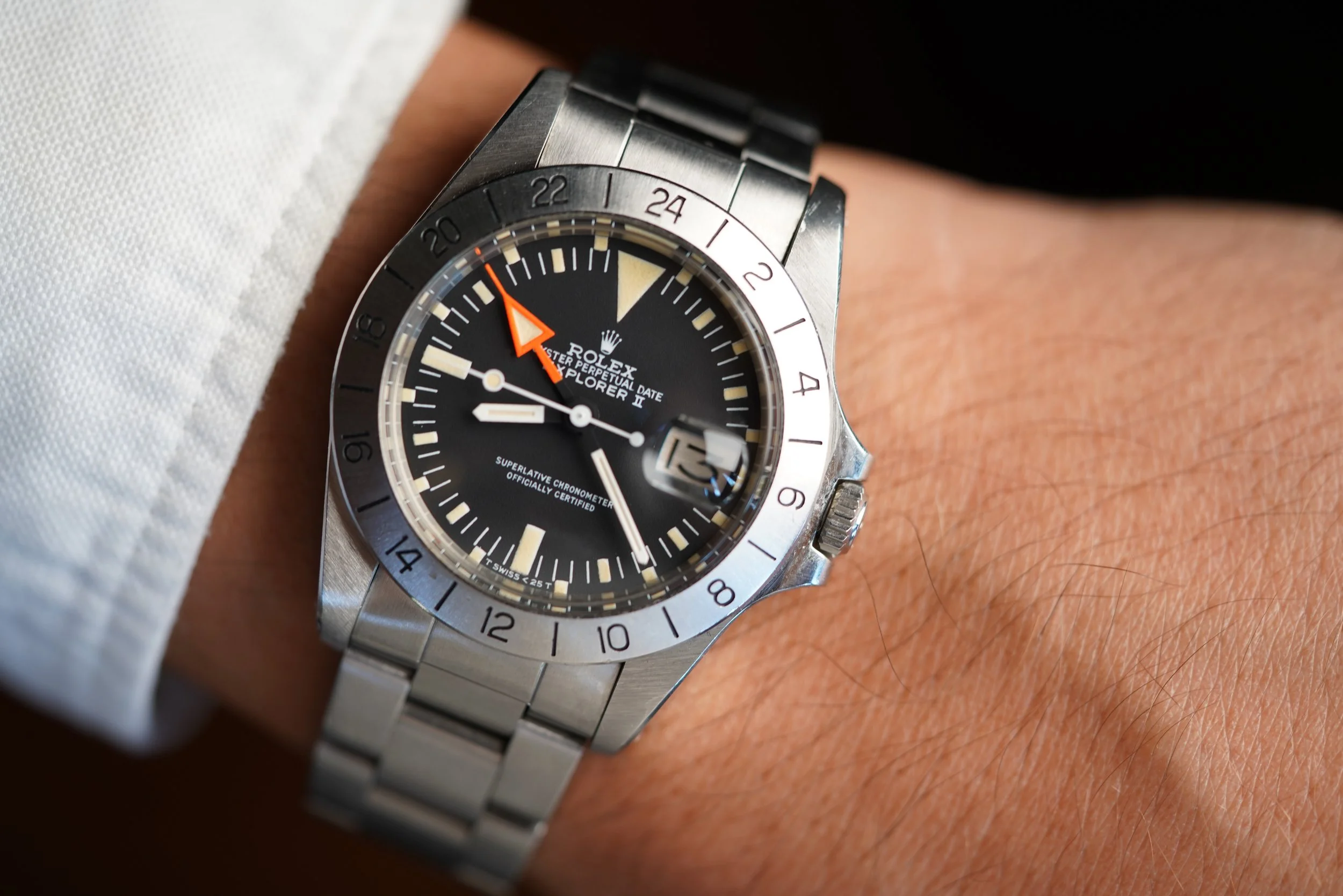 Rolex introduced the Explorer II reference 1655 for use by spelunkers (cave diving) and speleologists (cave researchers) where the use of a 24-hour hand is important for the wearer to be able to differentiate between night and day. These watches also have the nickname ‘Freccione’ meaning ‘big arrow’ in Italian and are sometimes falsely called the “Steve McQueen” despite no evidence he ever owned or wore one. A slow seller when initially released, the reference 1655 has gained a cult following due its unusual and distinctive design. The reference 1655 is one of the references I am asked most often to find for collectors.