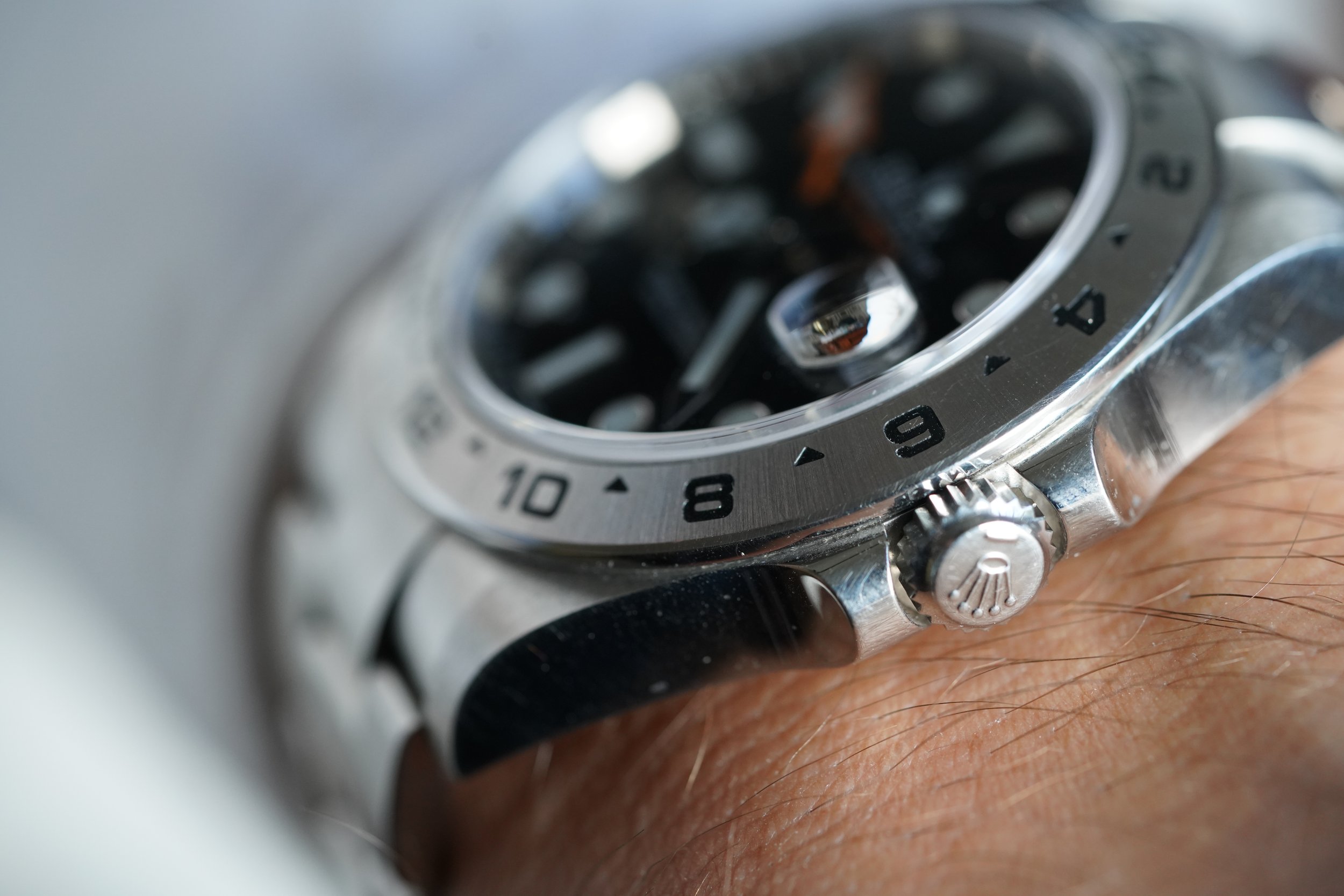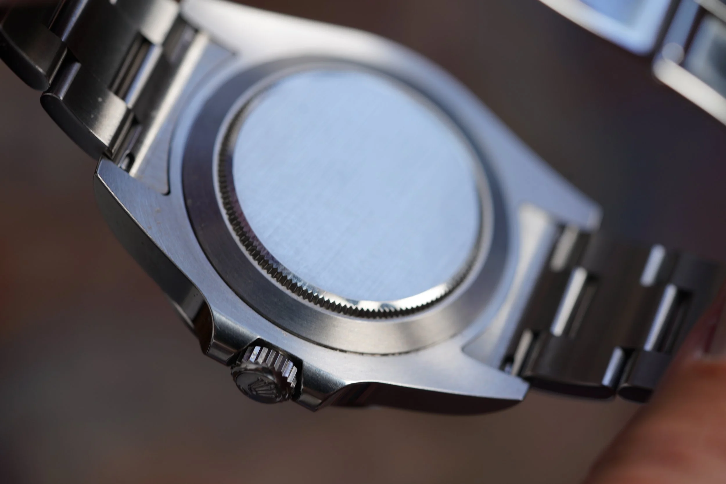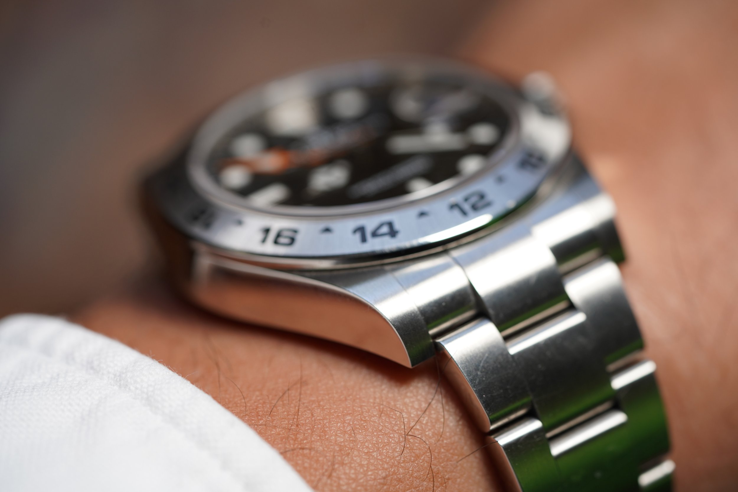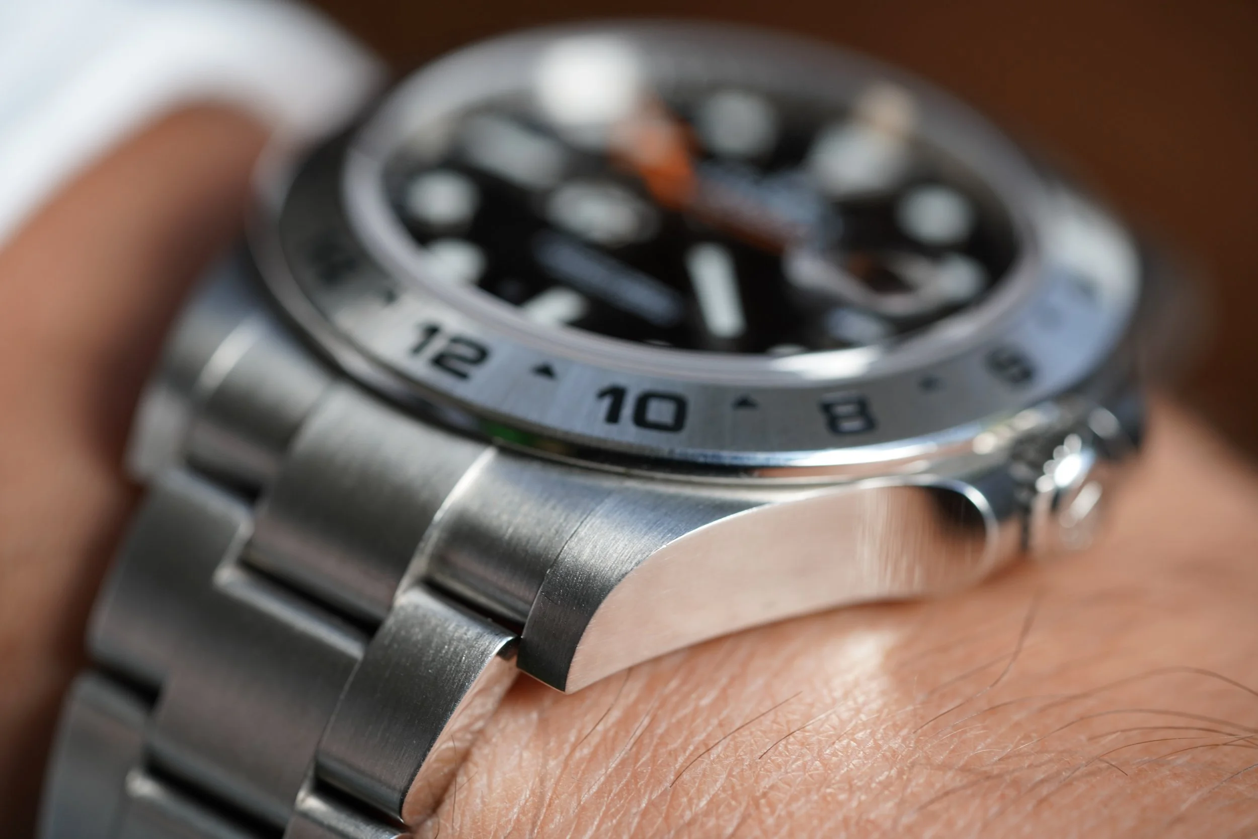 This Rolex Explorer II reference 216570 is an awesome example. The case measures 42mm in diameter (and 50.5mm lug-to-lug). This example remains unpolished and dates to circa 2020