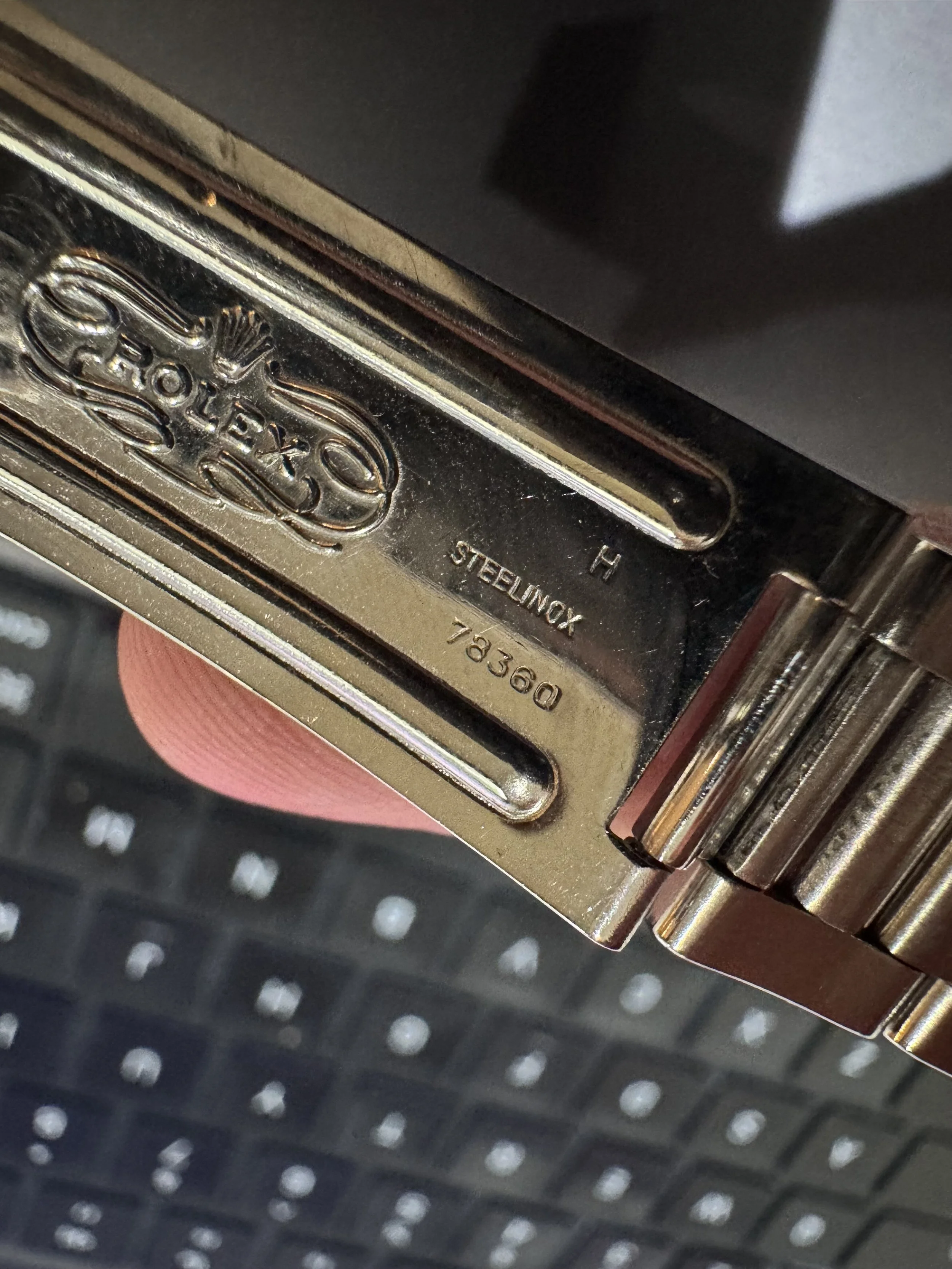 It features a 78360 bracelet with H date code dating to 1983.