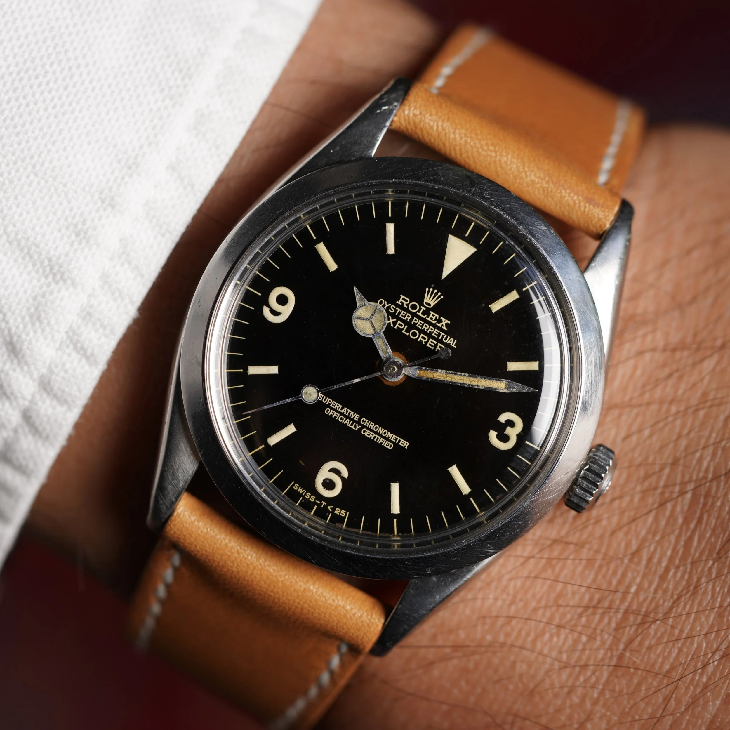 The ref. 1016 marked the first Explorer with “Superlative Chronometer Officially Certified" printed on the dial. It is one of the most desired timepieces and for great reason. The 1016 is one of the purest expressions of watch design and for this reason that I am probably asked for vintage Explorer reference 1016s more than any other watch.