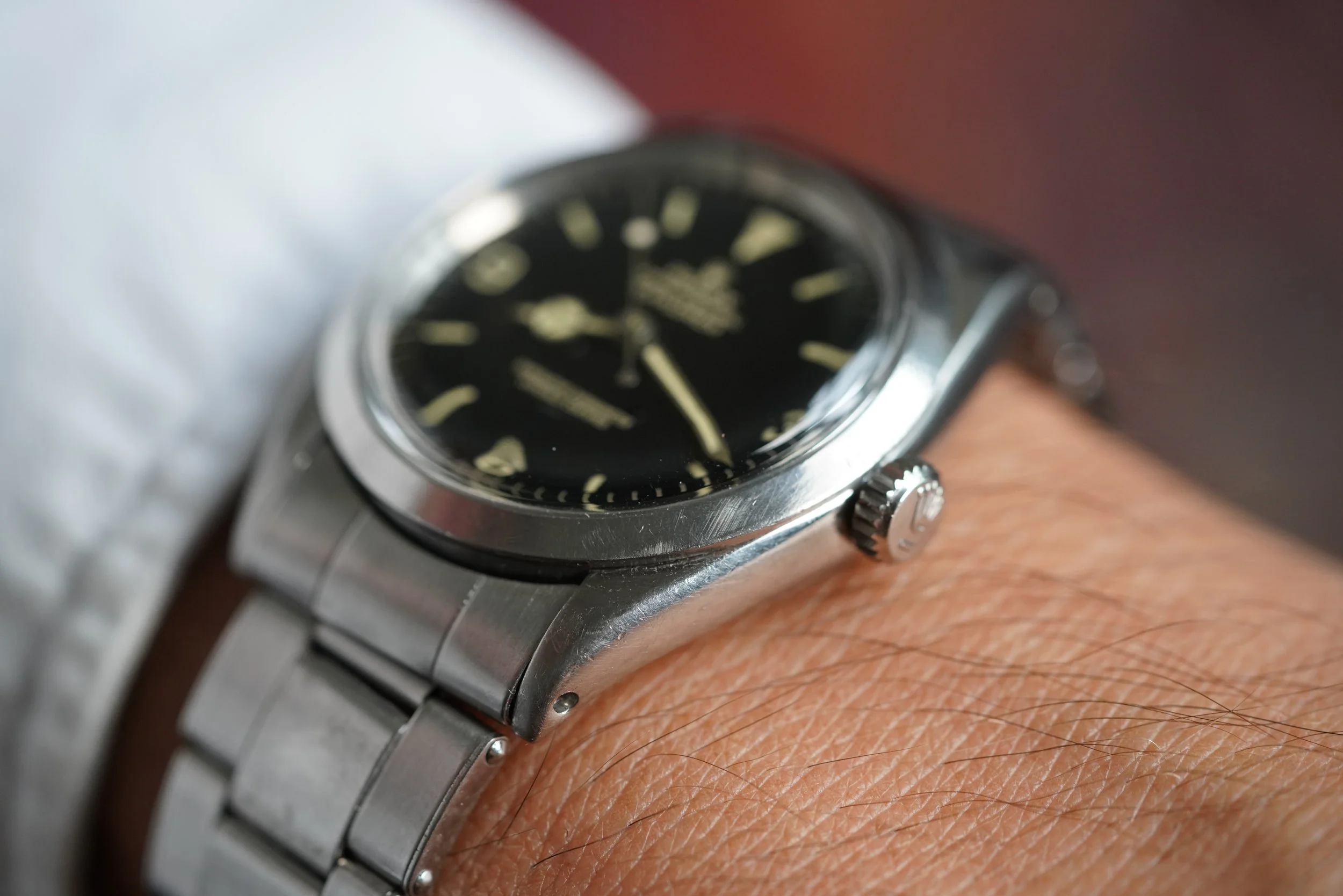 The ref. 1016 marked the first Explorer with “Superlative Chronometer Officially Certified" printed on the dial. It is one of the most desired timepieces and for great reason. The 1016 is one of the purest expressions of watch design and for this reason that I am probably asked for vintage Explorer reference 1016s more than any other watch.