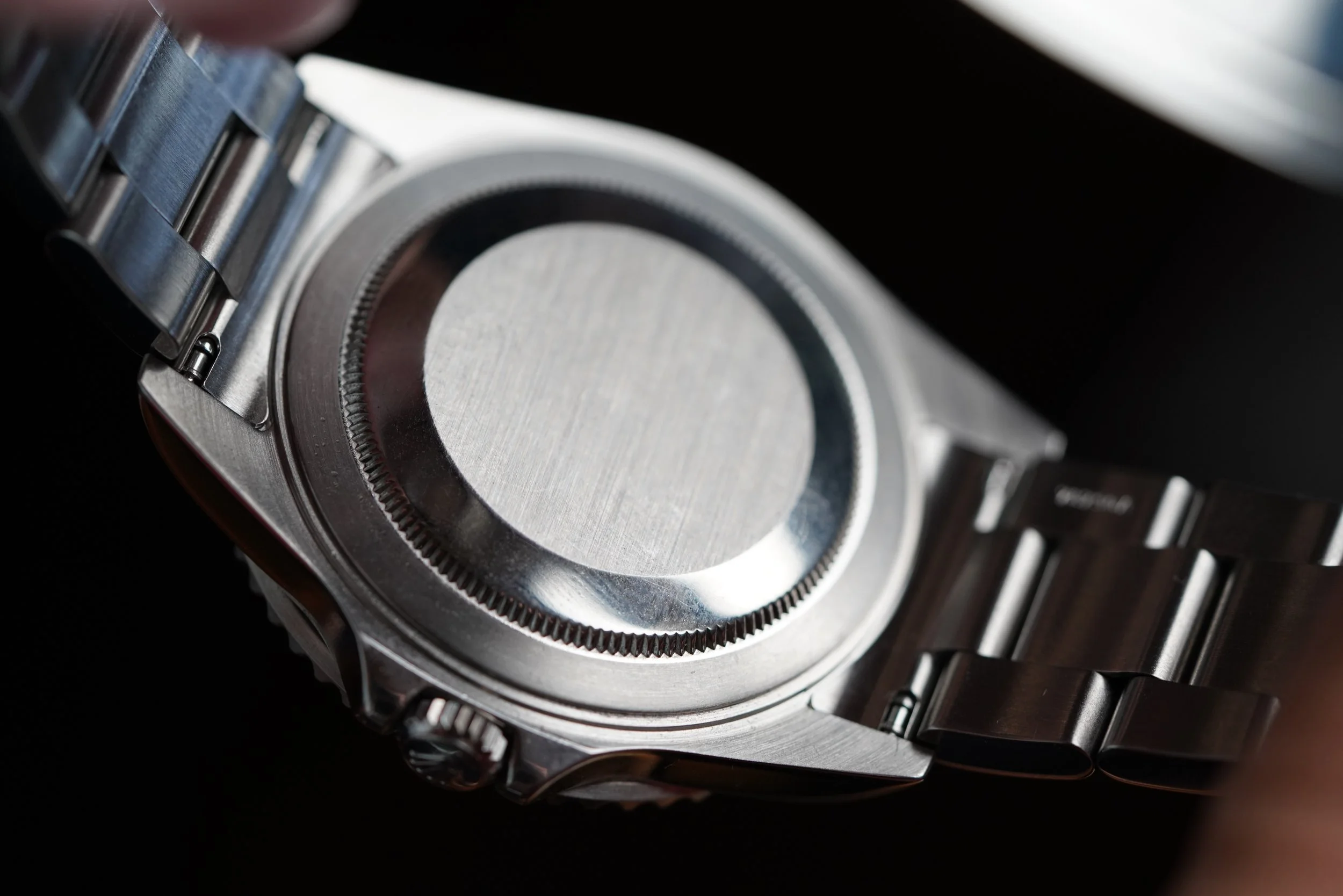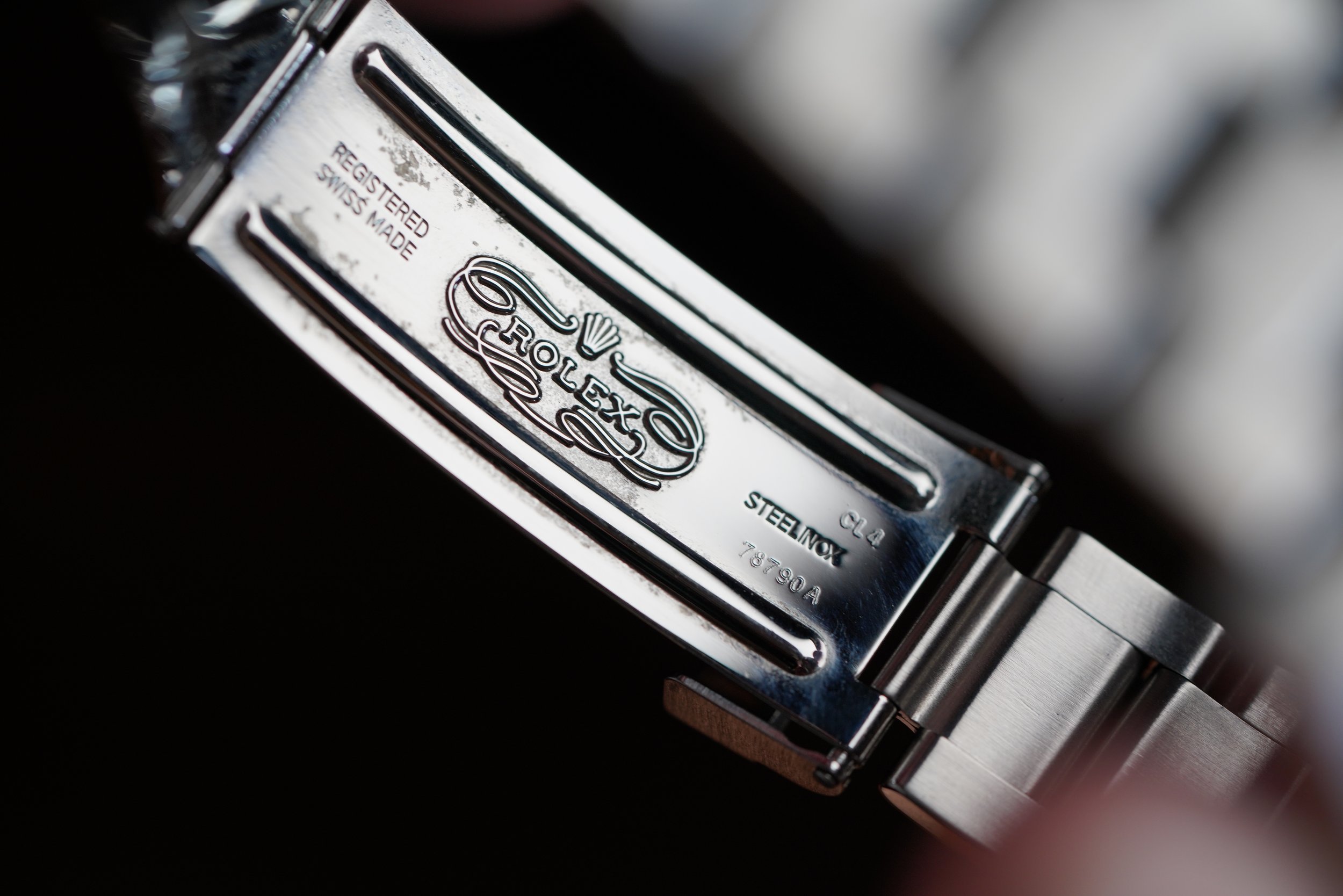 This example, reference 16710, a stainless steel model, with an F serial dates to circa 2004-2005. It is paired on a reference 78790A Oyster bracelet with a CL clasp code dating to circa 2004, likely original to the watch. The watch features a black and red “Coke” bezel insert. The watch was a part of the Rolex certified pre-owned program. The case has been polished in the past.