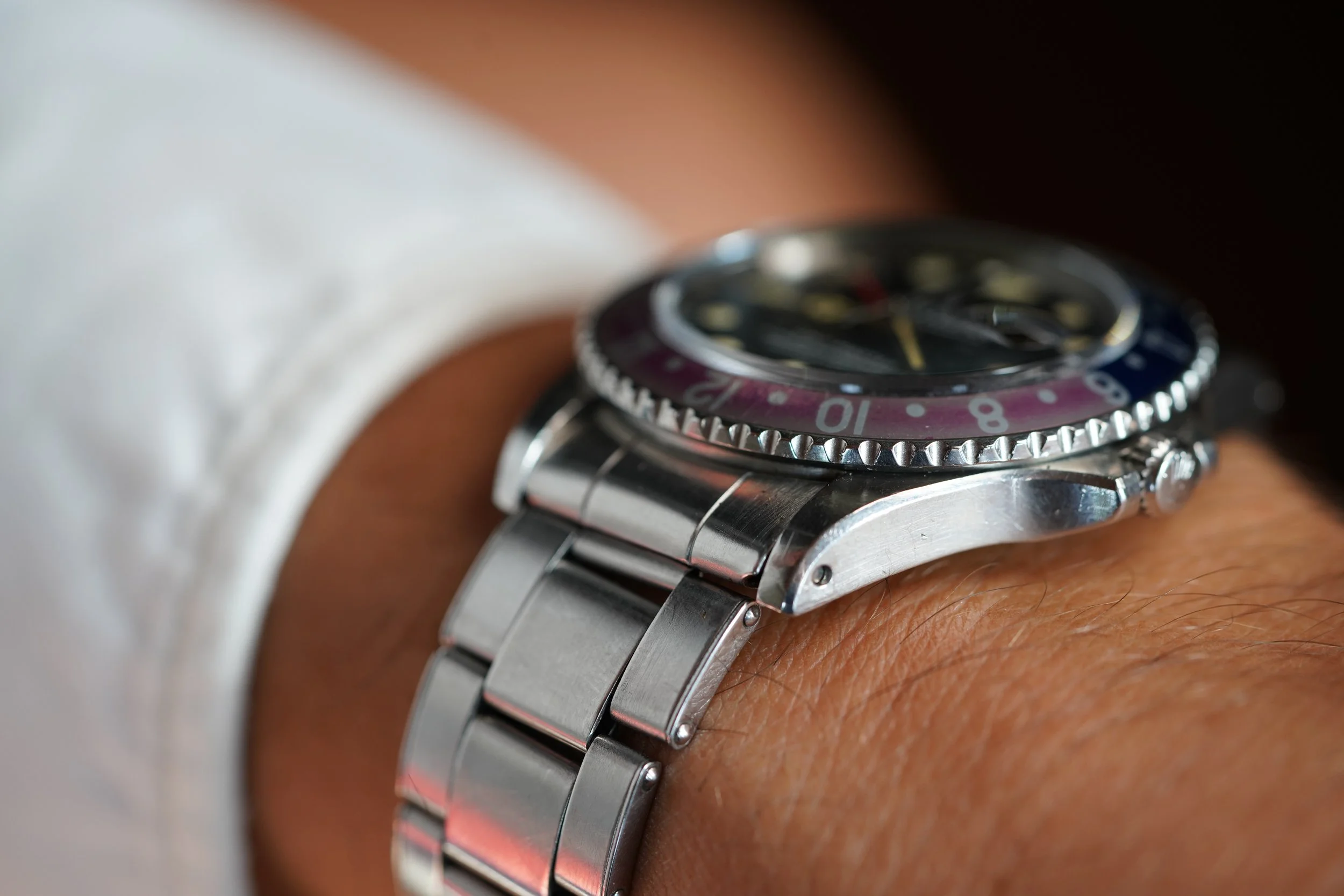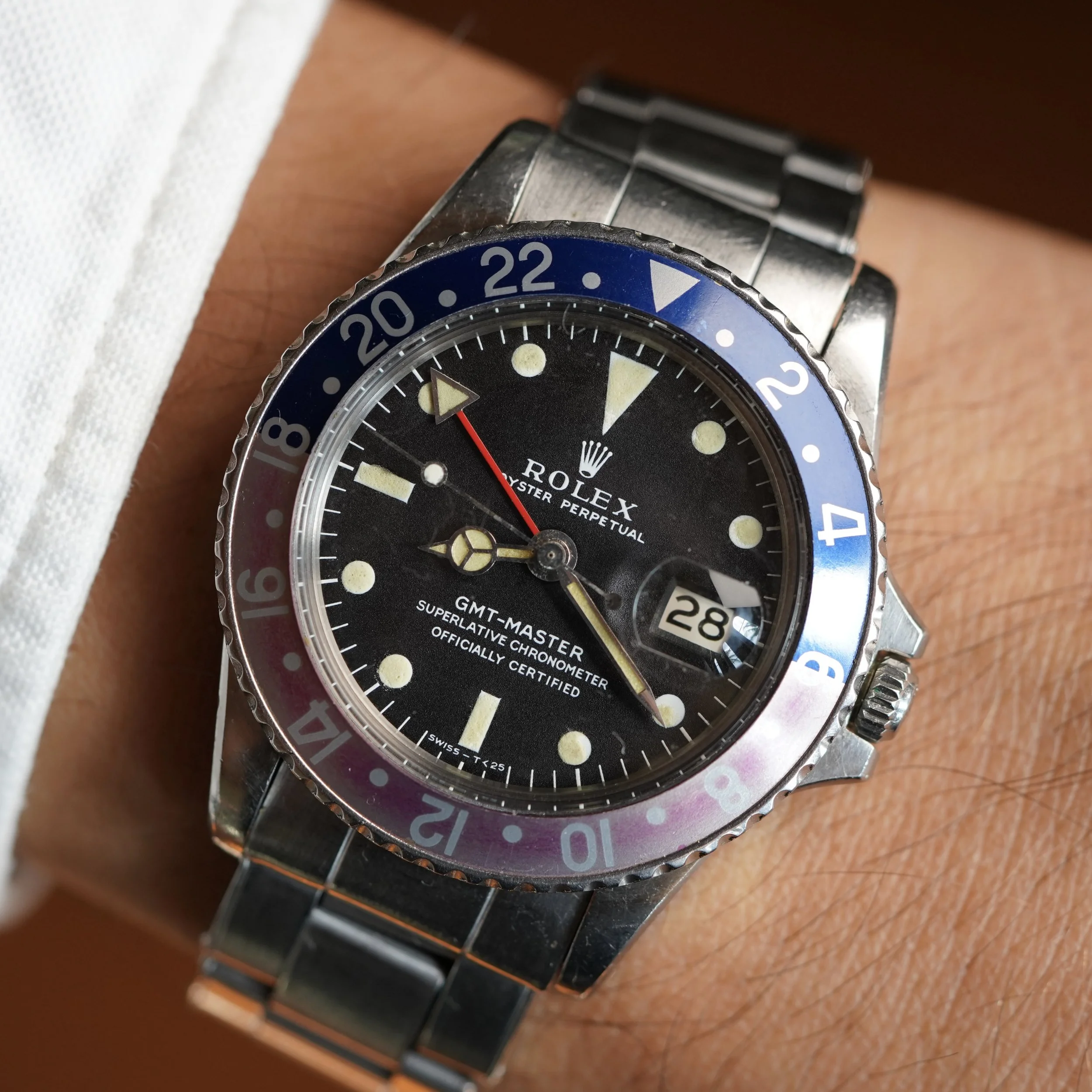 The Rolex GMT-Master was originally designed for Pan Am pilots in the 1950s and continues to be a flagship model for Rolex to this day. The reference 1675 was introduced in 1959 and remained in production until 1980.