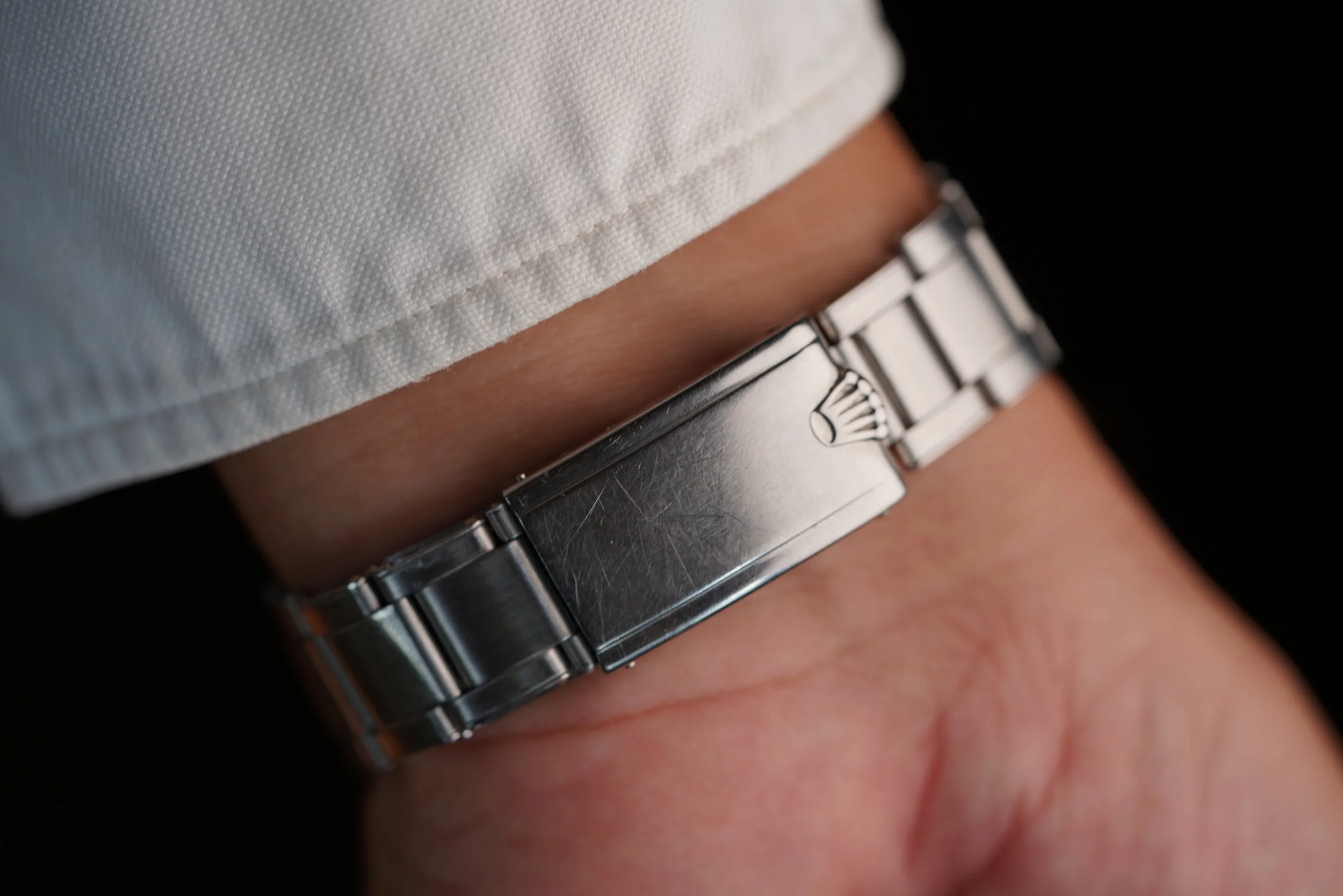 The case appears to be unpolished. It is paired on a 7206 Rivet Oyster bracelet dating to circa 1968.
