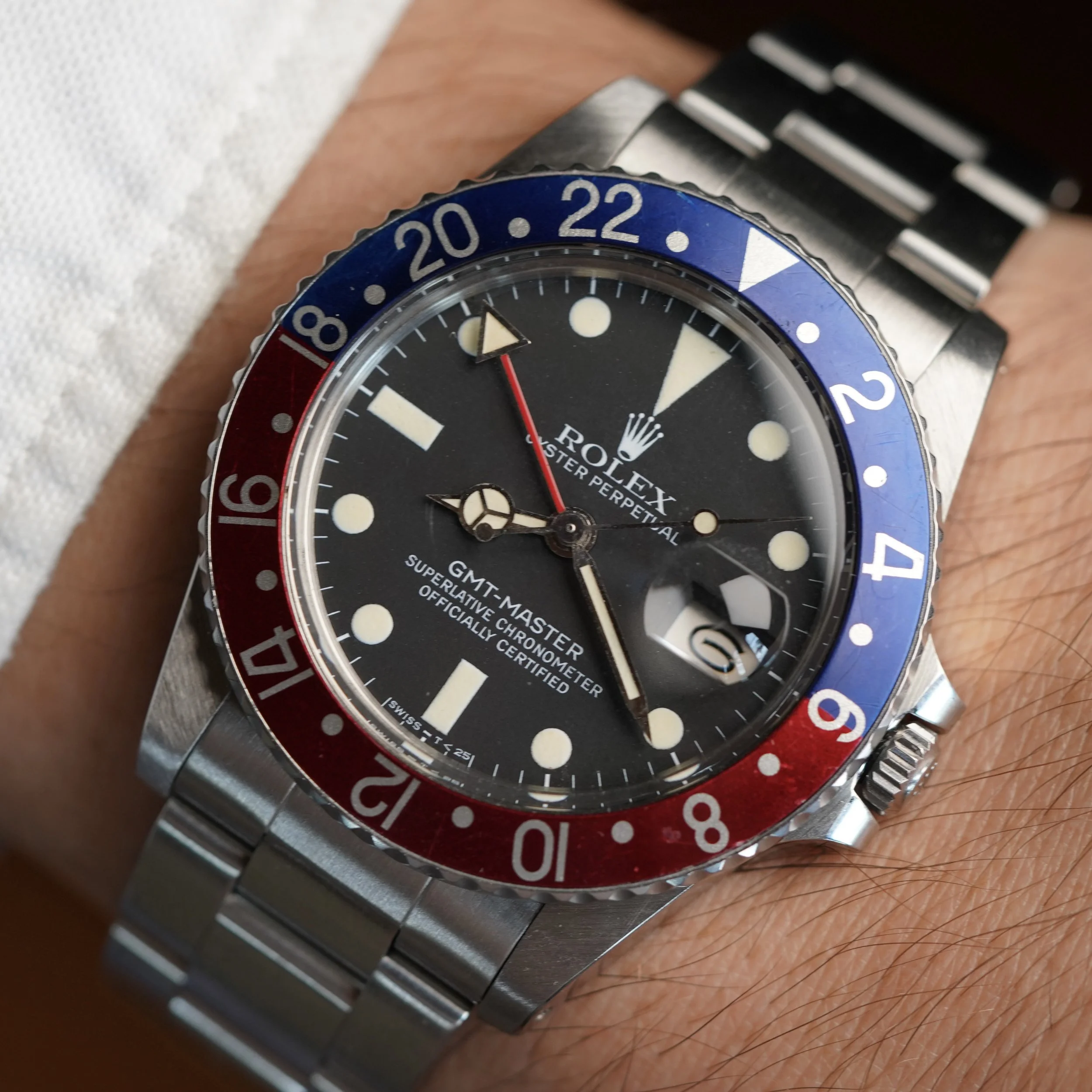 To learn more about the Rolex GMT-Master, you can watch my ‘Reference Points: Understanding The Rolex GMT-Master' video and read the corresponding article. You can also read our comprehensive article ‘Collector's Guide: The Rolex GMT-Master Reference 1675 In Steel’.