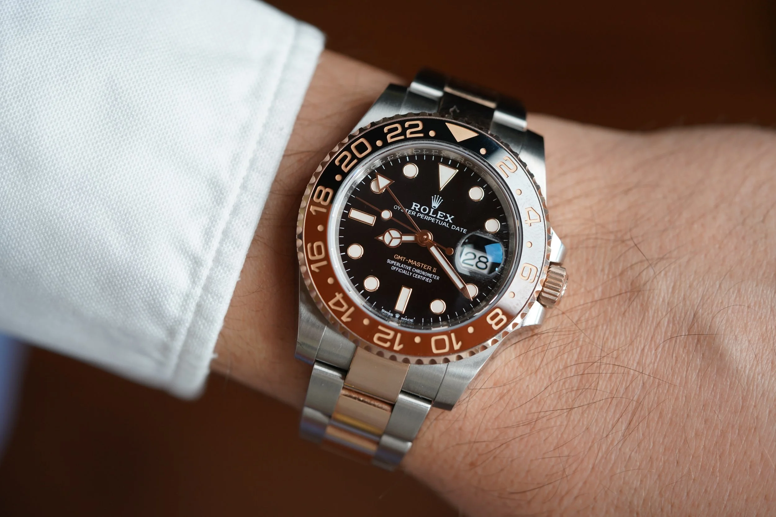Rolex “Root Beer” GMT-Master II reference 126711CHNR is a great modern sports watch. It captures the iconic DNA from the two-tone vintage models. Due to its incredible heritage and iconic look, the GMT remains a flagship model for Rolex to this day.