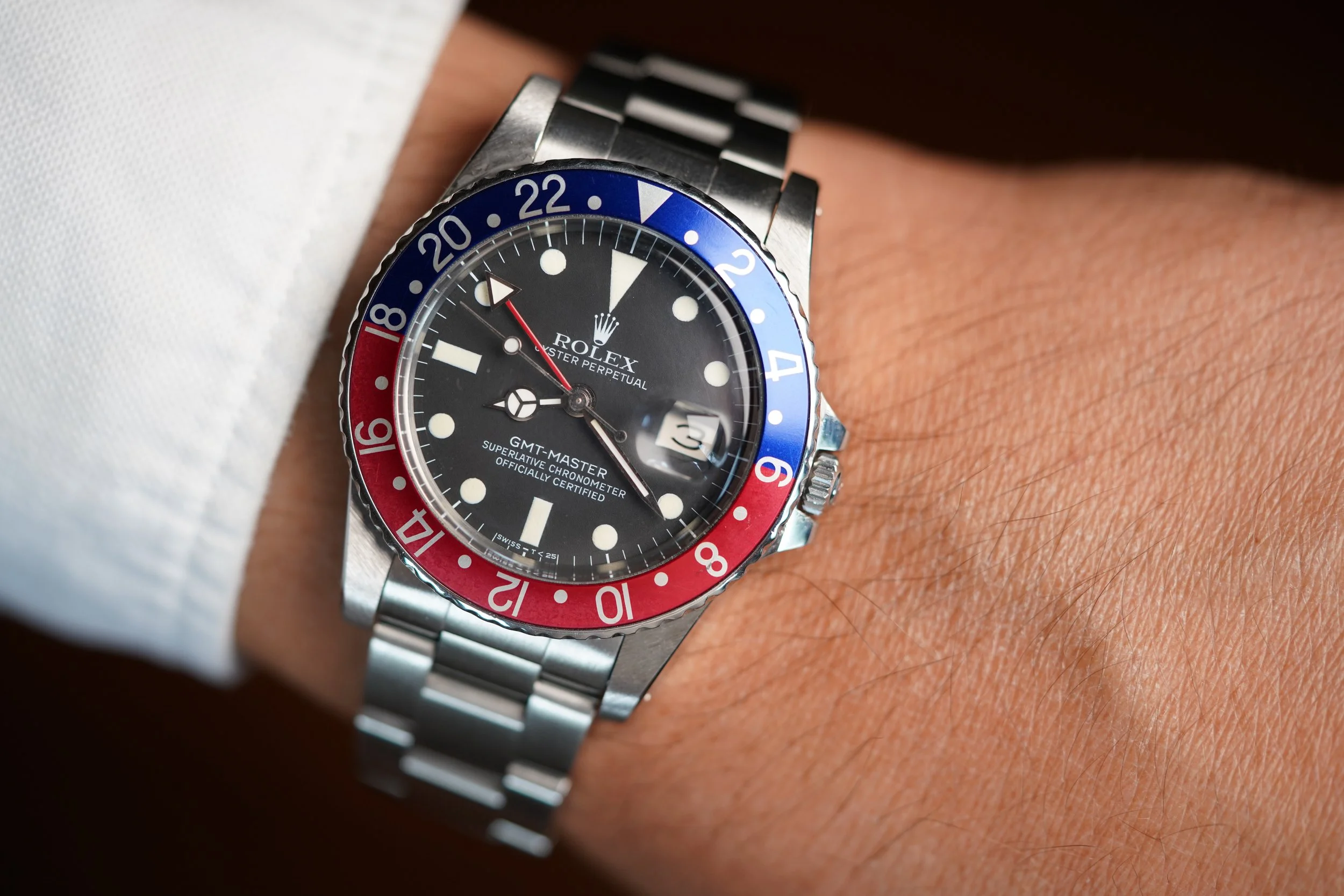 To learn more about the Rolex GMT-Master, you can watch my ‘Reference Points: Understanding The Rolex GMT-Master' video and read the corresponding article. You can also read our comprehensive article ‘Collector's Guide: The Rolex GMT-Master Reference 1675 In Steel’.