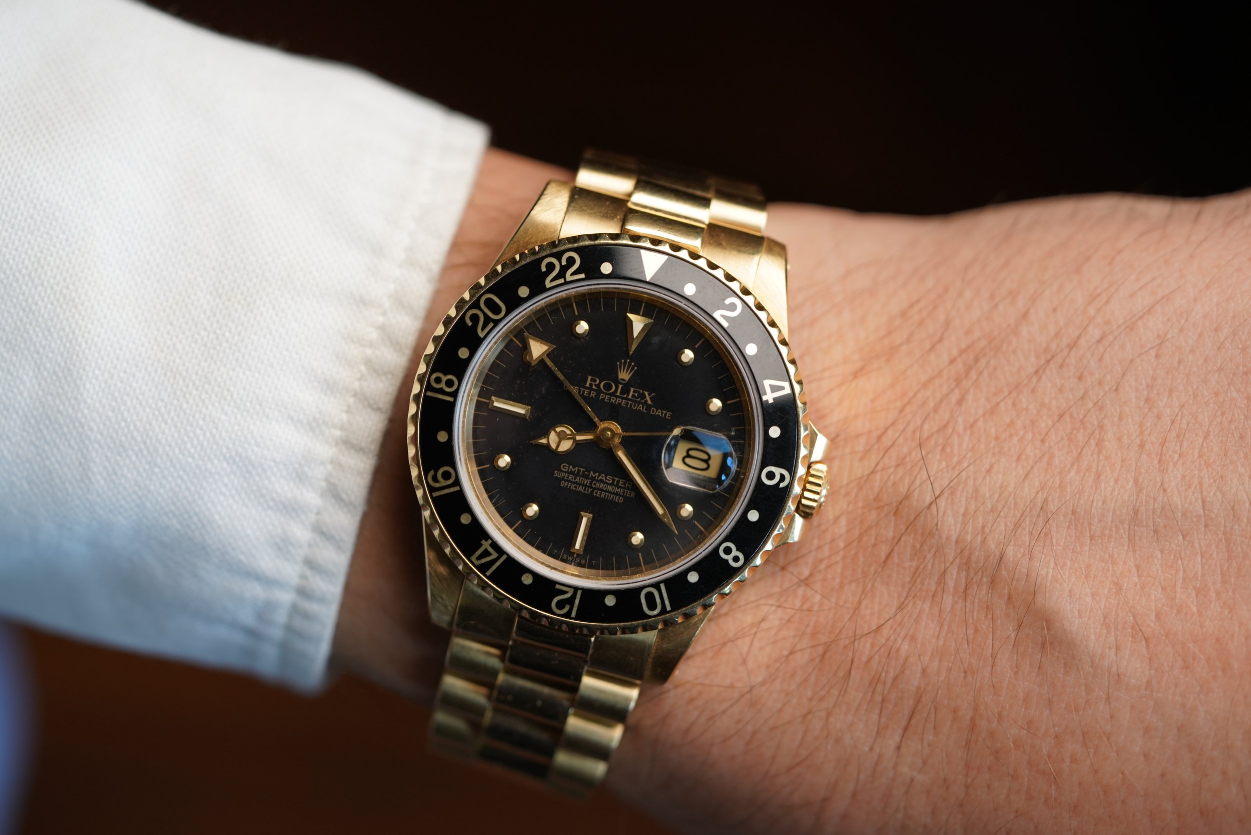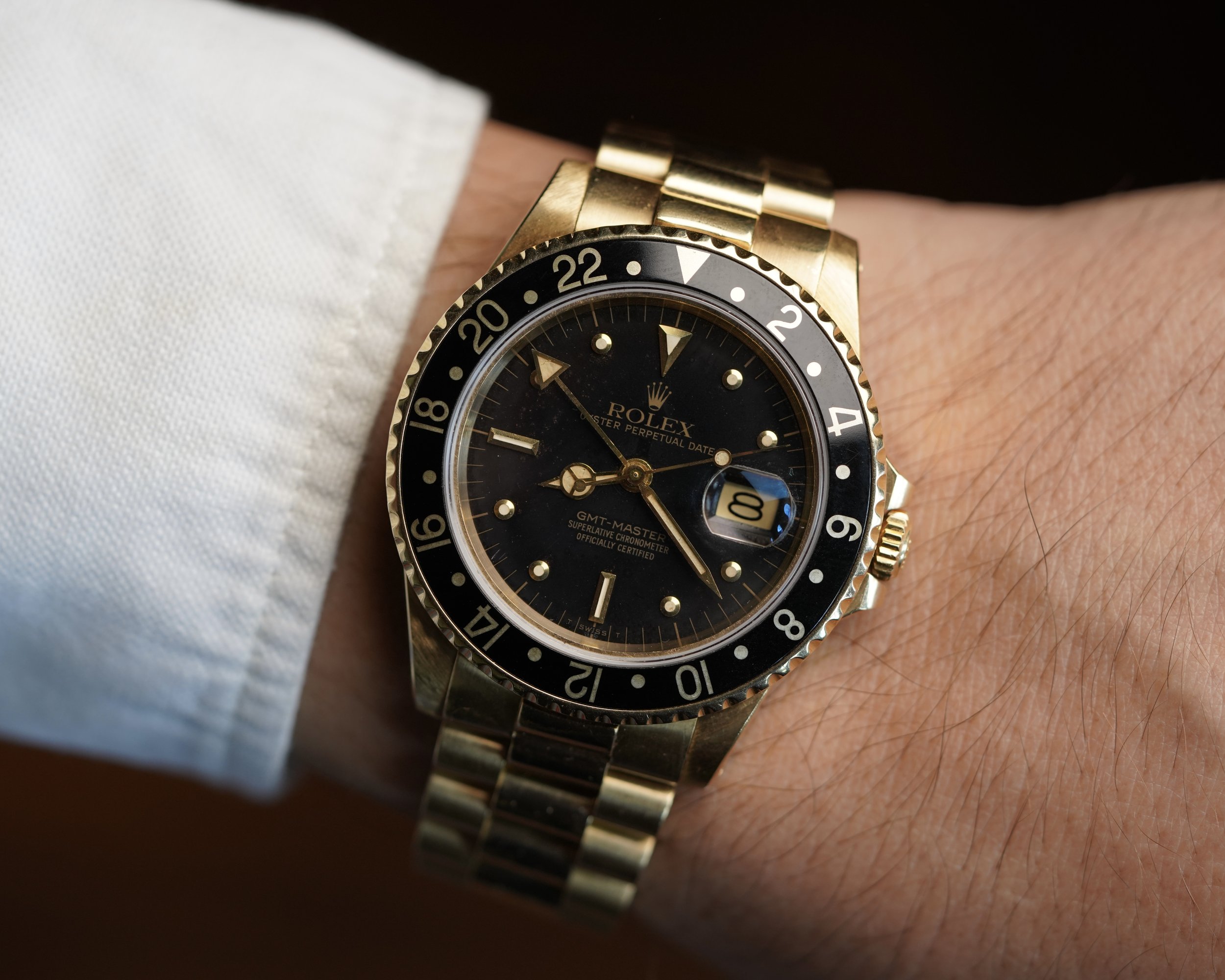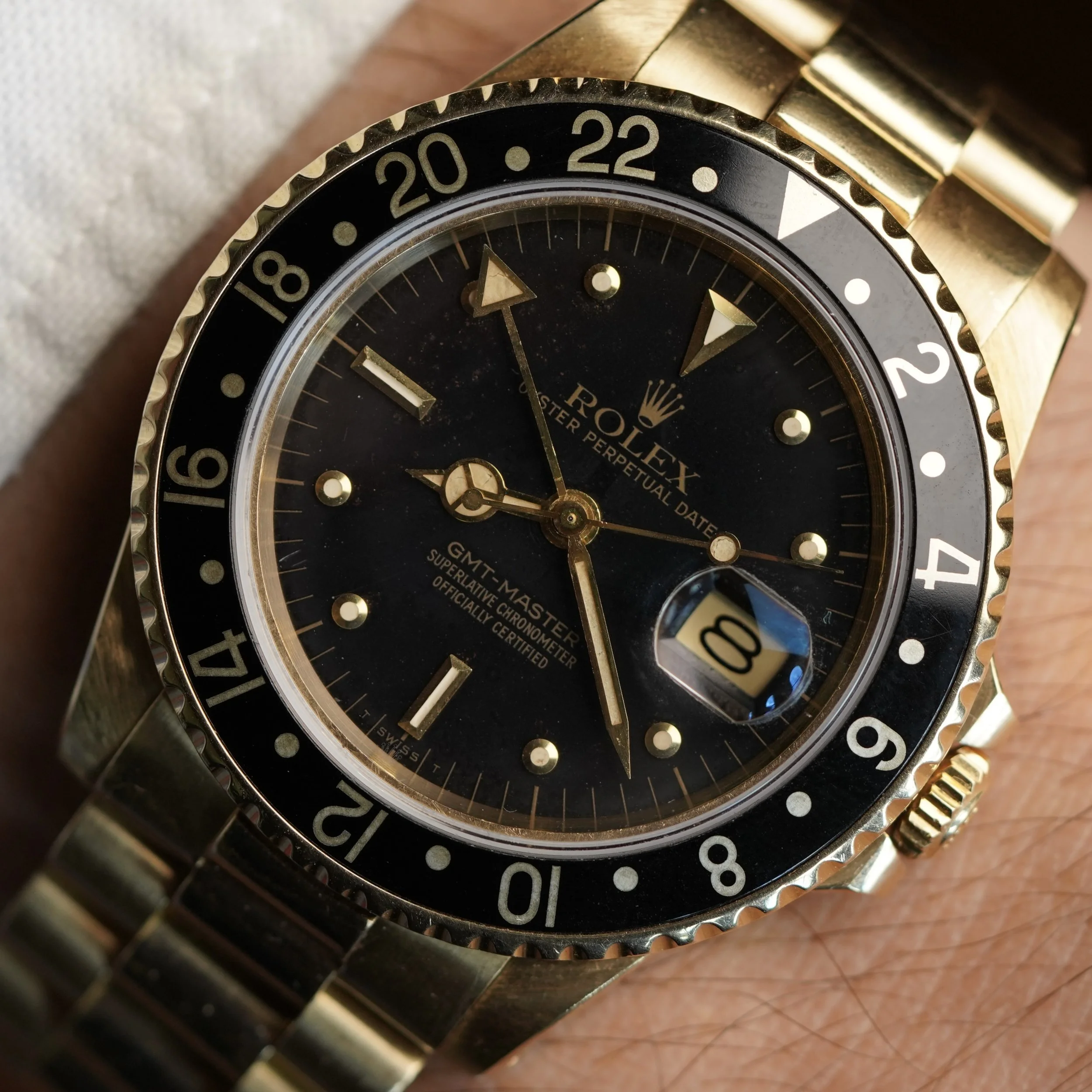 Rolex GMT-Master Reference 16758 in 18K Yellow Gold Original President Bracelet Unpolished