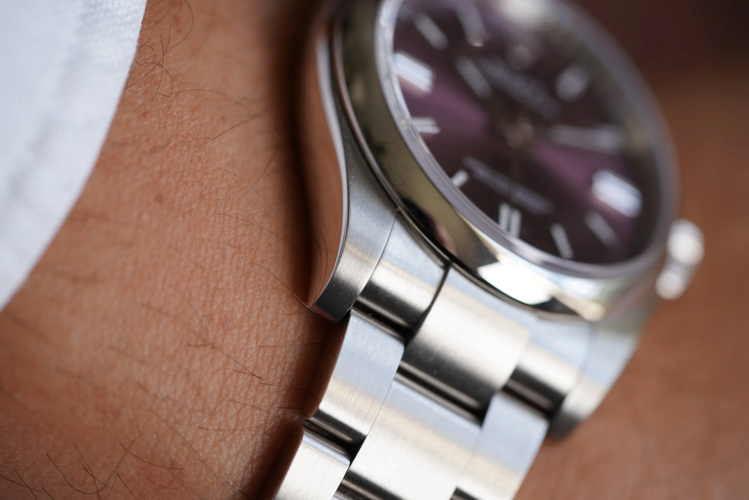 This Rolex “Grape” Oyster Perpetual Reference 116000 is super fun and features the popular and discontinued purple dial.