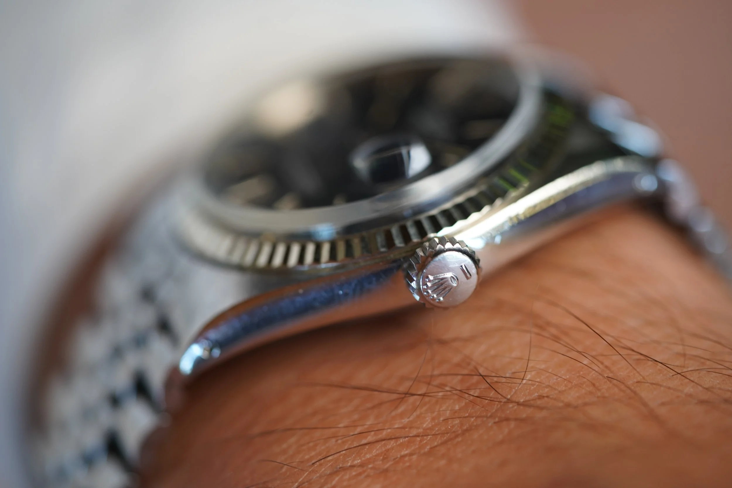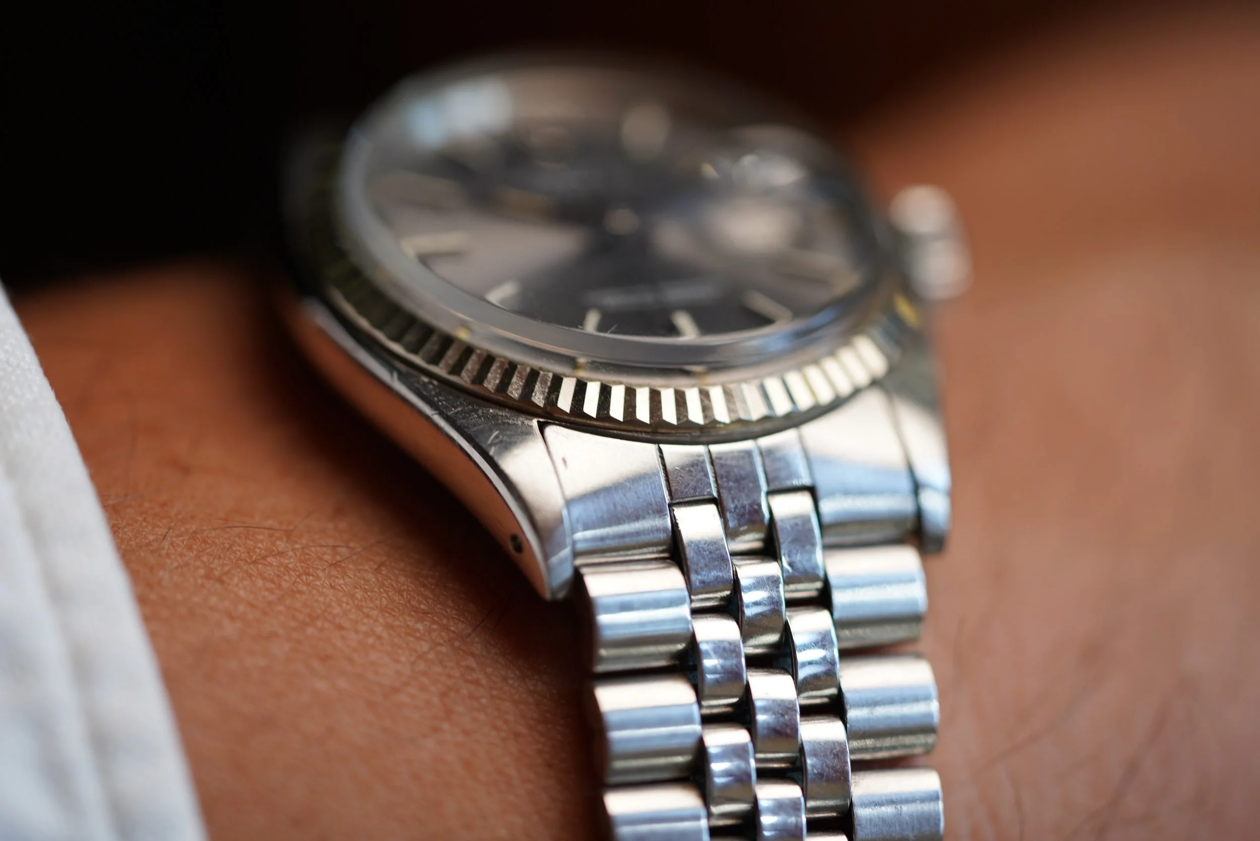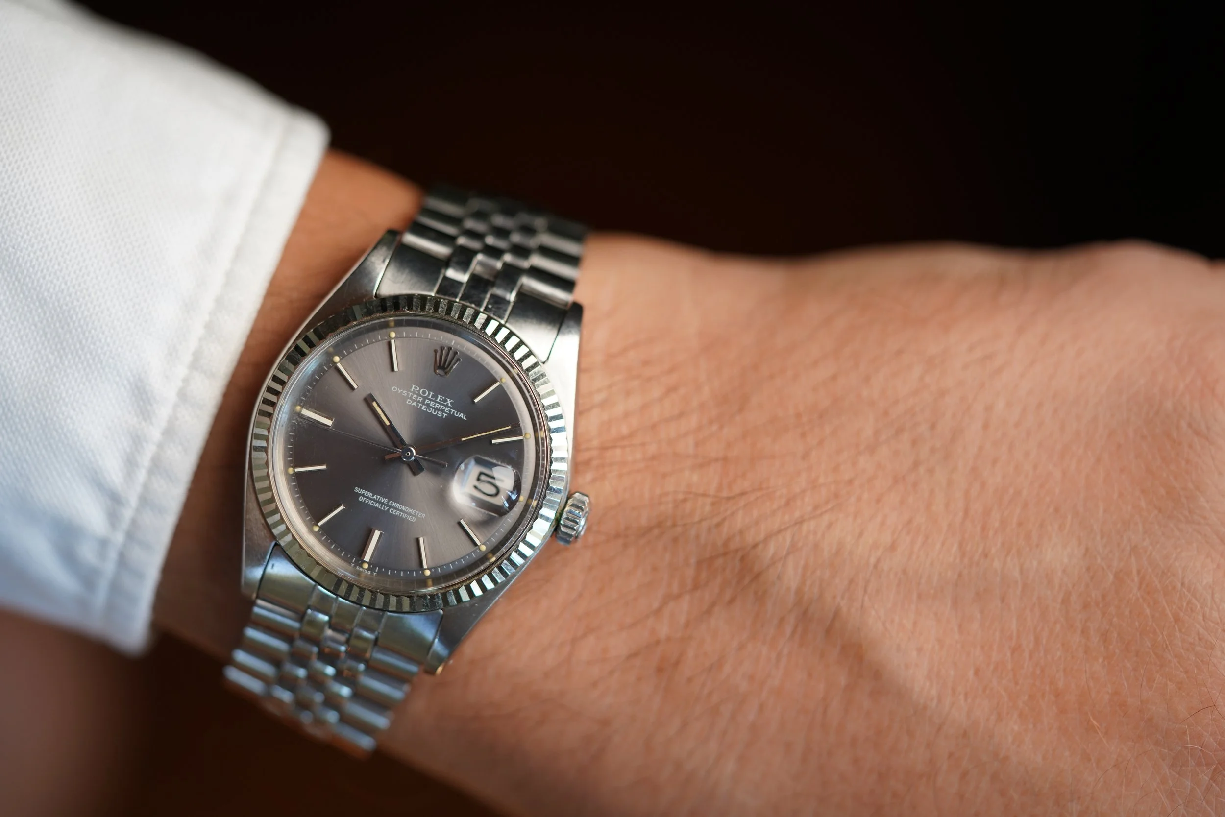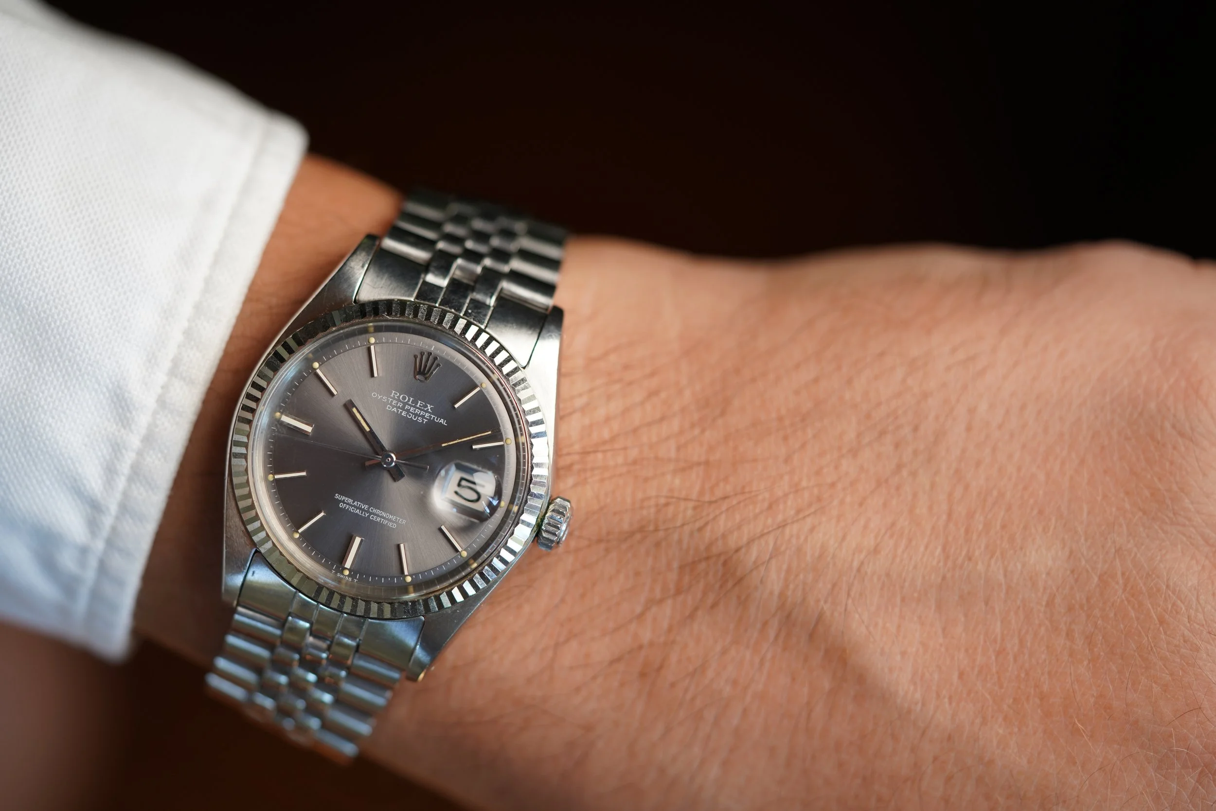 I’m constantly amazed by the quality and differentiations of the dials that Rolex used in vintage Datejusts over the decades. I have found the Rolex Datejust to be one of the most versatile watches a person can have and the simplicity in this grey-dial reference 1601 is so beautiful.