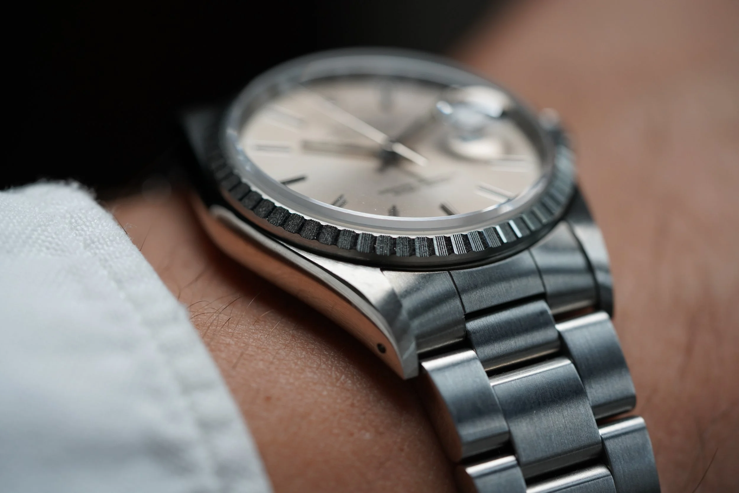 I absolutely love steel Rolex Datejusts. I recently wrote about them in our blog ‘Don't Sleep On This: The Simple Vintage Rolex Datejust In Steel’. I’m constantly amazed by the quality and differentiations of the dials that Rolex used in vintage Datejusts over the decades. I have found the Rolex Datejust to be one of the most versatile watches a person can have and the simplicity in this silver-dial reference 16220 is so beautiful. The watch dates to circa 1991 and features an X serial. The case measures 36mm in diameter and is paired on a 78360 Rolex Oyster bracelet and 558 end links.