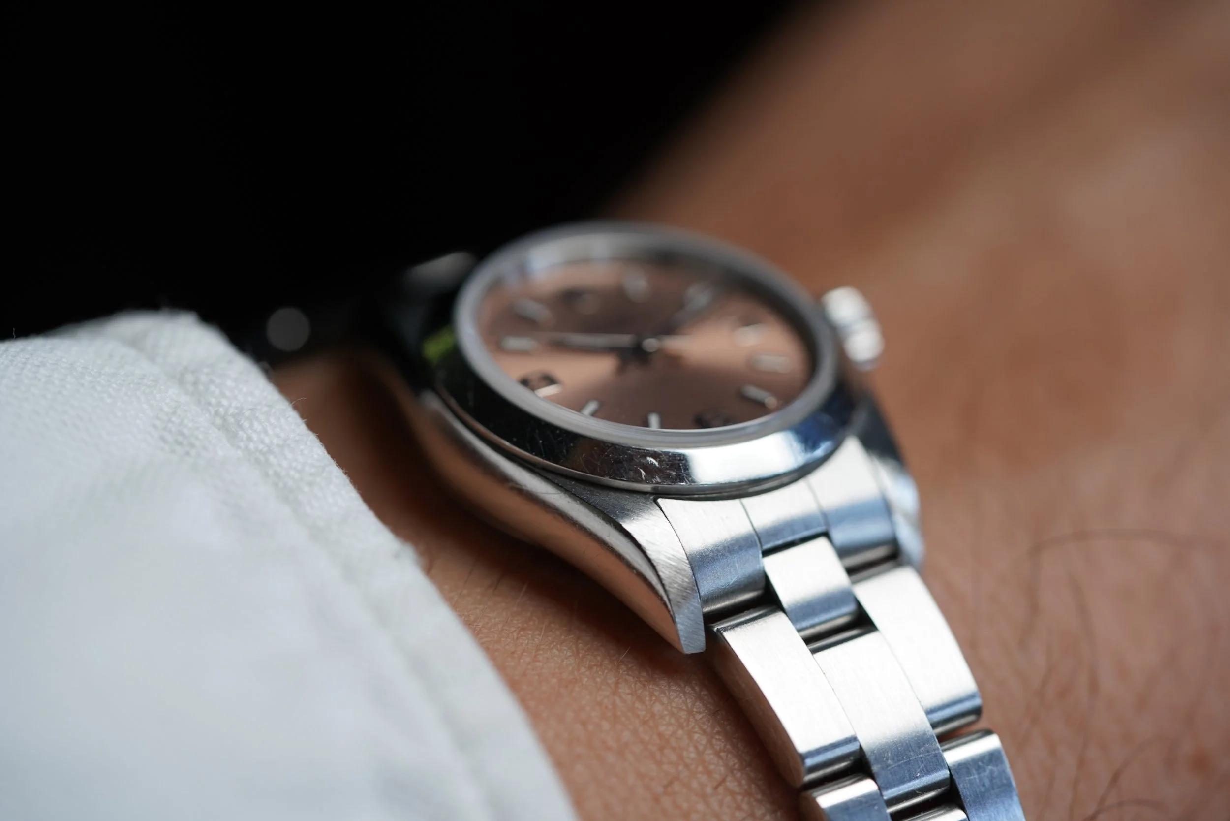 This Rolex Oyster Perpetual is an awesome ladies model. This example features a great pink Explorer dial. It measures 24mm in diameter. The watch features a Y serial number dating to circa 2001-2002. It features a DT date code on the bracelet, dating to circa 2002 and is likely original to the watch. The case appears to be unpolished.