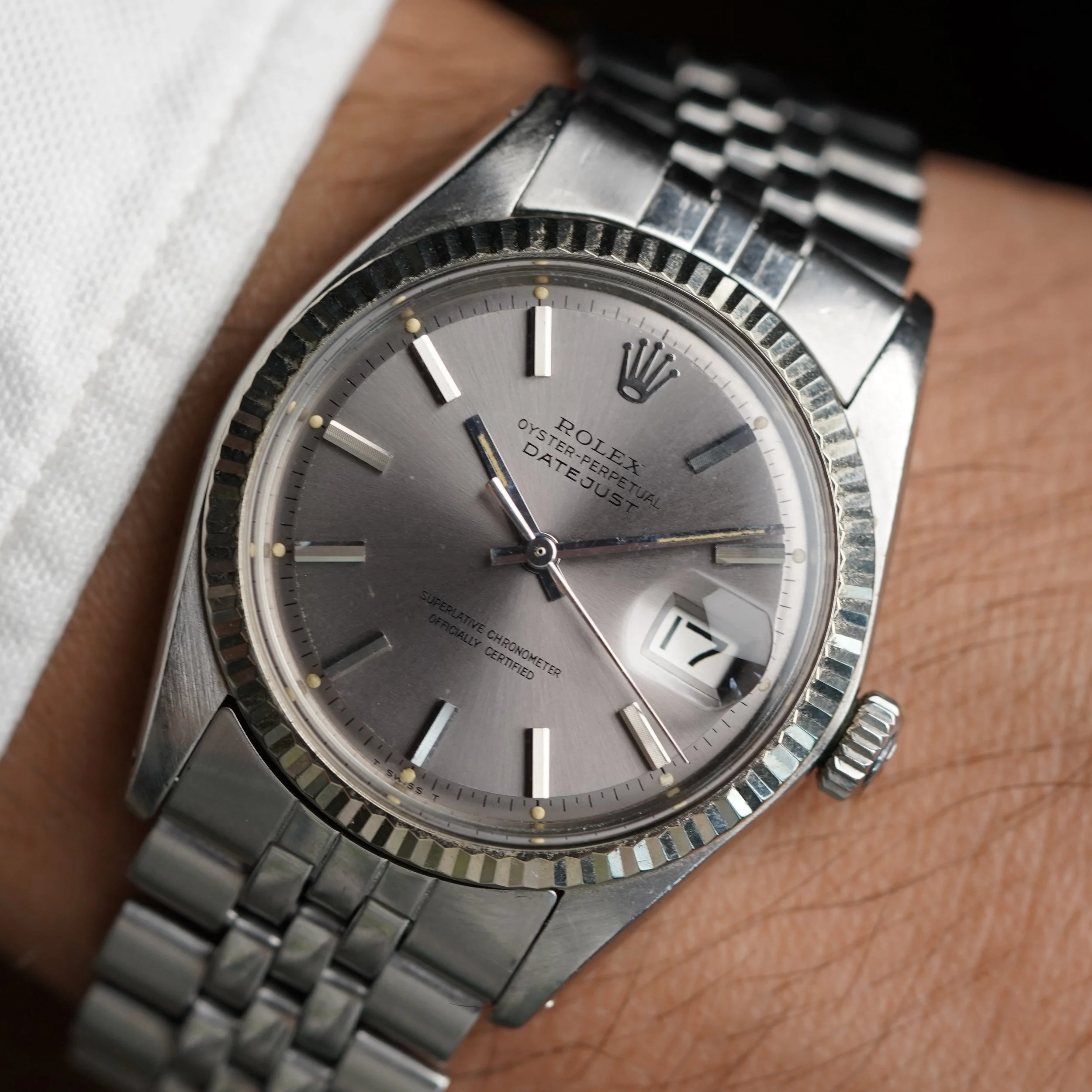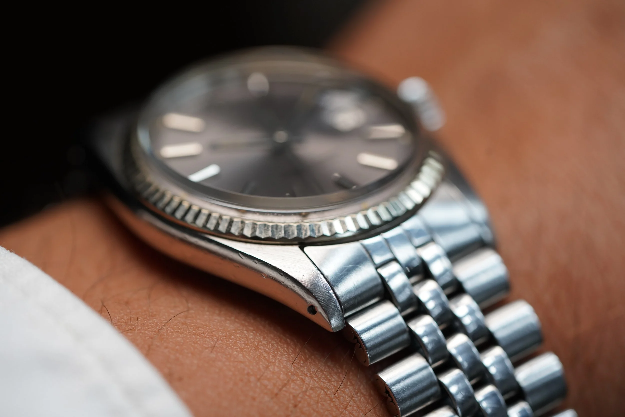 This Rolex Datejust reference 1601 is an awesome timepiece. It features an incredible lavender dial. The case appears to be unpolished. The watch dates to circa 1973 with a 3.28M serial. The watch measures 36mm in diameter.