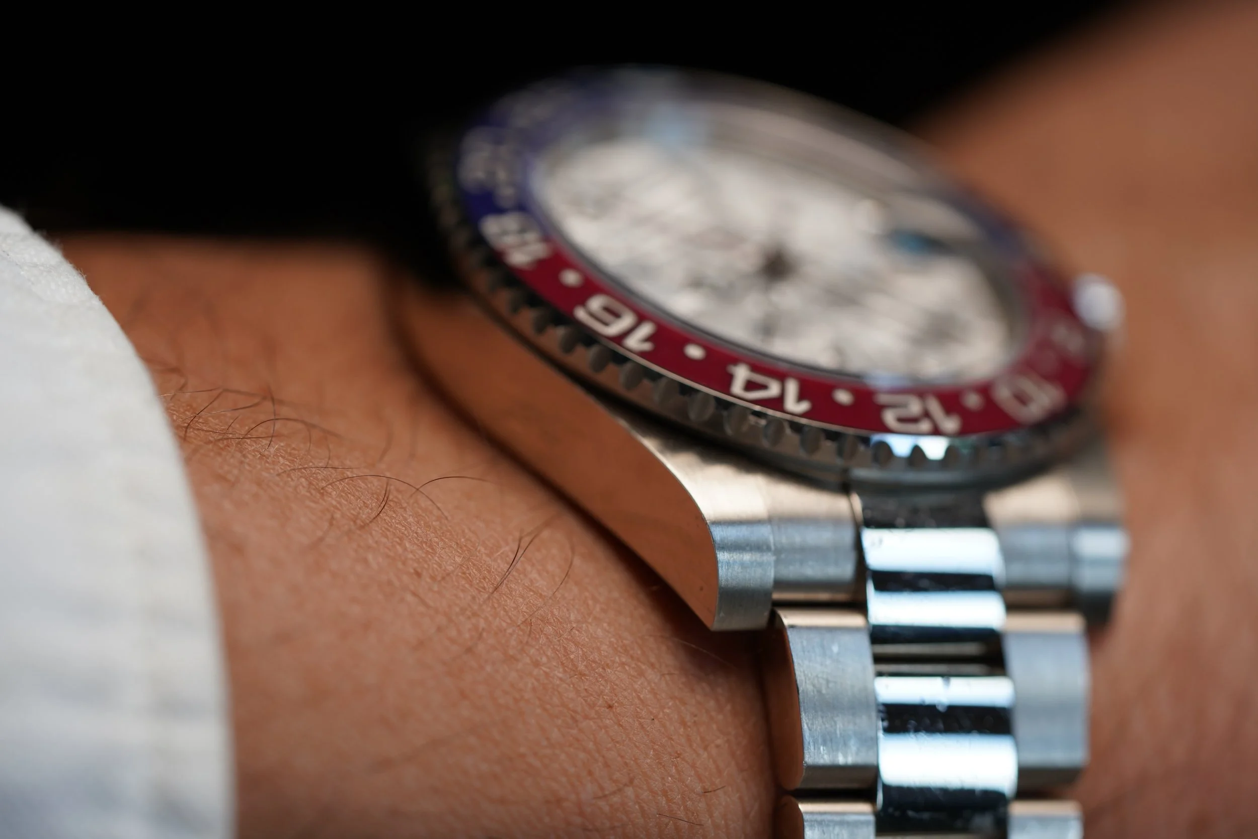 The Rolex GMT-Master II Reference 126719BLRO is a fantastic modern sports watch in white gold. It is a 40mm case. Due to its incredible heritage and iconic look, the GMT remains a flagship model for Rolex to this day. The white gold case is unpolished.