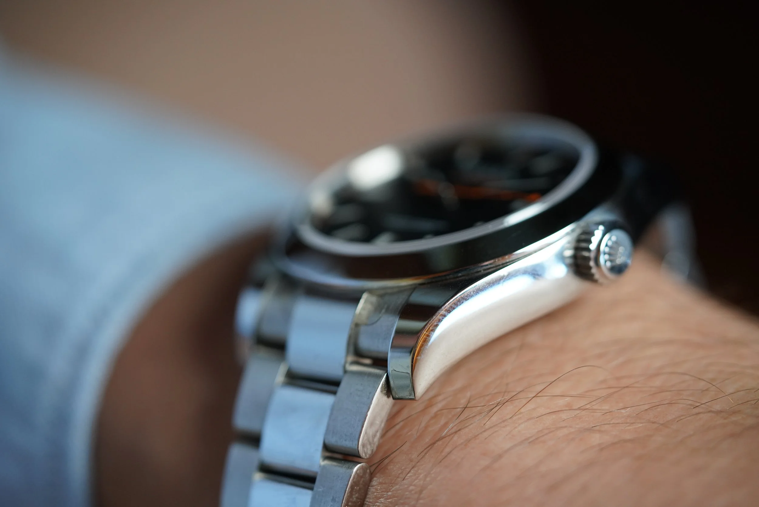 The watch comes as a “full set” with a box and papers. We do not know the full service history, but it is keeping great time. It recently passed a water resistance test of 5 bar. The watch dates to 2016.