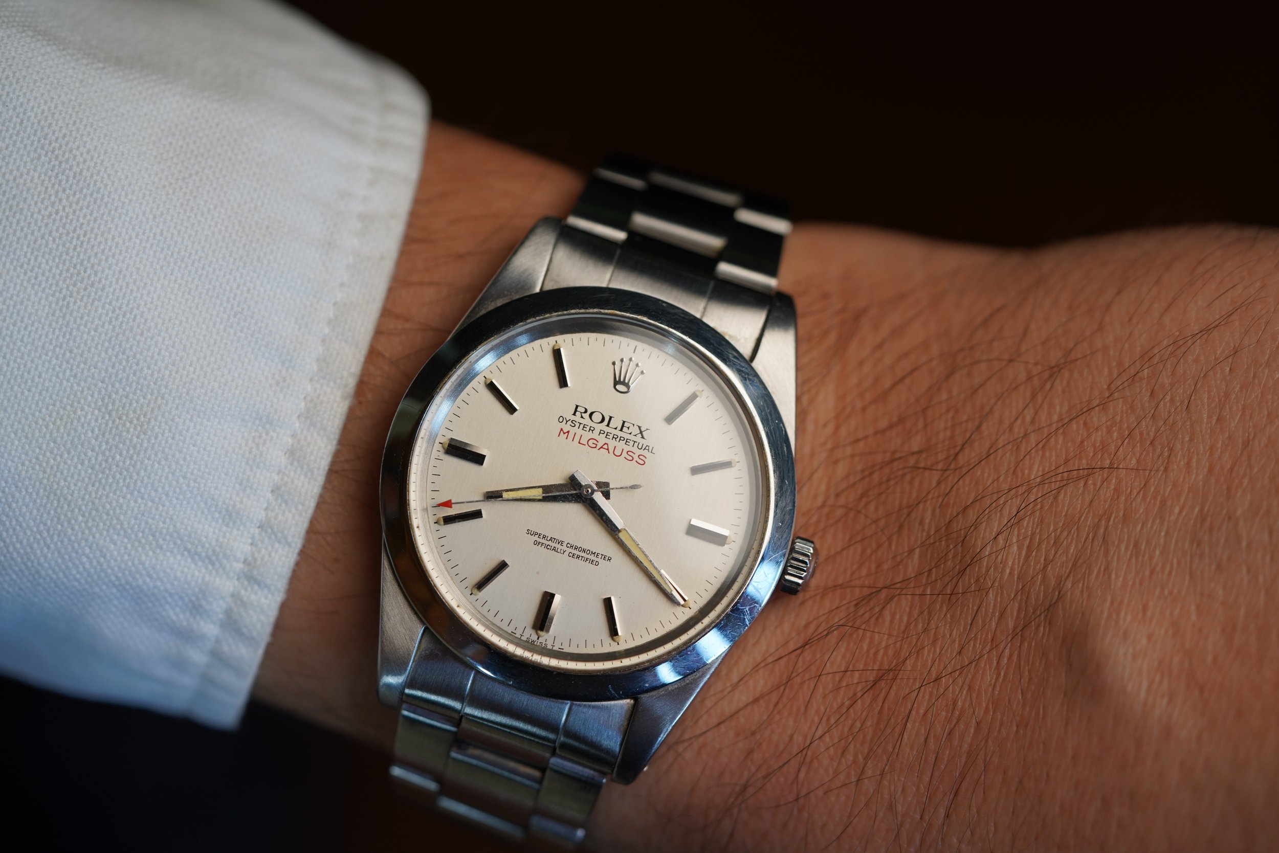 The Rolex Milgauss reference 1019 was the successor for the reference 6541. Like many of the Milgauss models over the years, the dial features a distinctive look that deviates from the consistent aesthetics from Rolex models.