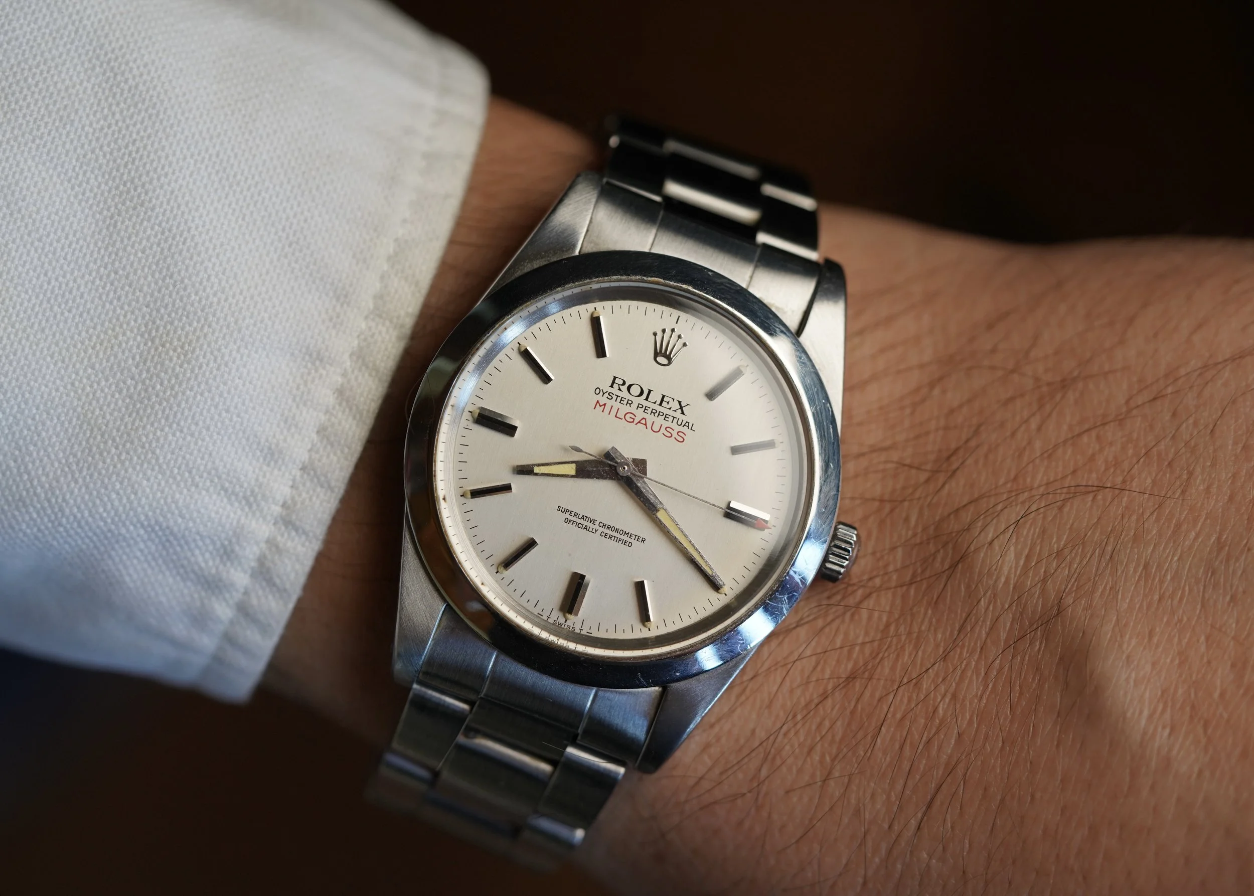 When it comes to the antimagnetic wristwatches of the 1950s-1960s, several manufacturers produced what would go on to become iconic timepieces. Among those are the IWC Ingenieur, the Eberhard Scientigraf, the Omega Railmaster, as well as Patek Philippe’s reference 2570 / 2570-1 and 3417. However, one of the most beloved models of orientated for the physicist or engineer of the day was none other than the Rolex Milgauss.