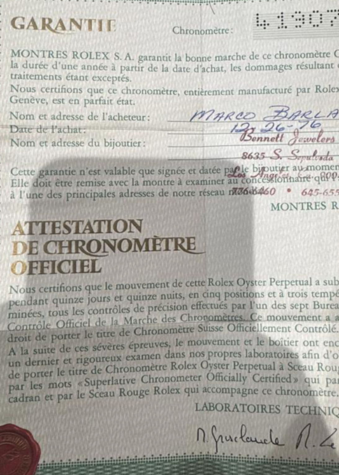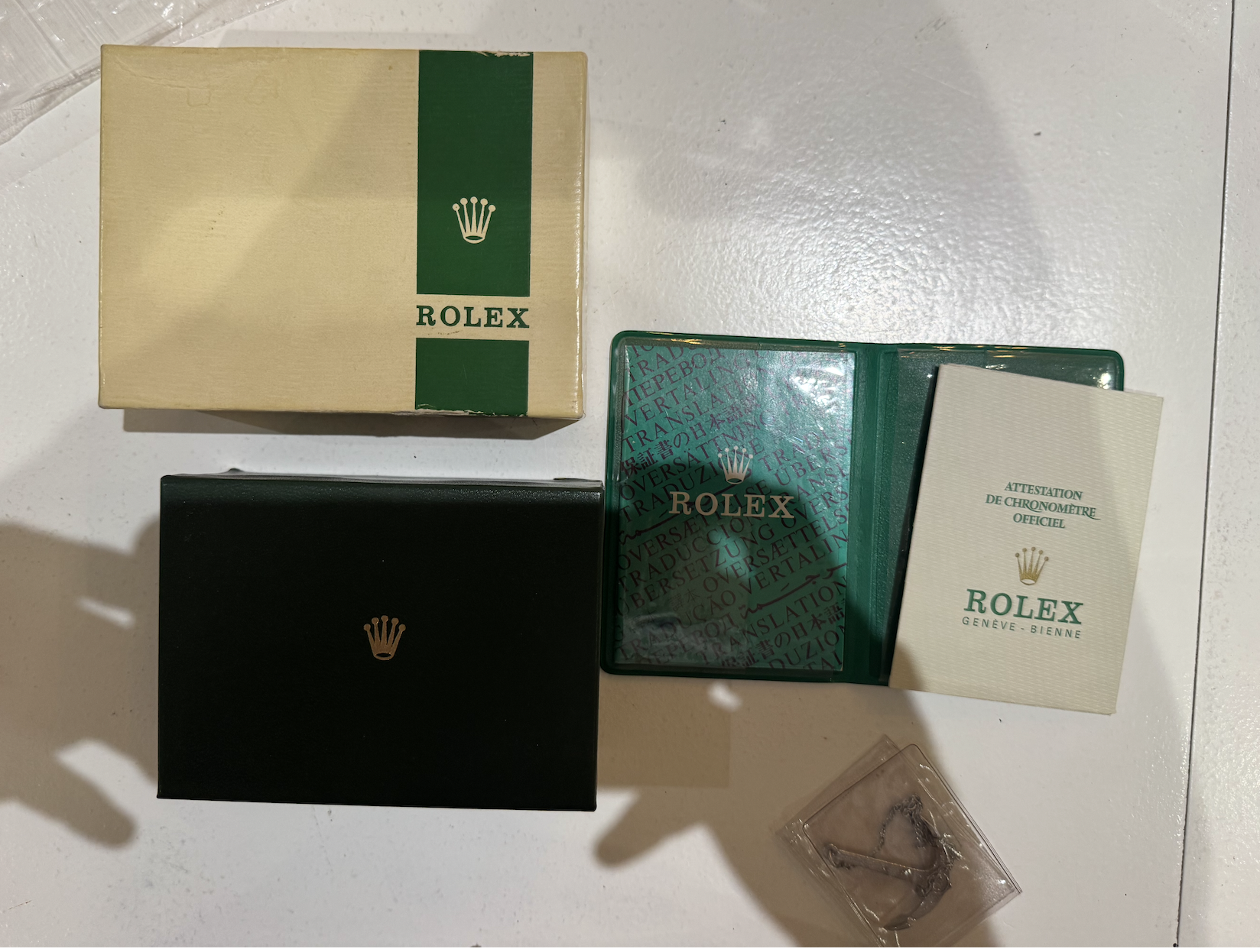 The watch comes with box and papers. We do not know the service history, but it is running well.