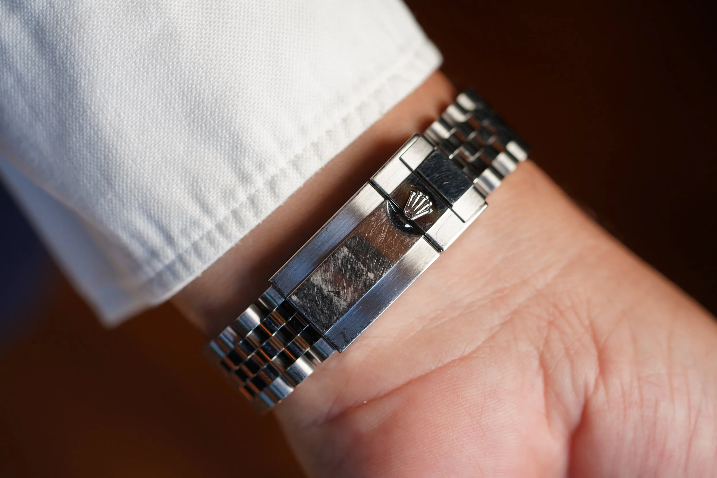 The watch remains unpolished. It was purchased from the original owner, and is “full set” with its original box and papers. It was sold in April 2018.