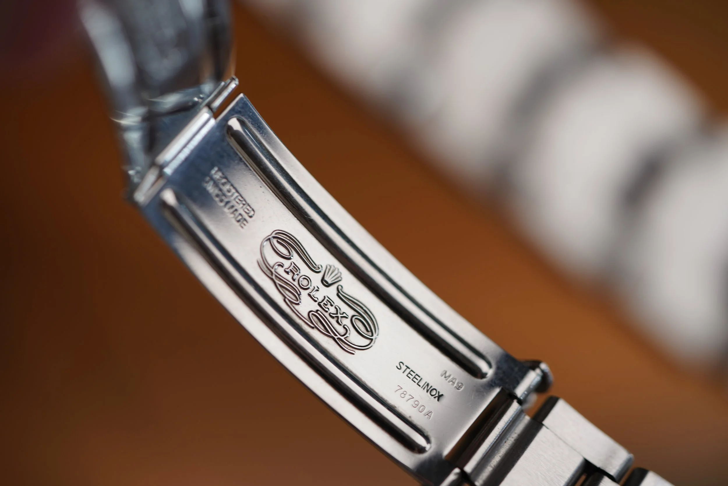 This Rolex GMT-Master II reference 16710 with “Pepsi” bezel is very cool. This example, reference 16710, a stainless steel model, with a Z serial dates to circa 2006 or 2007. It is paired with the original reference 78790A Oyster bracelet with an MA clasp code dating to circa 2005. The watch is in excellent condition; the case and bracelet appear to be unpolished. The bezel has faded from its original “Pepsi” red to a softer pink tone.