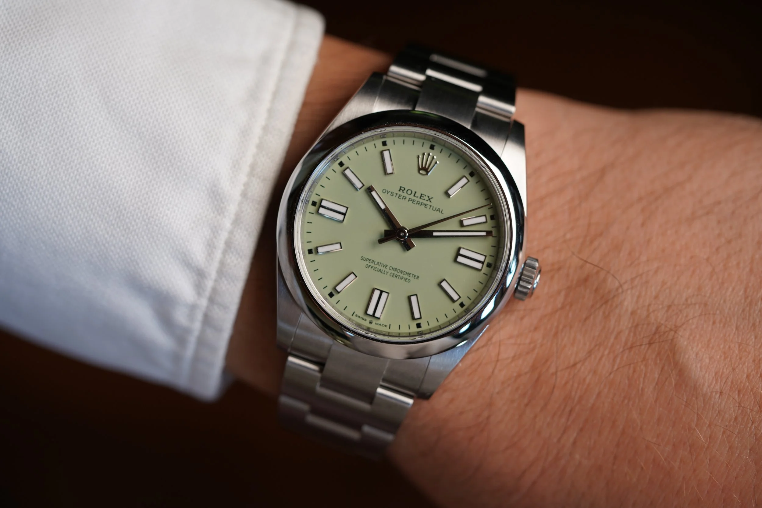The Rolex Oyster Perpetual reference 134300 is an awesome modern watch. Nicknamed “The Pistachio” - this dial is incredible and one of the most exciting 2025 releases from Rolex! People absolutely love it and are losing their minds! It has great proportions at 41mm in diameter. The smooth bezel gives it a slightly more dressy look.