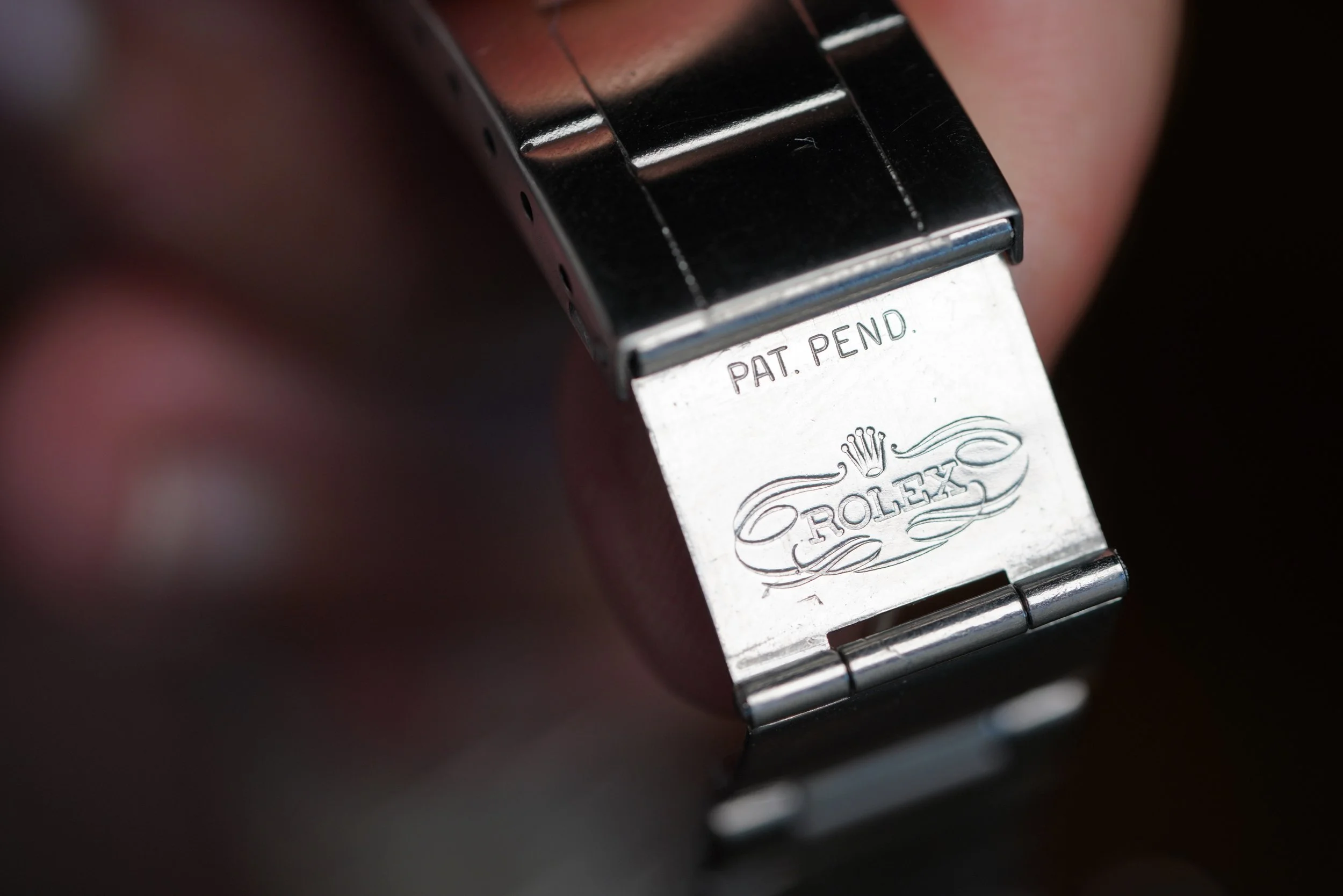 This Rolex reference 1680 “Red Sub” is a great ‘date’ Submariner in stainless steel. The watch features a 2.3M serial number and dates to circa 1970. It is paired with a reference 9315 Rolex Patent Pending folded link Oyster bracelet dating to 1970. The Patent Pending extension is worth thousands of dollars by itself, but does not appear to be original to the bracelet as it should likely be on an early bracelet with removable 280 end links and this has integrated 380 end links.