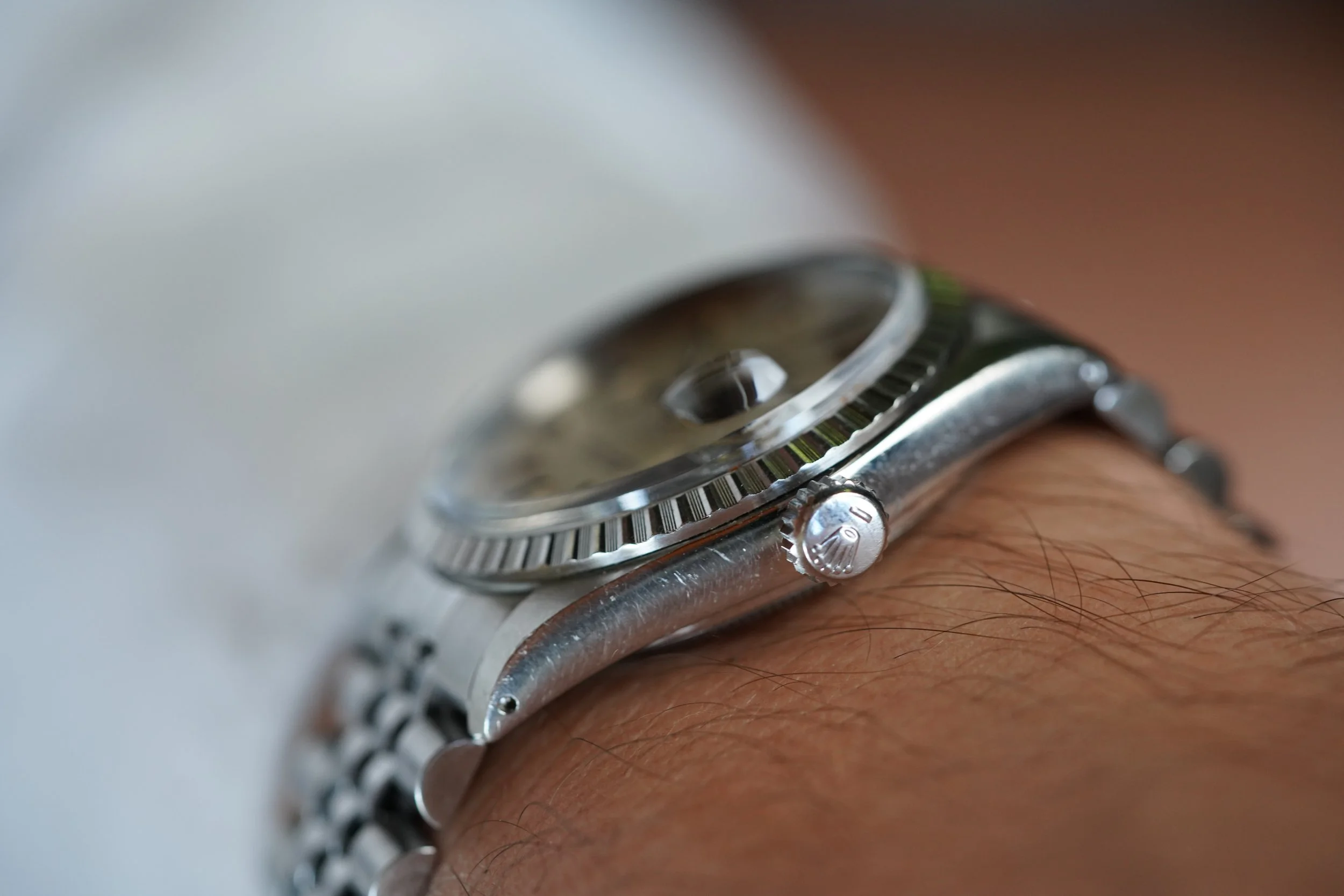 I absolutely love steel Rolex Datejusts. I recently wrote about them in our blog ‘Don't Sleep On This: The Simple Vintage Rolex Datejust In Steel’. I’m constantly amazed by the quality and differentiations of the dials that Rolex used in vintage Datejusts over the decades. I love the steel engined turned bezel on these classic stainless steel models.