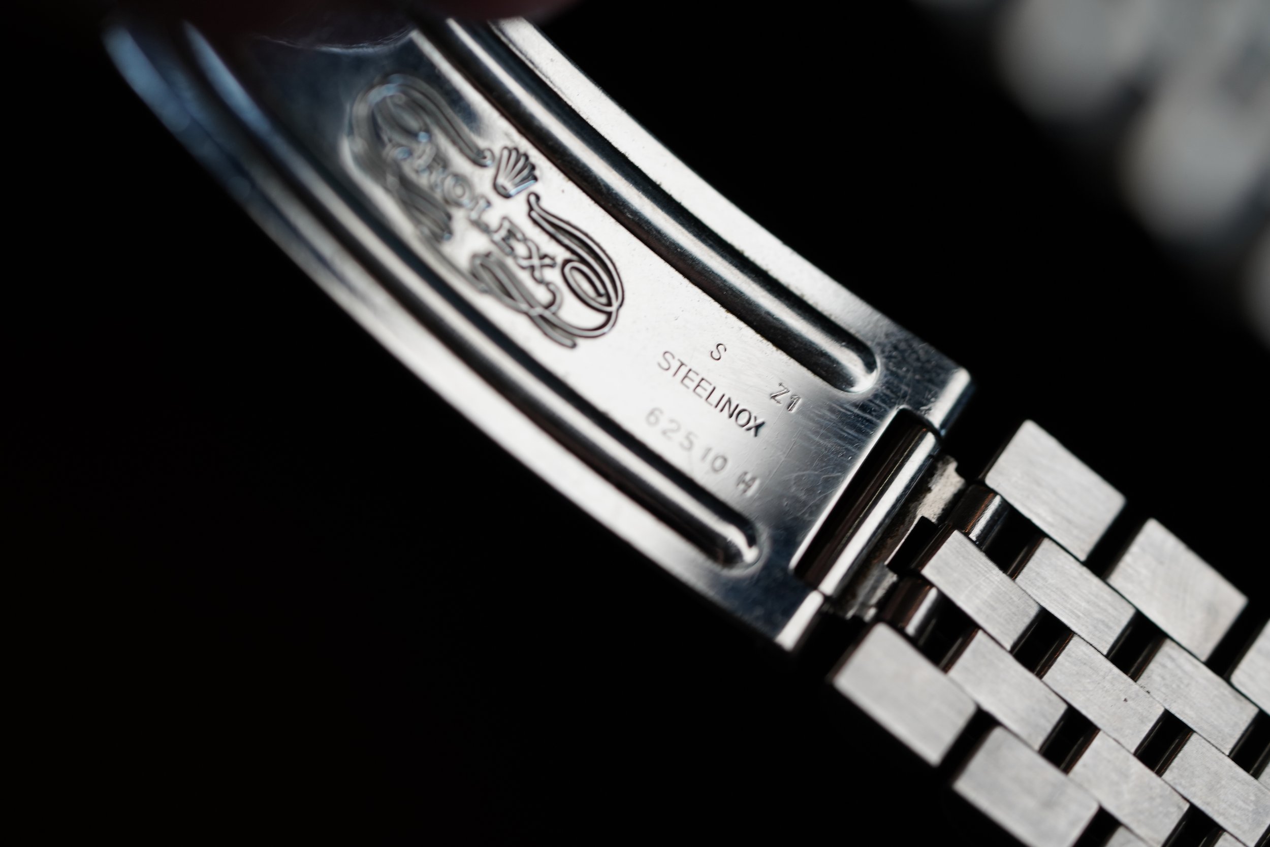 I love the steel engined turned bezel on these classic stainless steel models. This watch features a silver dial and a quickest date movement. The watch is paired with a 62510h Jubilee service bracelet with a Z date code dating to circa 1997 and 555 end links. The R serial number dates the watch to circa 1988. The case appears to be unpolished.
