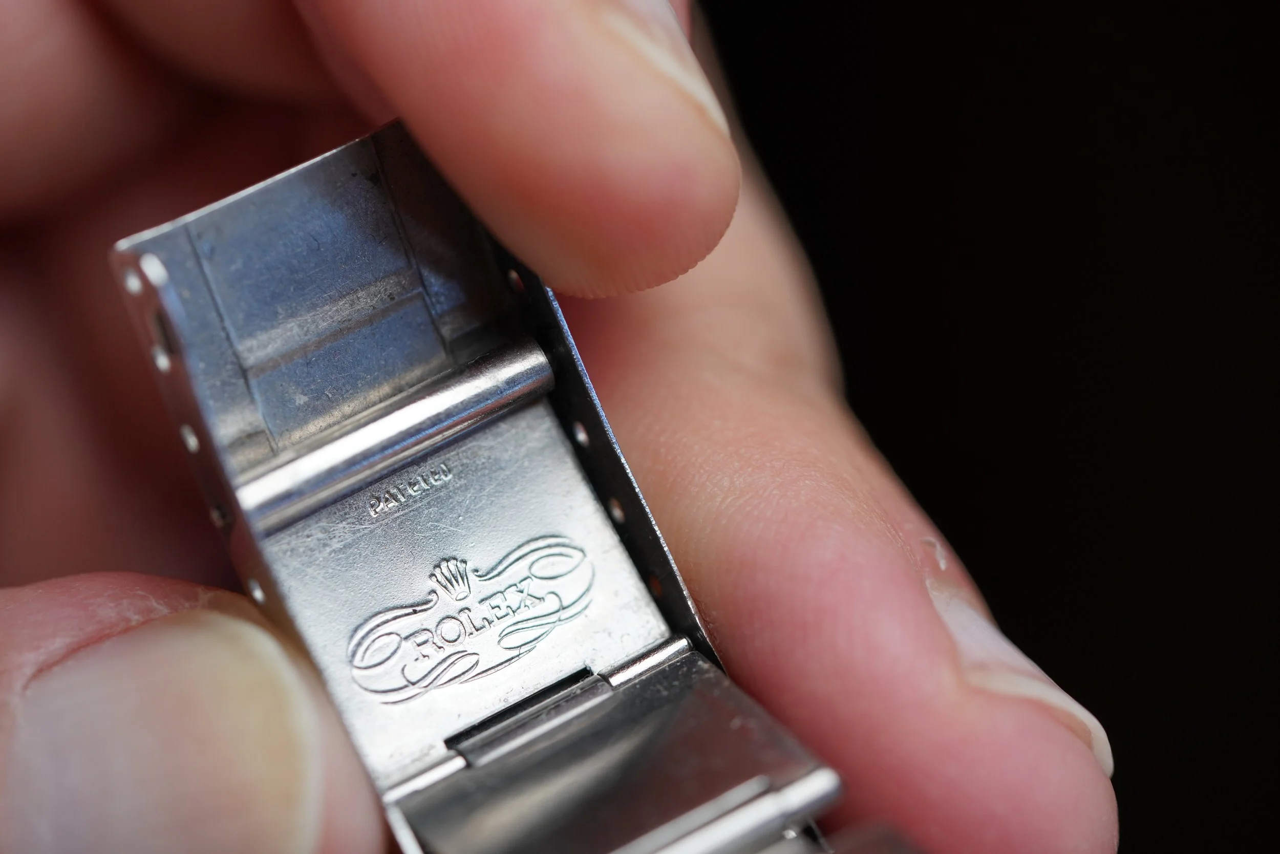 This Rolex Submariner reference 5513 is a spectacular watch. It features a 2.90M serial dating to circa 1972. The hands feature some patina on the edges. The lume features a nice warm tone. It features the original bezel insert. It is paired on the rare Rolex “PATETED” 9315 bracelet with 280 end links dating to 1970. The case appears to be unpolished.