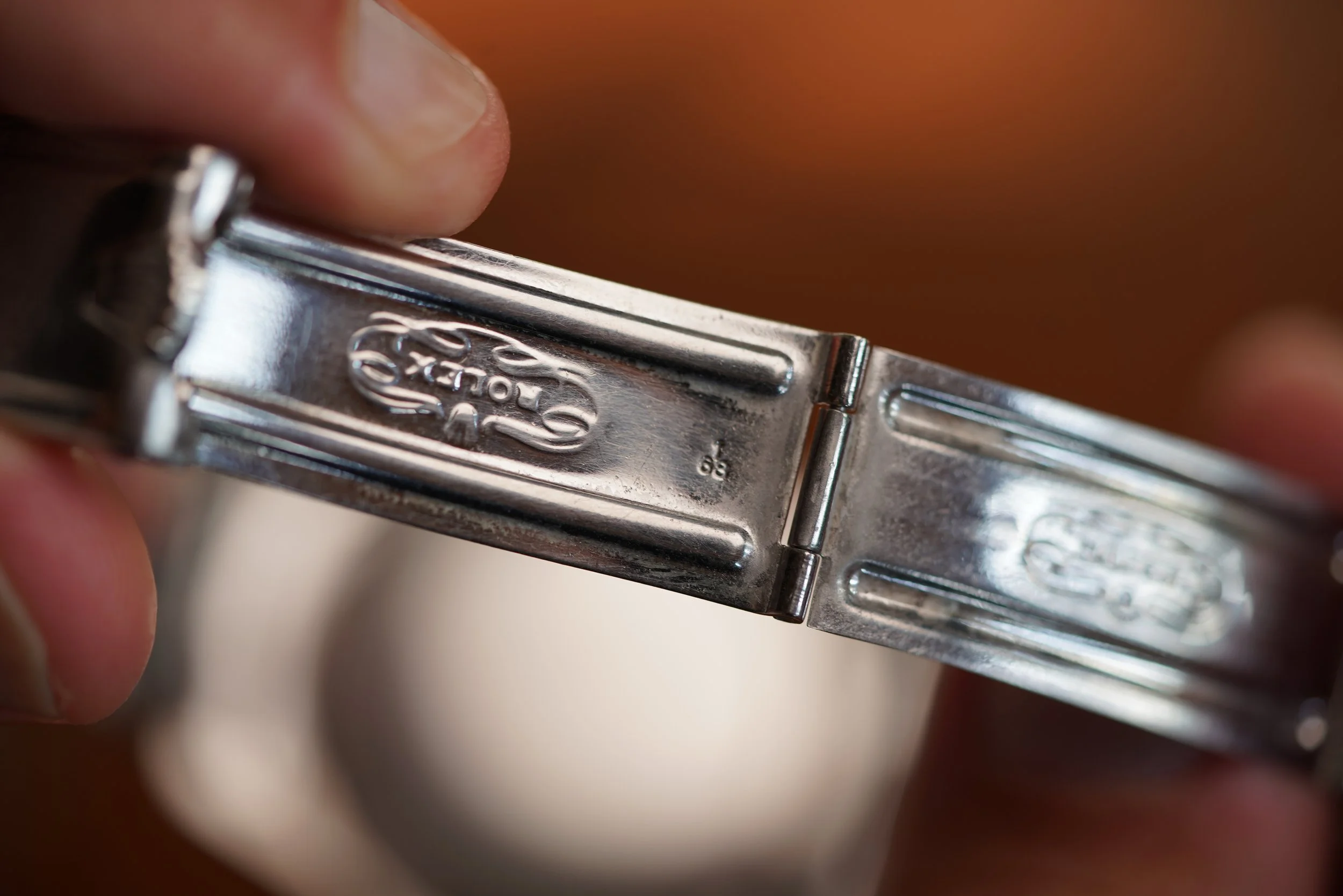 The Rolex Submariner is one of the most iconic watches of all time. This reference 5513 features a 1.7M serial number dating to circa 1968. It is paired with a Gay Frères 7206 rivet bracelet dating to 1968. It has the correct 80 end-links. This example features a “meters first” matte dial with very attractive tritium lume. It has been polished in the past, but is attractive.