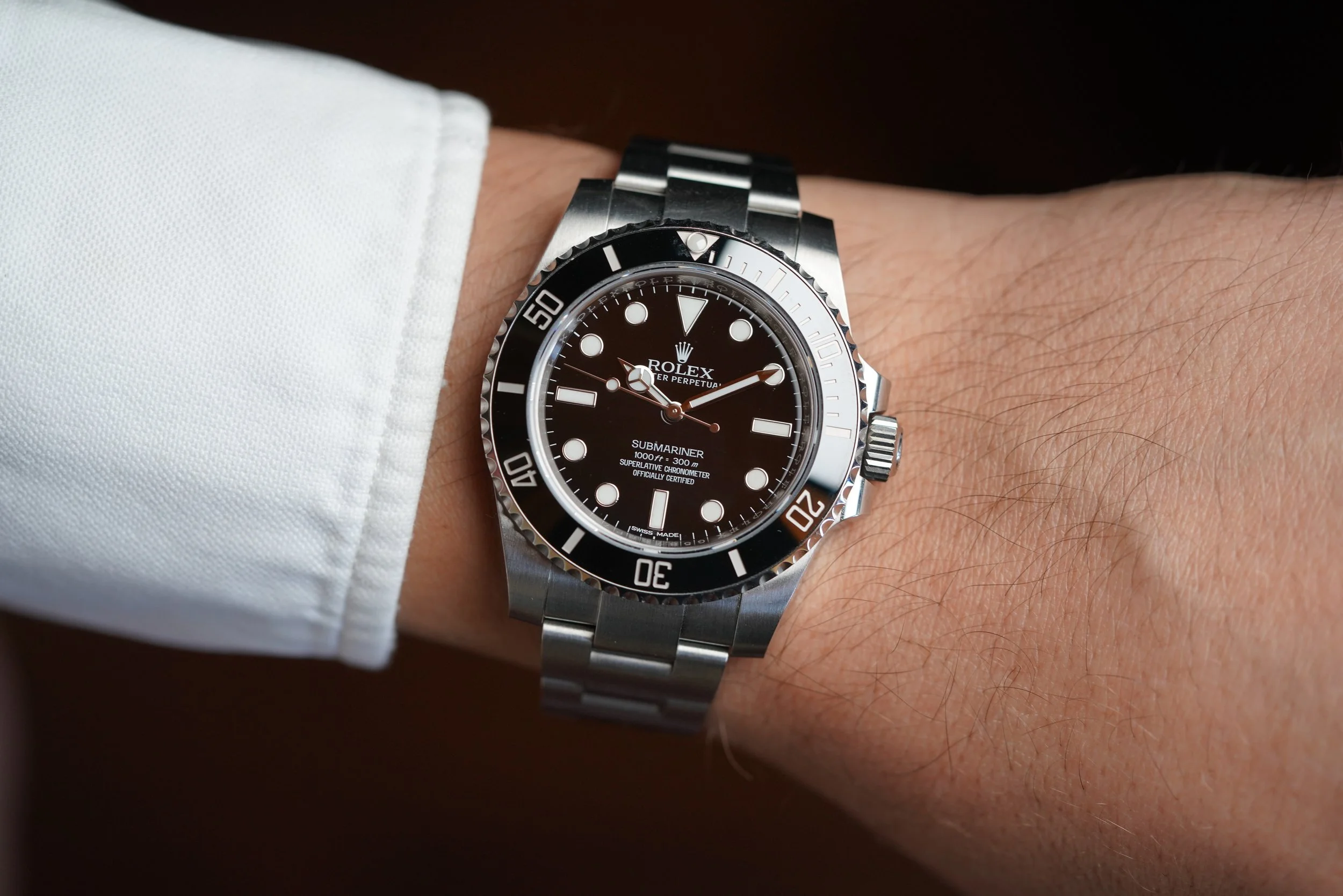 he Rolex Submariner is one of the most renowned sports watches of all time. It continues as a flagship model in Rolex’s lineup to this day. The no-date reference 114060 was discontinued in 2020. The watch measures 40mm in diameter and approximately 47mm lug-to-lug. It is in excellent condition and appears to be unpolished.