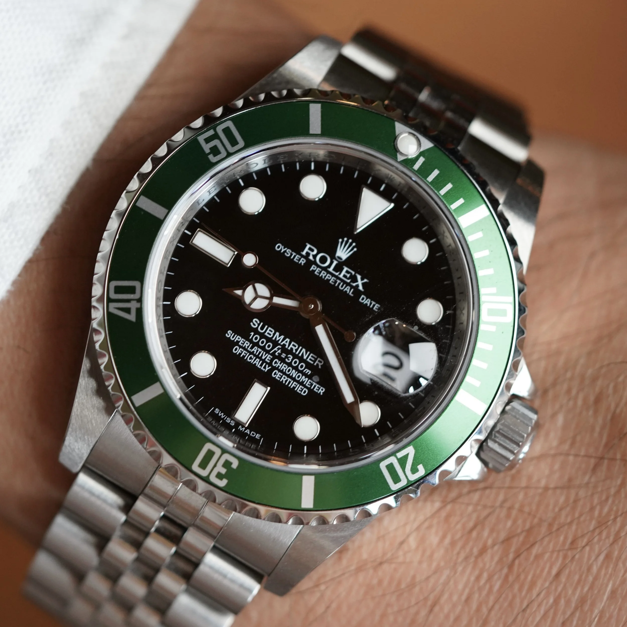 Rolex Submariner Ref. 16610LV “Kermit” Unpolished w/ Card and Bracelet
