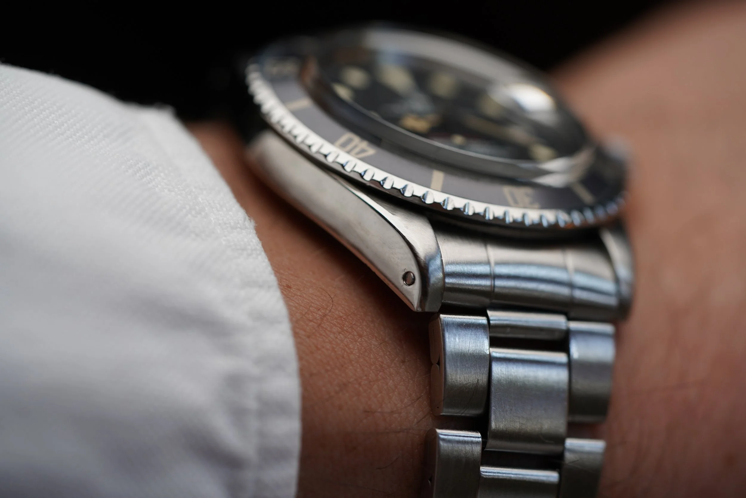 This Rolex Submariner reference 1680 is a fantastic sports watch dating to circa 1974 with a 3.71M serial. The bracelet is period correct. The case has been polished in the past. There is no date code on the bracelet. It is likely original to the watch.