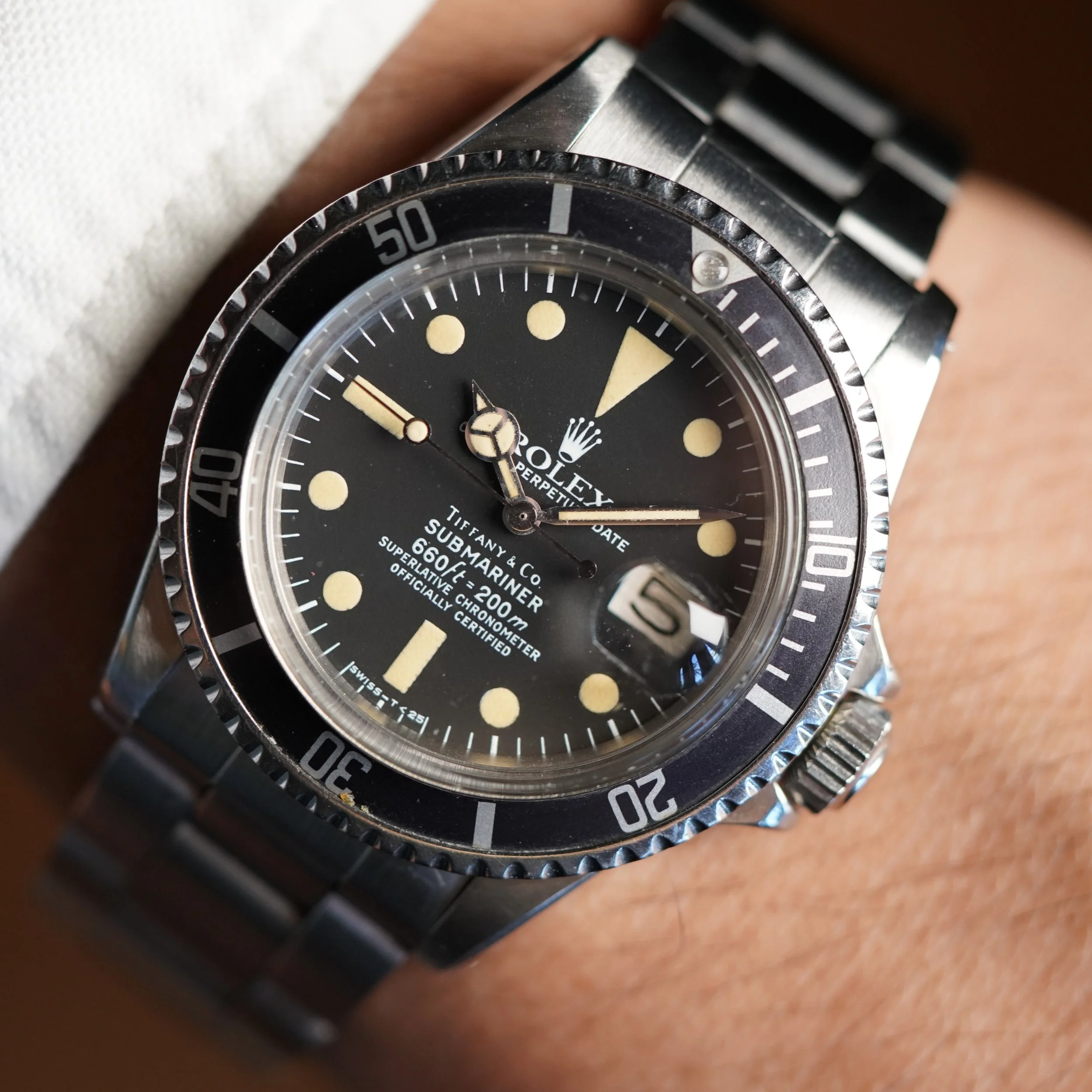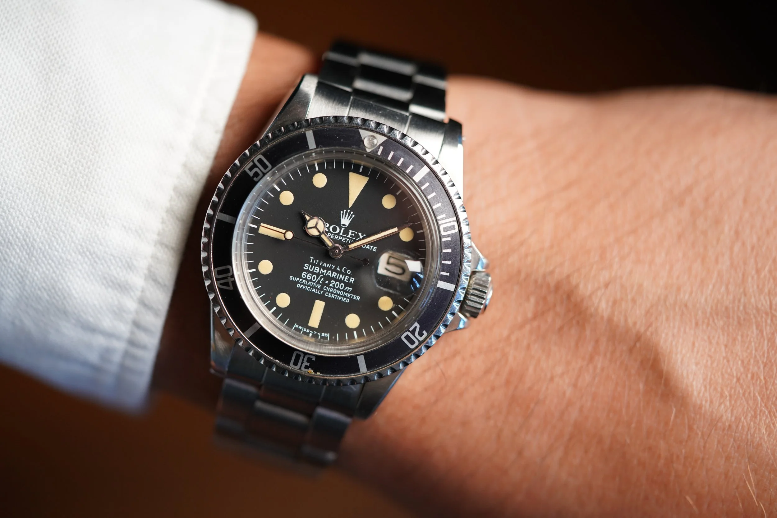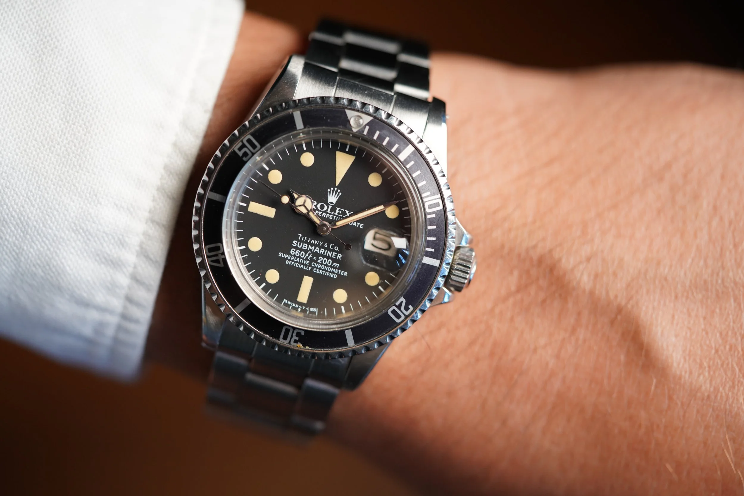 This Rolex Submariner reference 1680 is an incredible watch with the special and highly sought after double-signed dial by Tiffany & Co.
