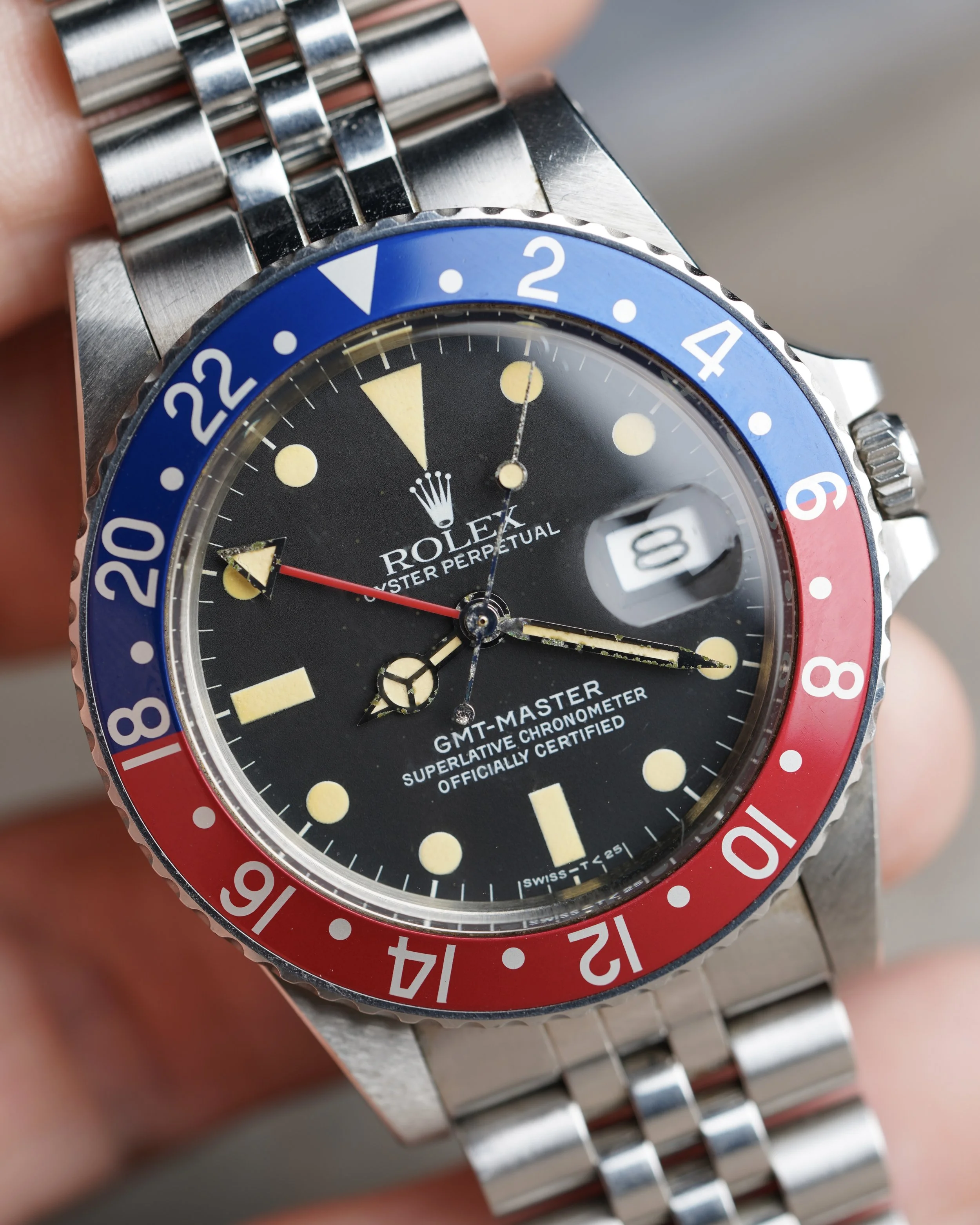 To learn more about the Rolex GMT-Master, you can watch my ‘Reference Points: Understanding The Rolex GMT-Master' video and read the corresponding article. You can also read our comprehensive article ‘Collector's Guide: The Rolex GMT-Master Reference 1675 In Steel’.