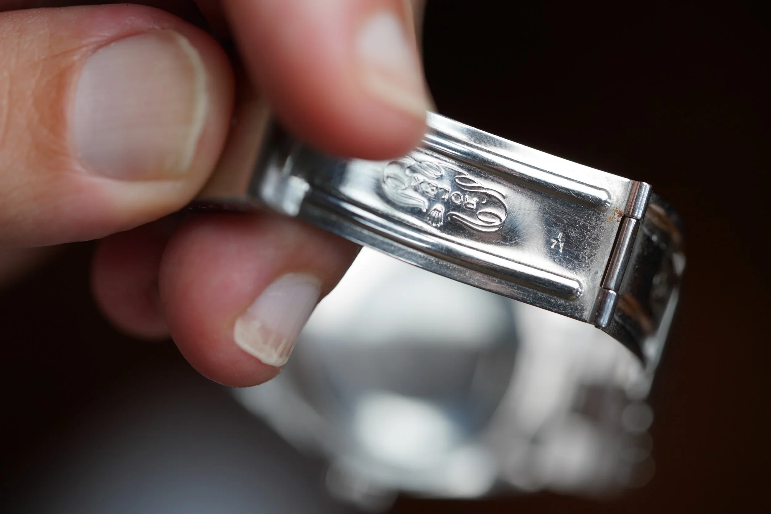 This model features a tropical gilt underline dial. The watch features a 1.04M serial and dates to circa 1964. The case is 36mm in diameter. It has been polished in the past. It is paired on a later folded link Rolex bracelet dating to 1971. This watch also features 280 end-links, which are typically associated with Submariners.