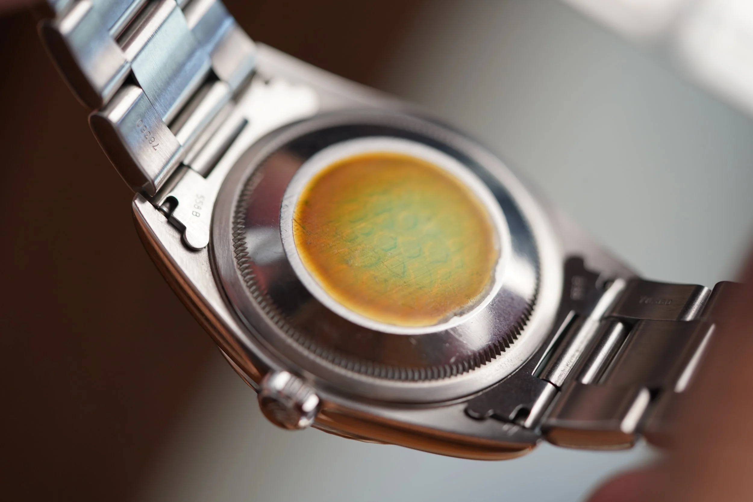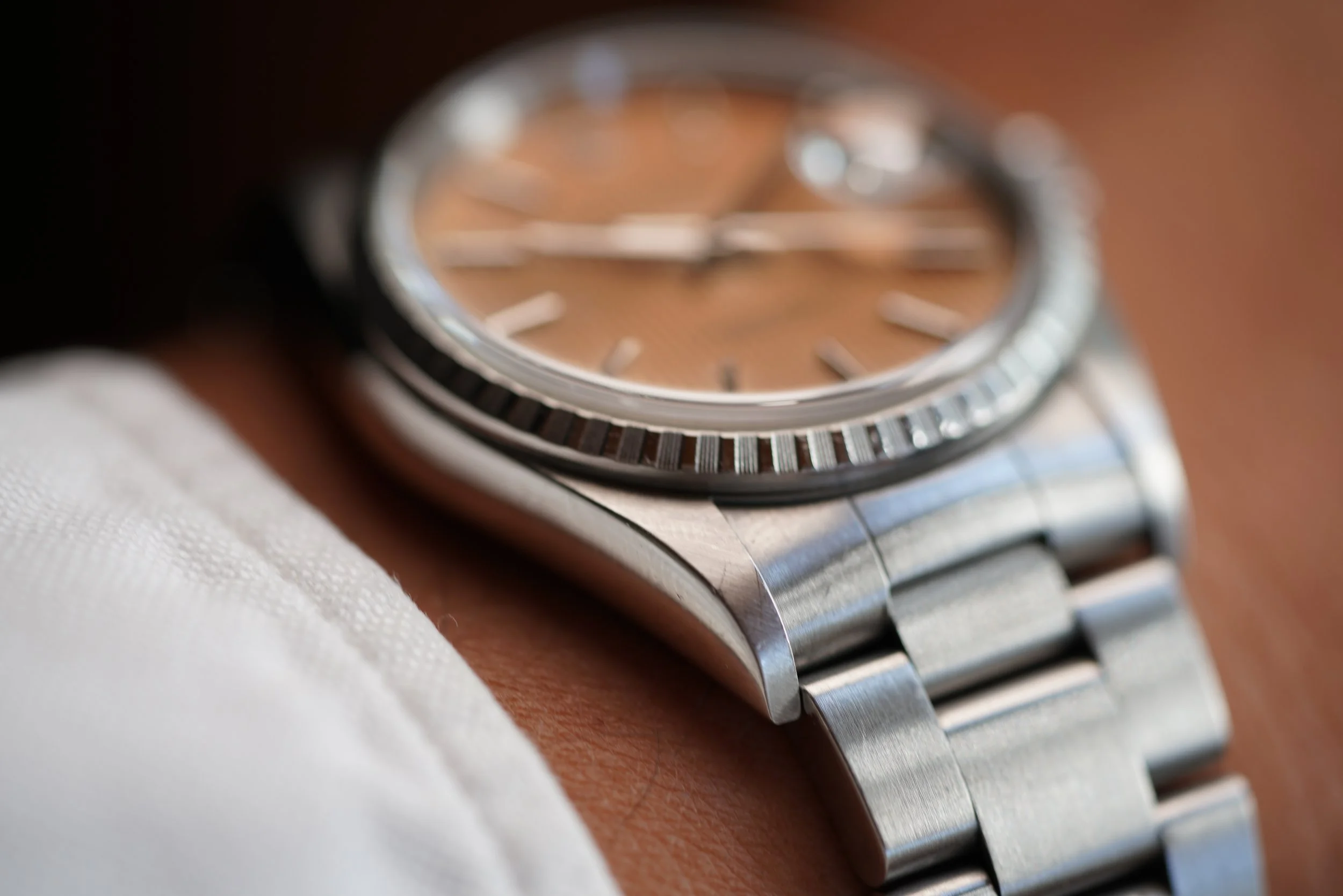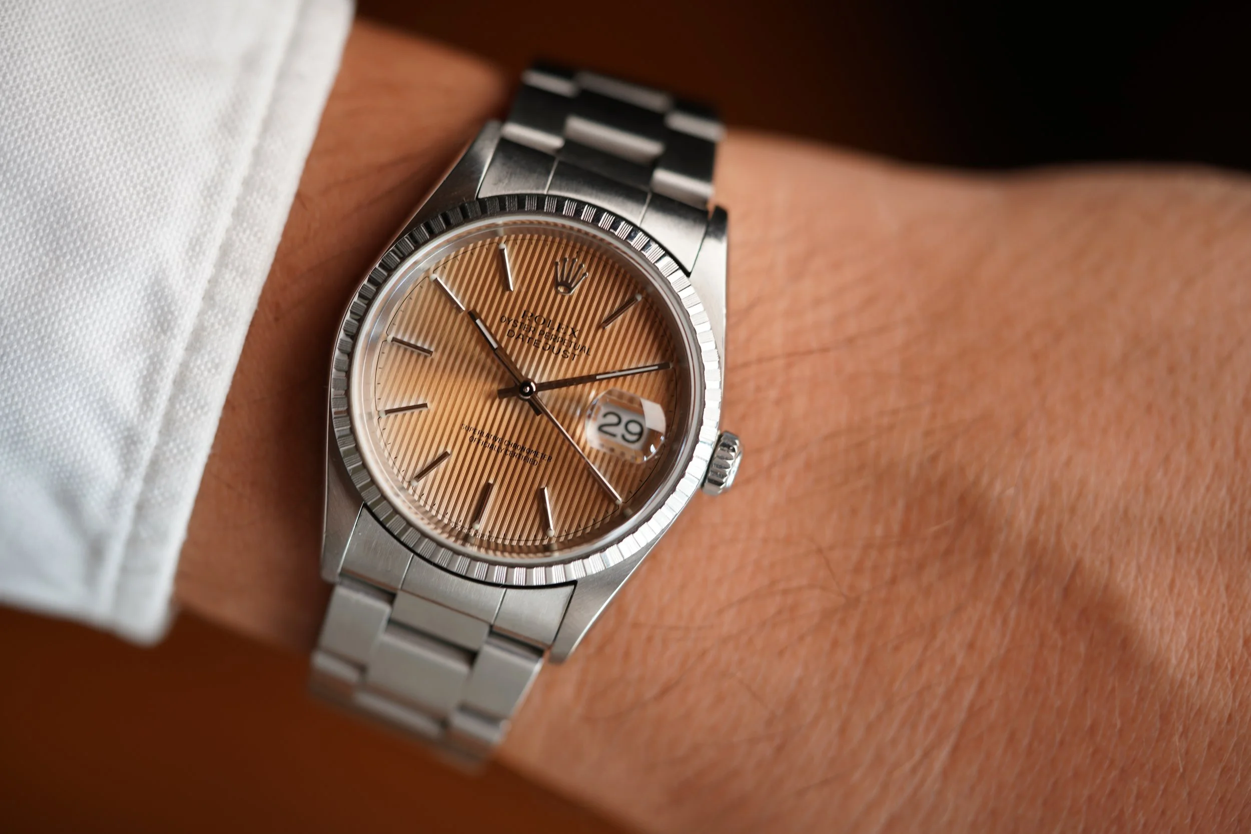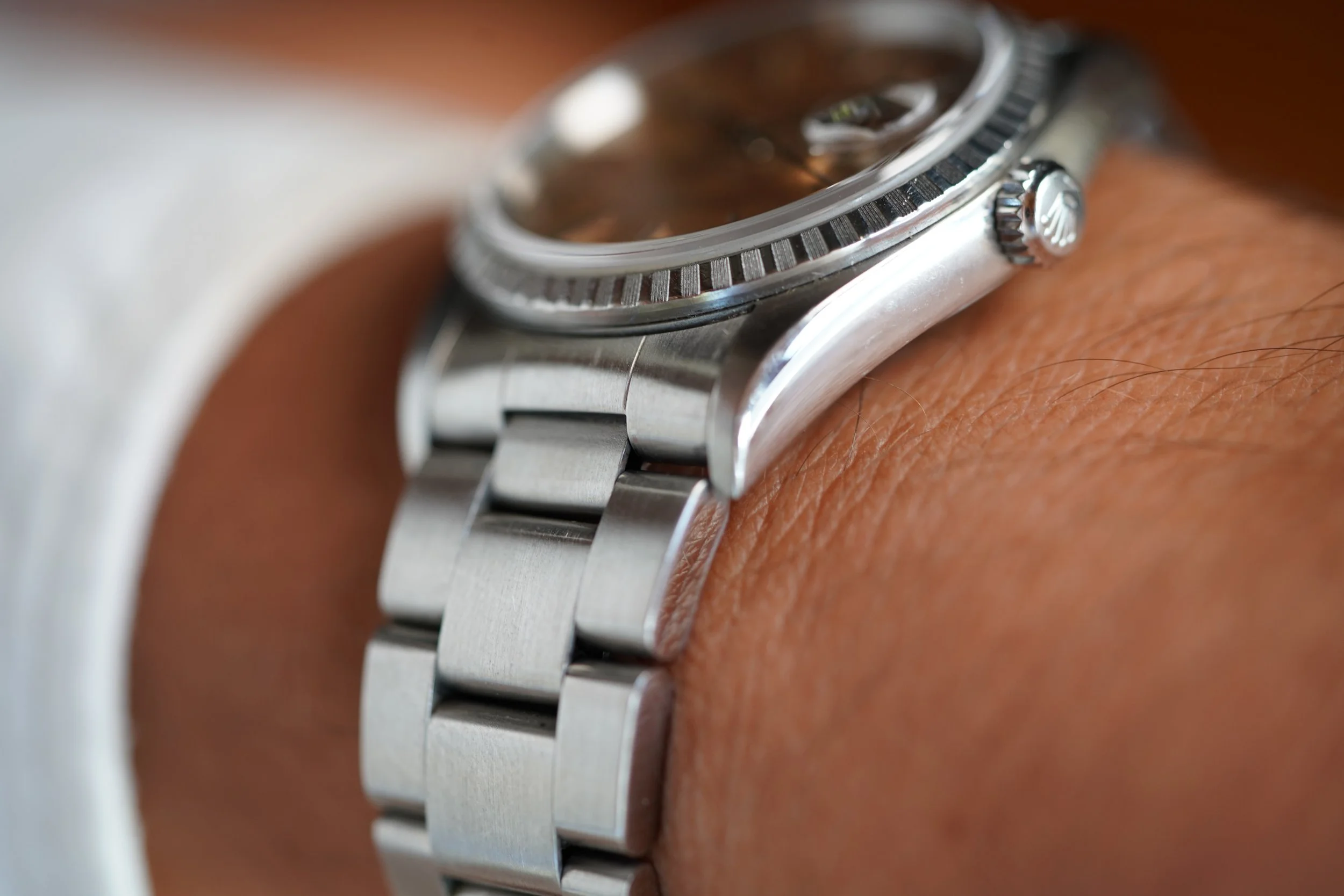 I absolutely love steel Rolex Datejusts. I recently wrote about them in our blog ‘Don't Sleep On This: The Simple Vintage Rolex Datejust In Steel’. I’m constantly amazed by the quality and differentiations of the dials that Rolex used in vintage Datejusts over the decades. I have found the Rolex Datejust to be one of the most versatile watches a person can have. This example has an outstanding tropical tapestry dial which is beautiful.
