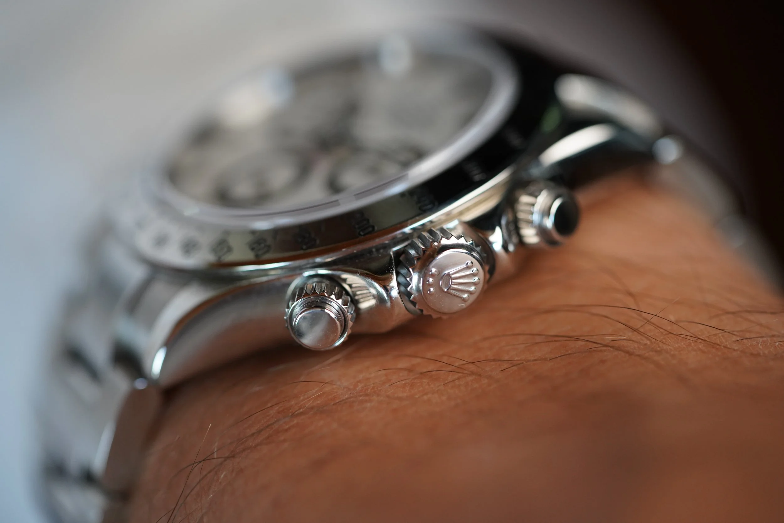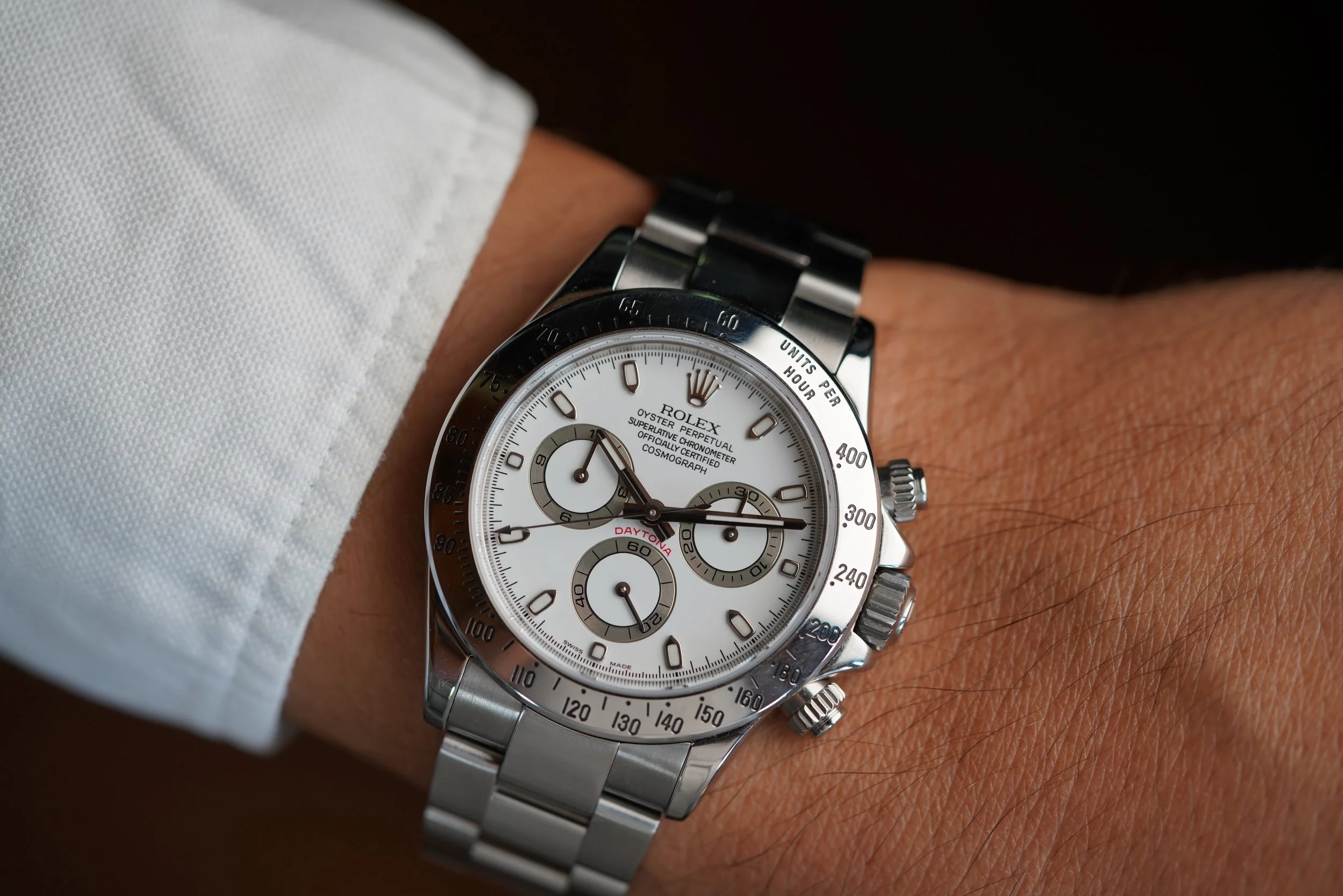 The Rolex Daytona reference 116520 is a fantastic automatic sports watch.. The case has been polished. It features a D serial dating to circa 2005-2006. The dial is slightly creamy and very attractive.