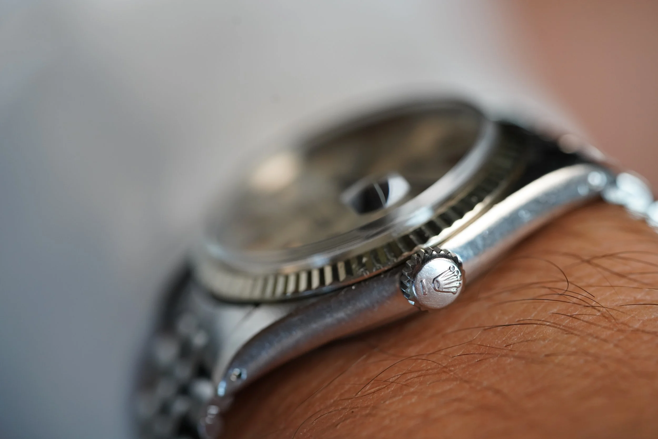 I absolutely love steel Rolex Datejusts. I recently wrote about them in our blog ‘Don't Sleep On This: The Simple Vintage Rolex Datejust In Steel’. I’m constantly amazed by the quality and differentiations of the dials that Rolex used in vintage Datejusts over the decades. I have found the Rolex Datejust to be one of the most versatile watches a person can have and the simplicity in this wide boy reference 1601 is so beautiful.