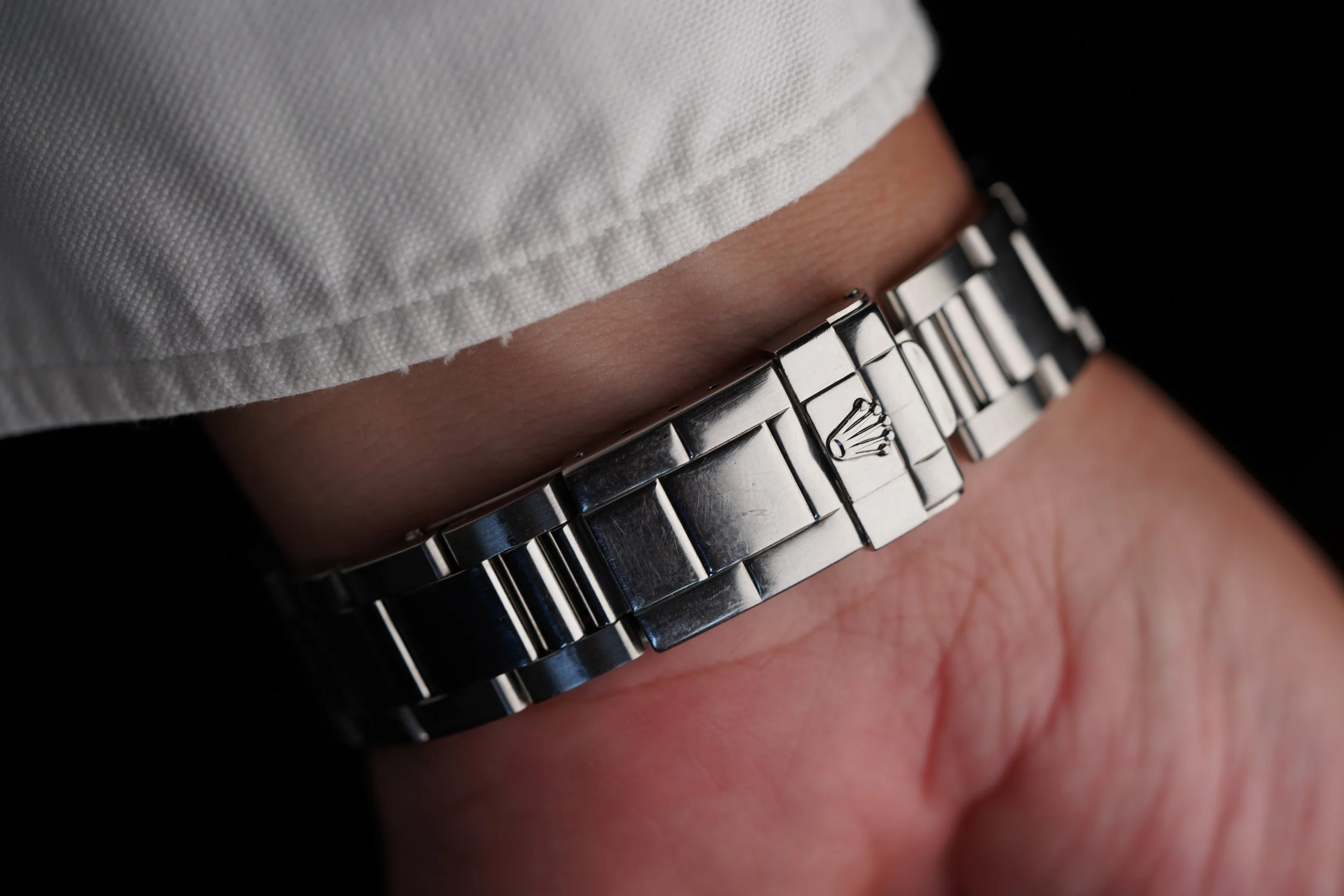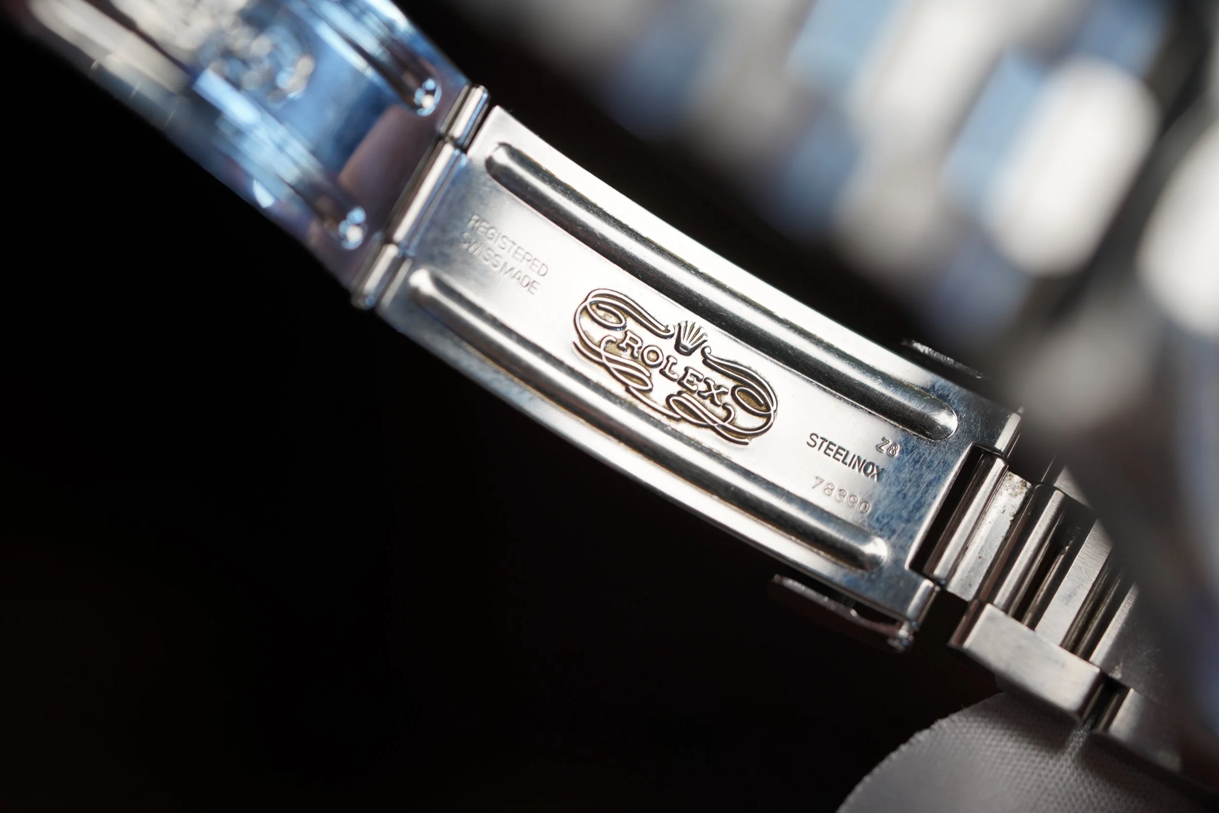 The Rolex Zenith Daytona reference 16520 is an outstanding stainless steel sports chronograph. It features a U serial number, which dates to circa 1997. It is paired with a reference 78390 Oyster bracelet with a Z clasp code dating to circa 1997. The case appears to be unpolished. It measures 40mm in diameter. This example features a black dial with tritium luminous material.