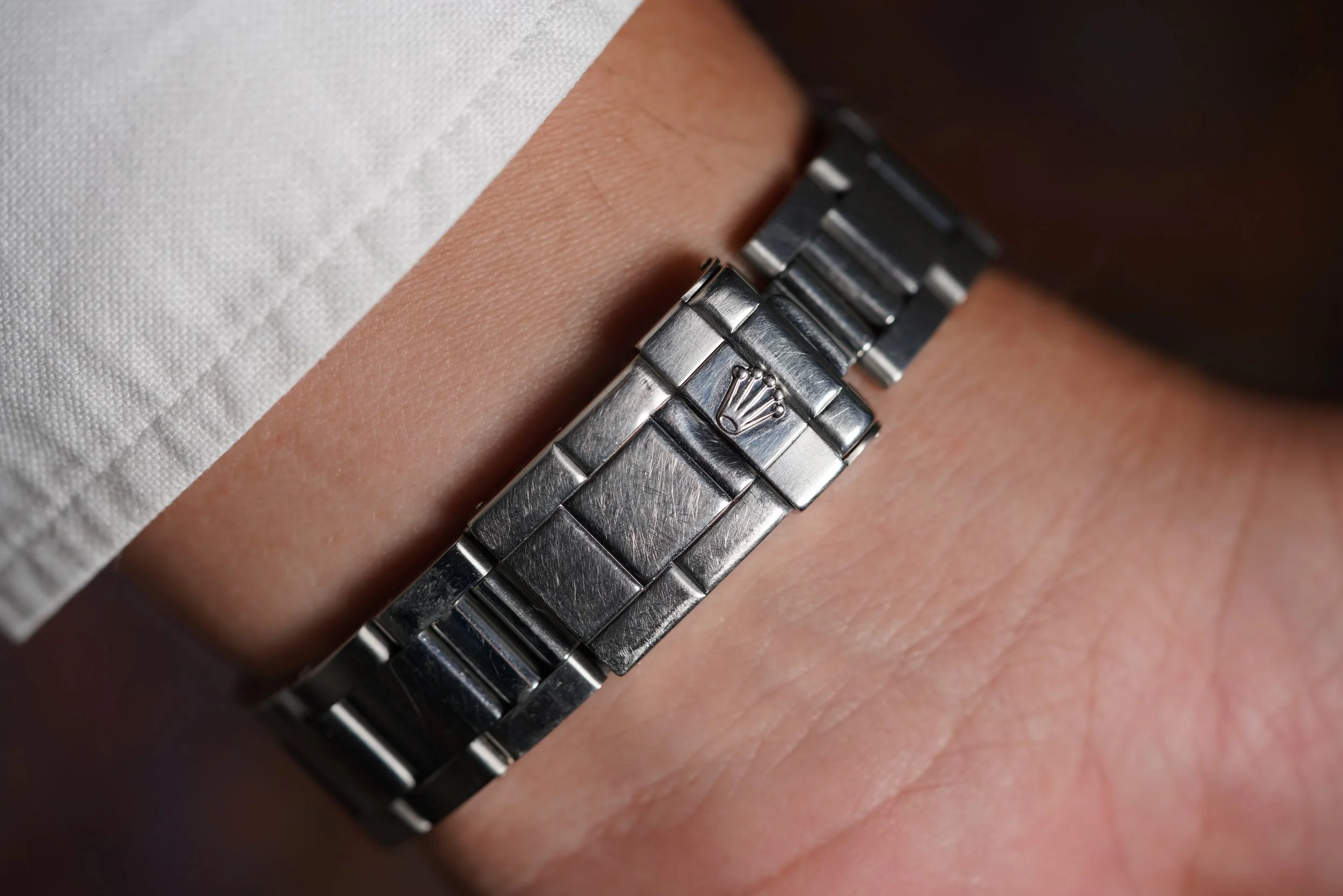 This is an outstanding example of a Rolex Daytona reference 16520 with a white dial. It has a U92 serial dating it to circa late 1997. The “Zenith Daytonas” have appreciated significantly the last few years as people respect the modified Zenith El Primero movements that Rolex used for their first automatic Daytonas starting in 1988 until circa 2000. This is example features a crisp unpolished case and unpolished bracelet. It measures 40mm in diameter (46mm lug-to-lug).