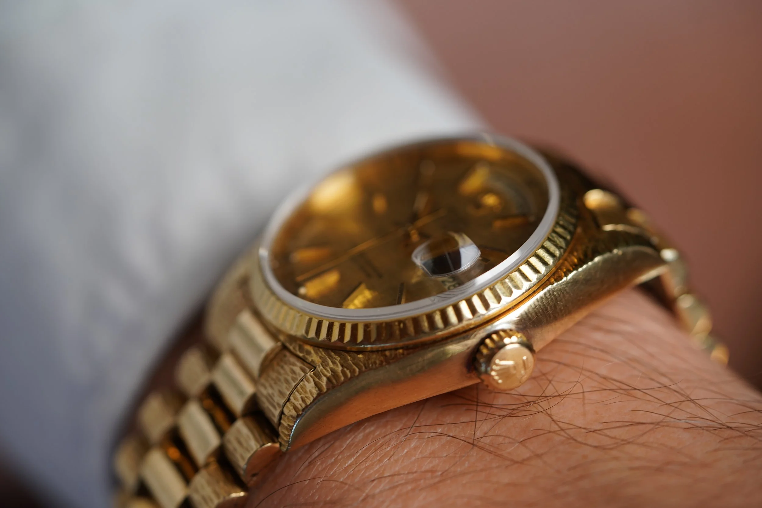 Rolex “John Bull” Champagne Linen Day-Date Ref. 18038 Unpolished