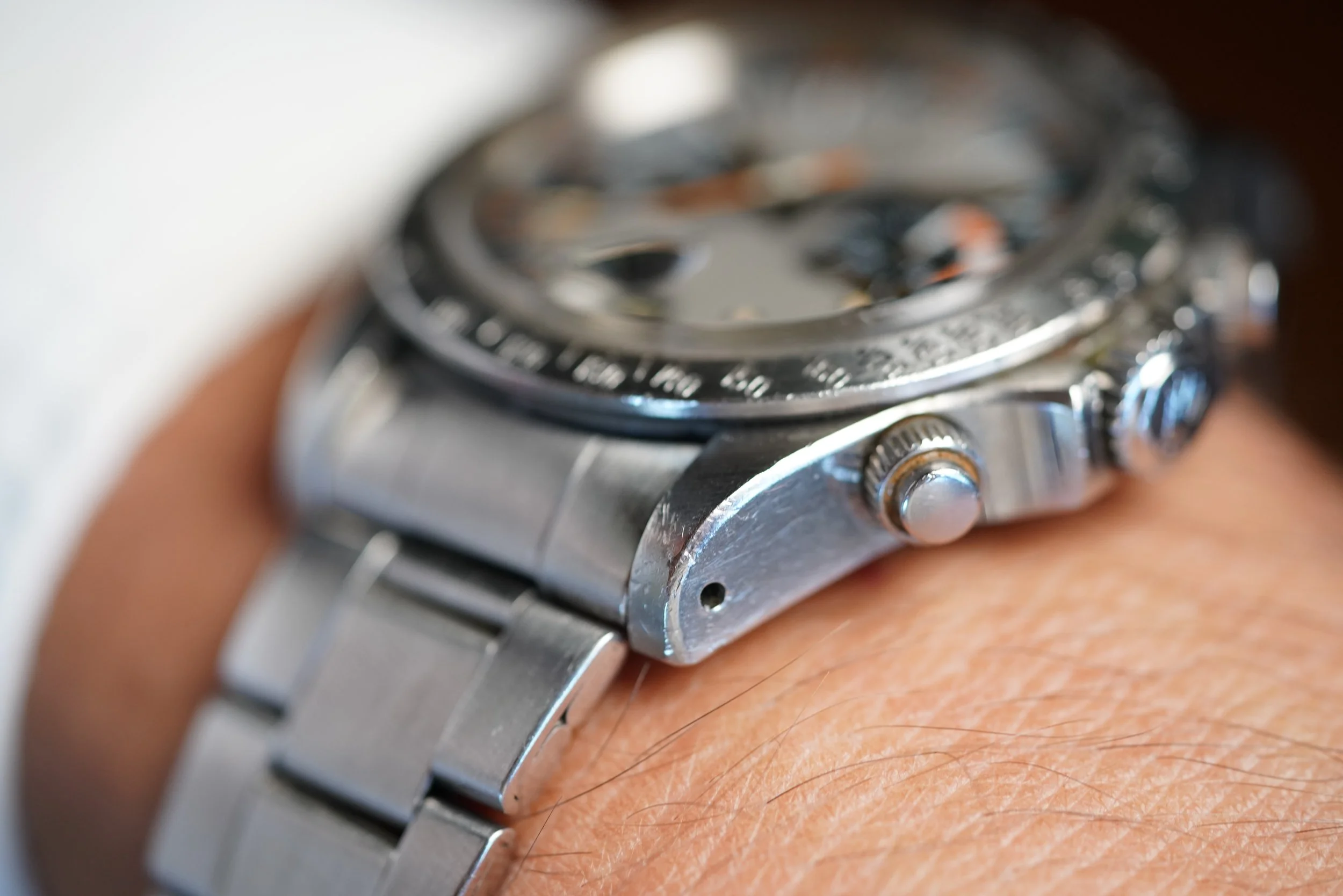 The watch does not come with box and papers. It was recently serviced and is running well. The watch just passed a water resistance test of 5 bar.