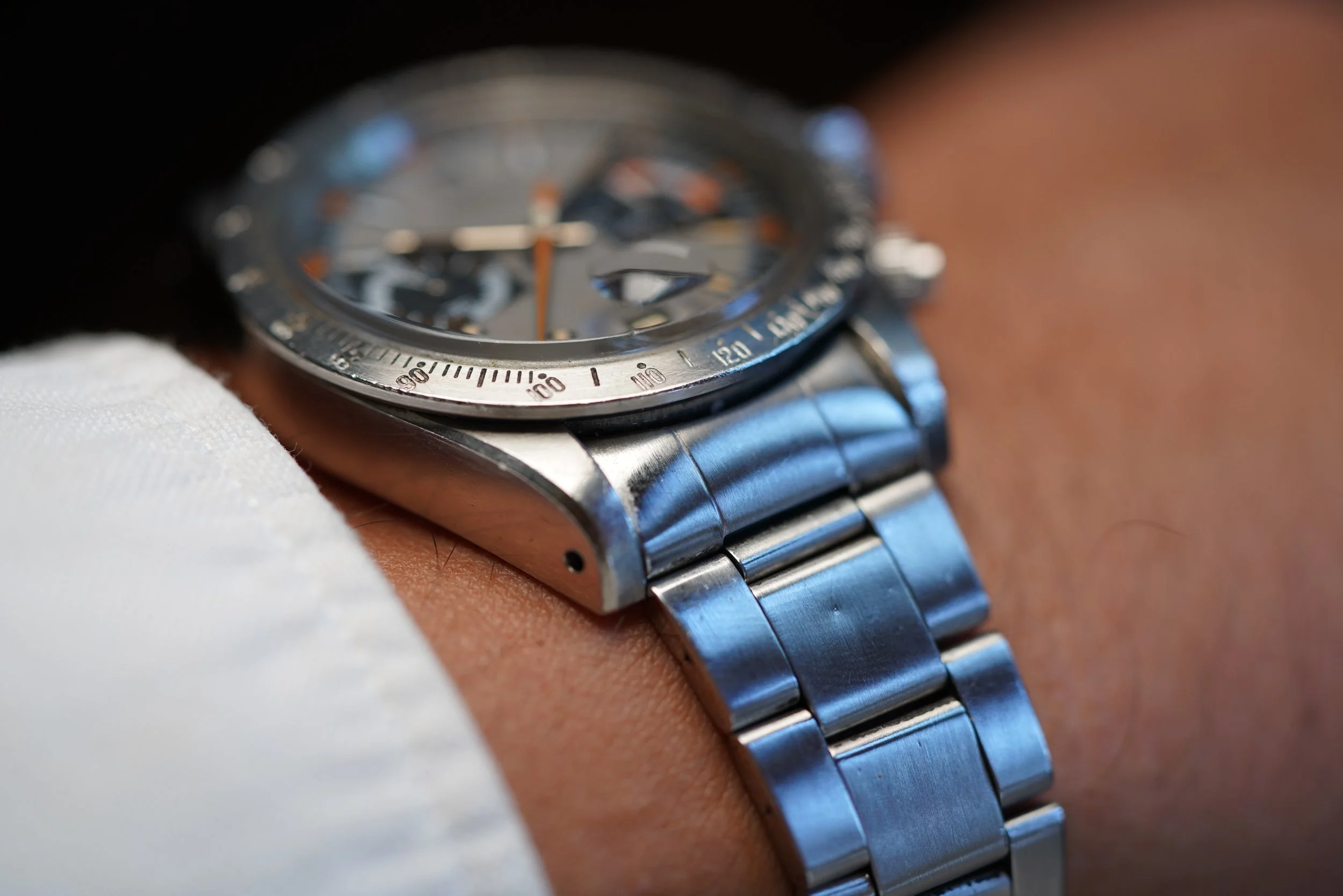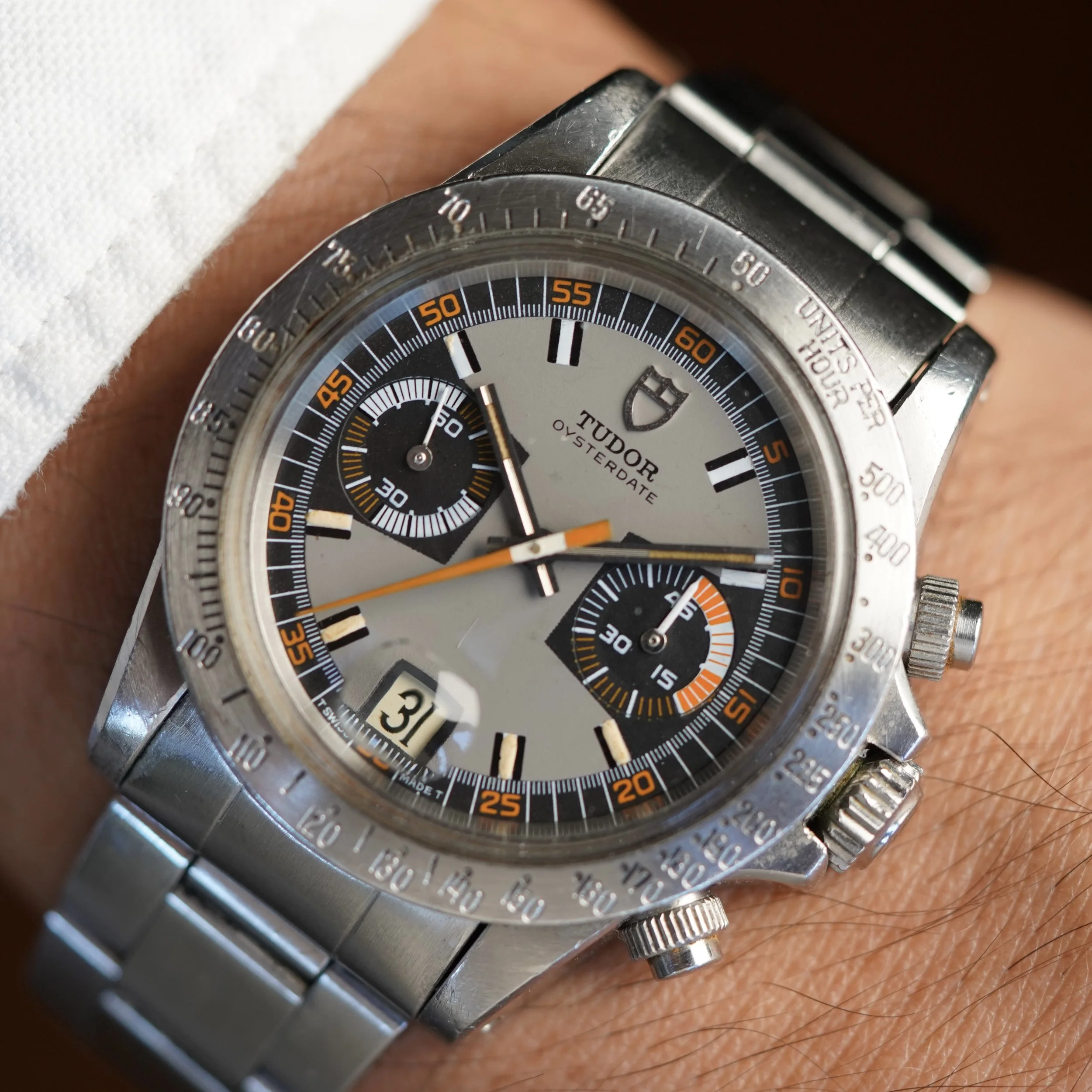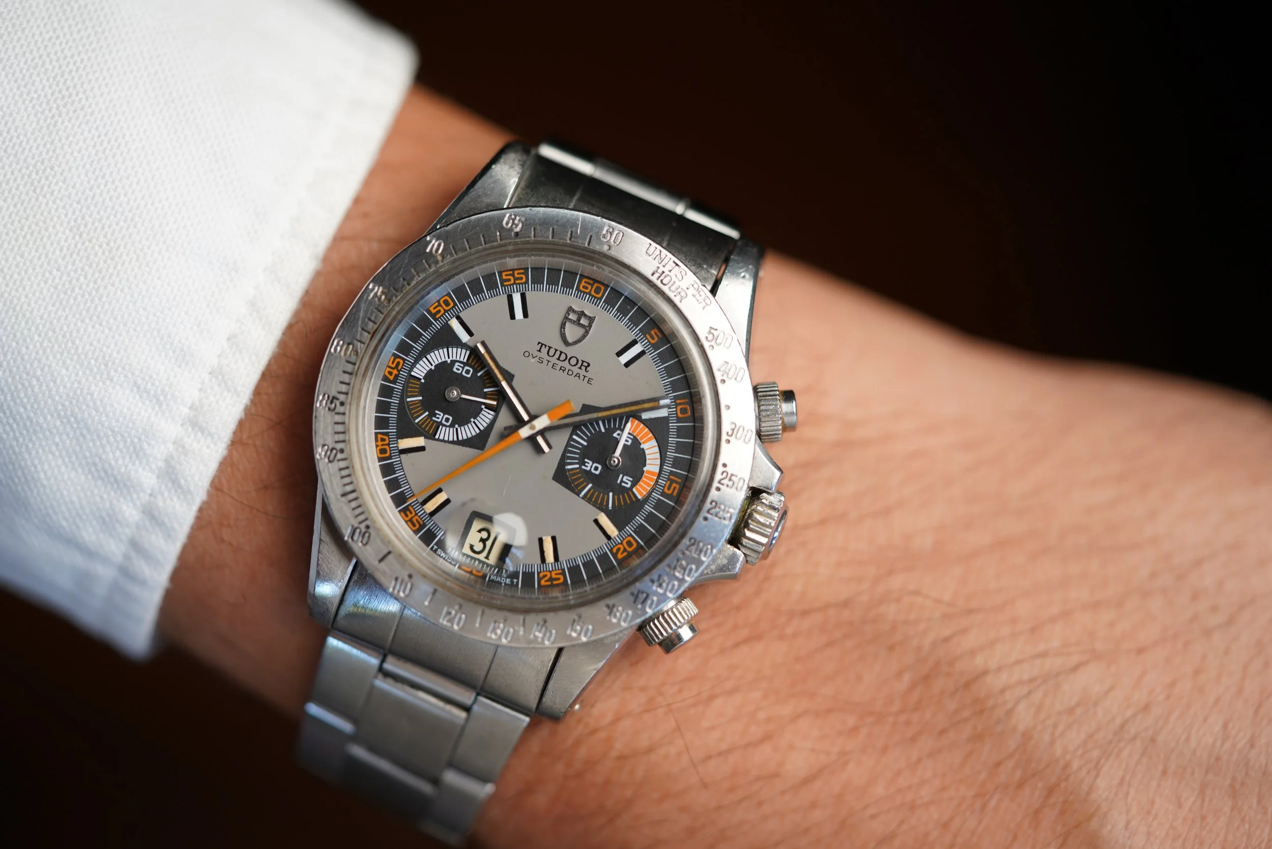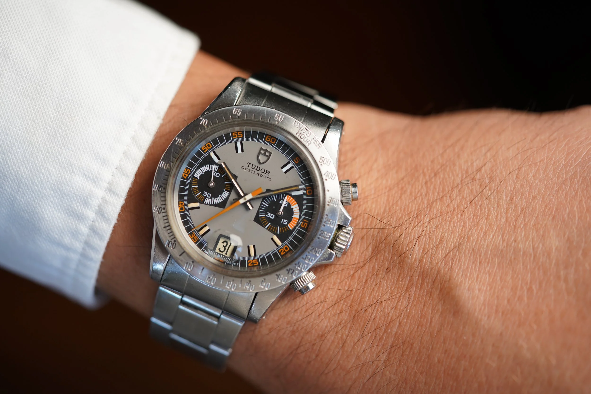 The Monte Carlo reference 7159/0 is an awesome and rare chronograph in the TUDOR catalog. The watch is highly admired based on its vibrant orange accents and extremely cool dial design. This example dates to circa 1972 with an 775,XXX serial.