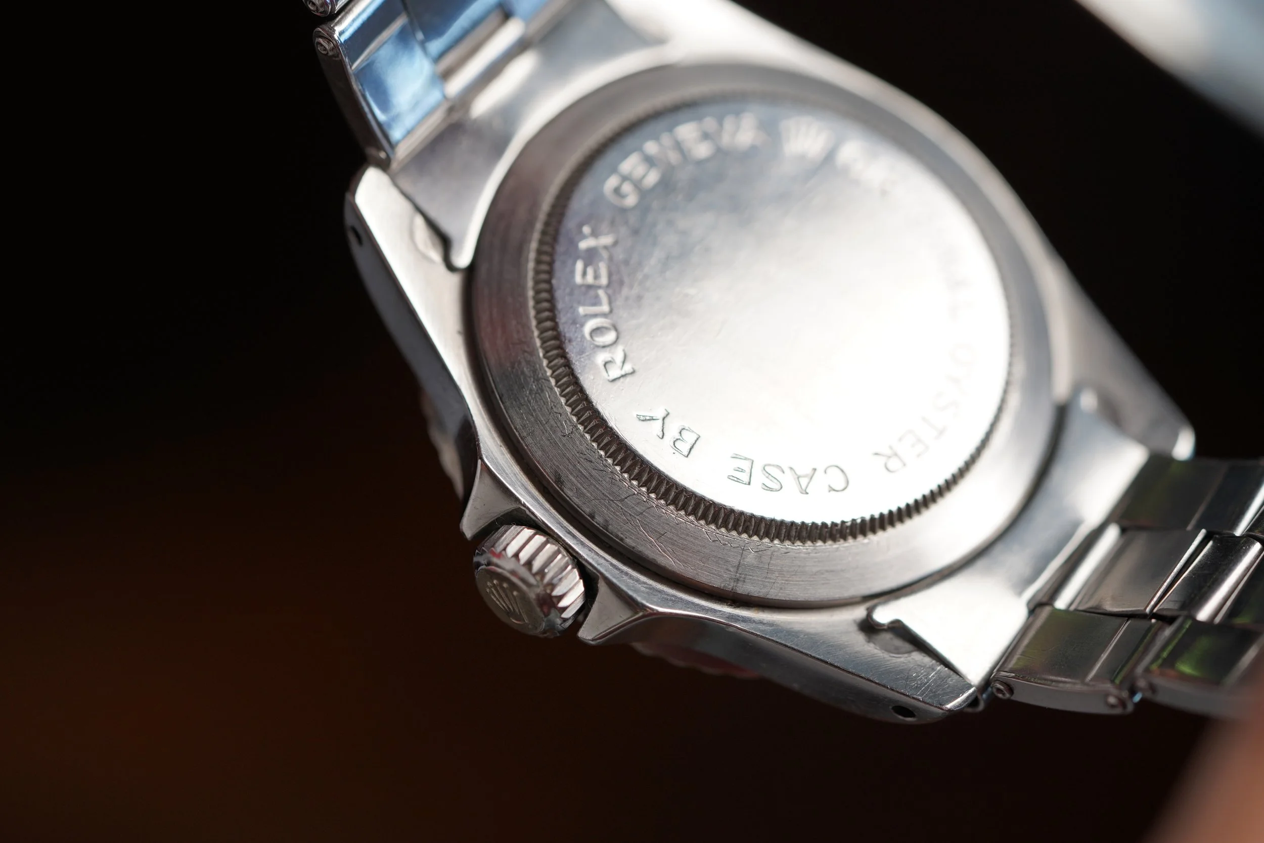 It passed a 5 bar water test just recently. It has been lightly polished.