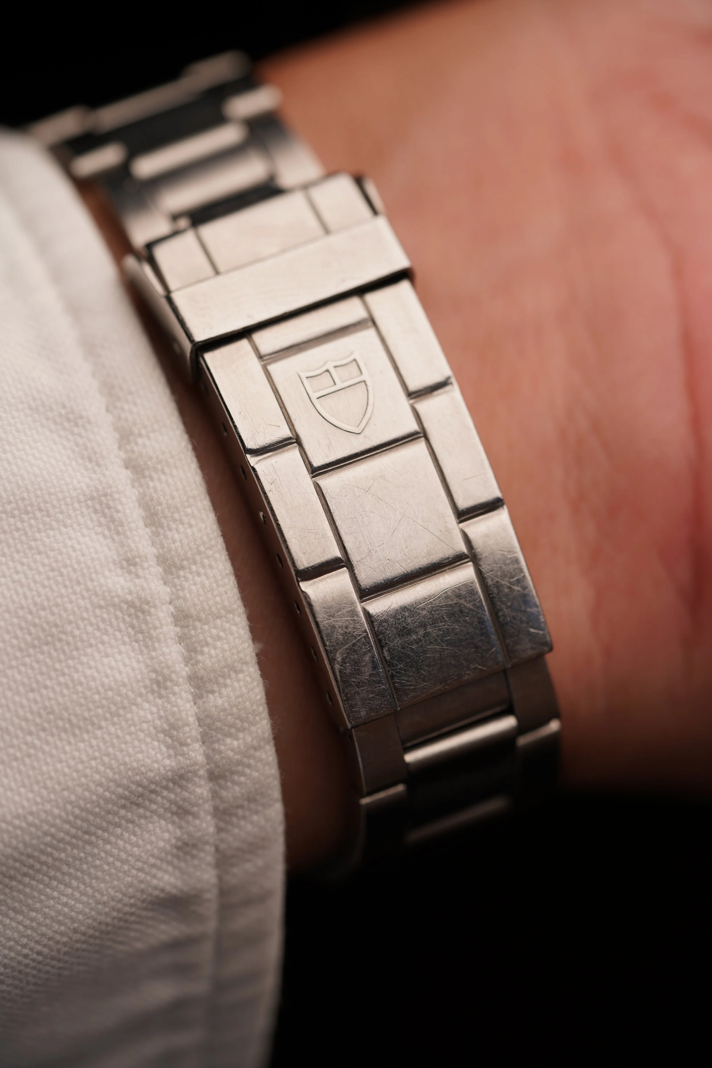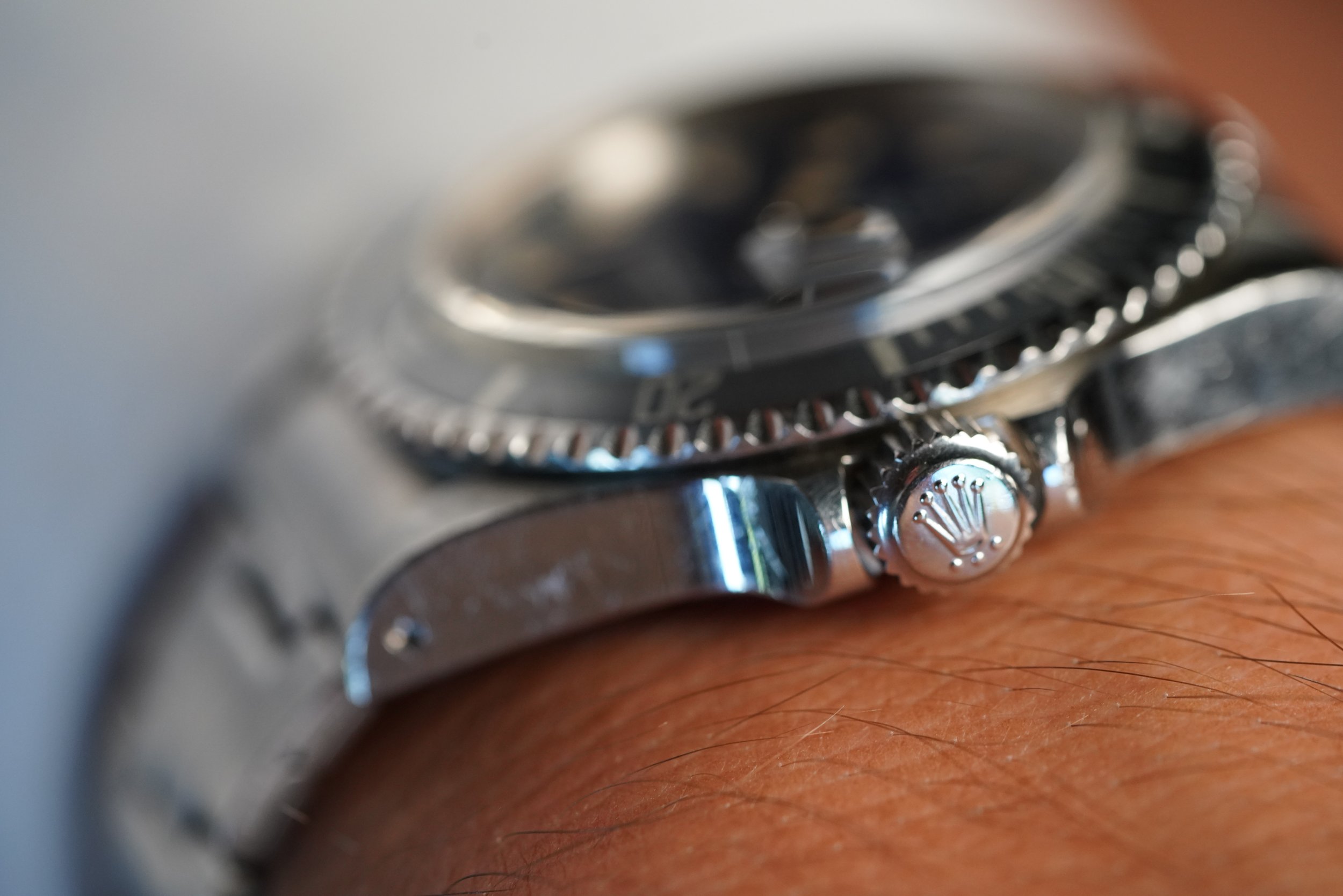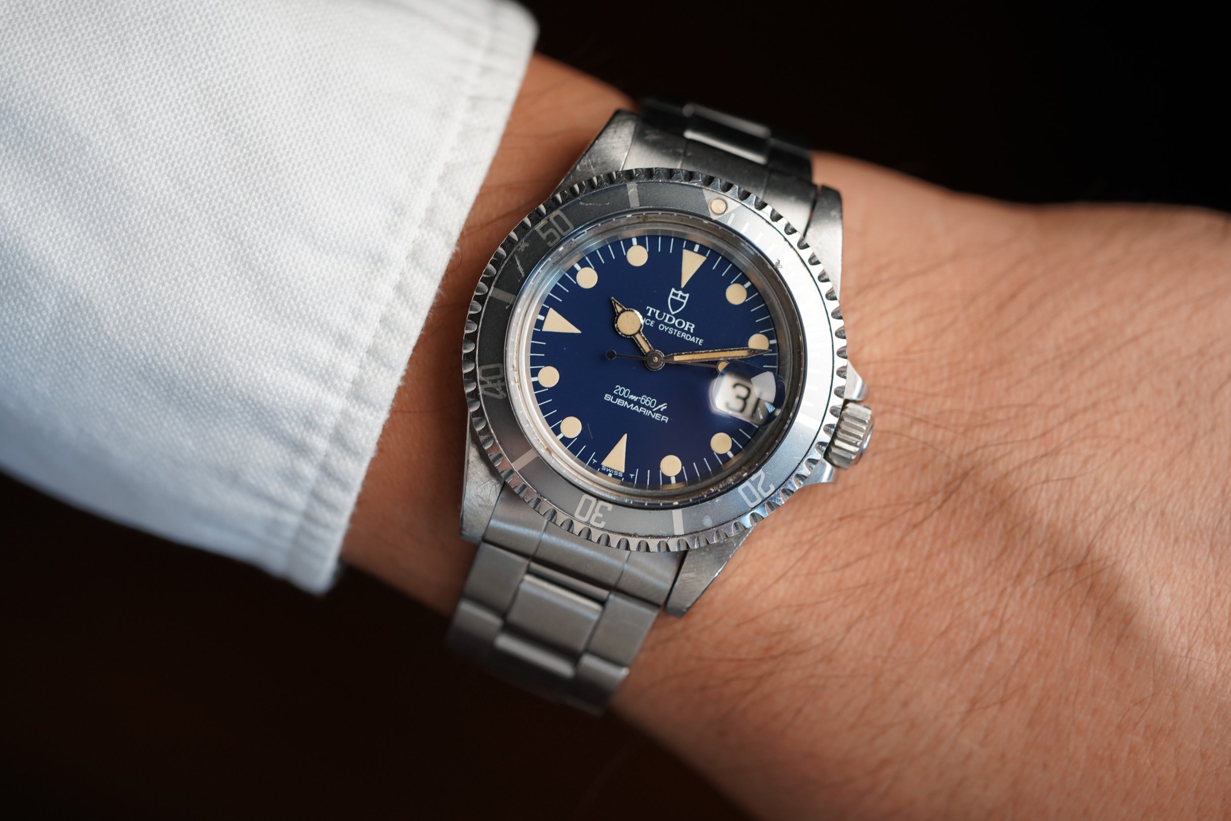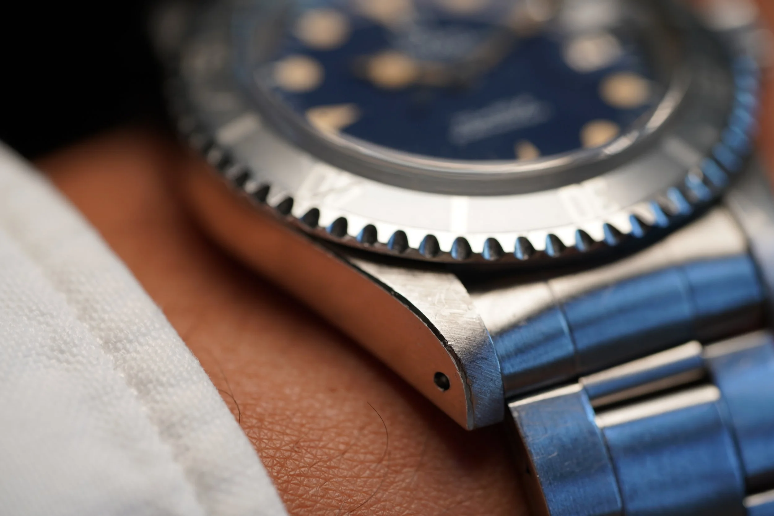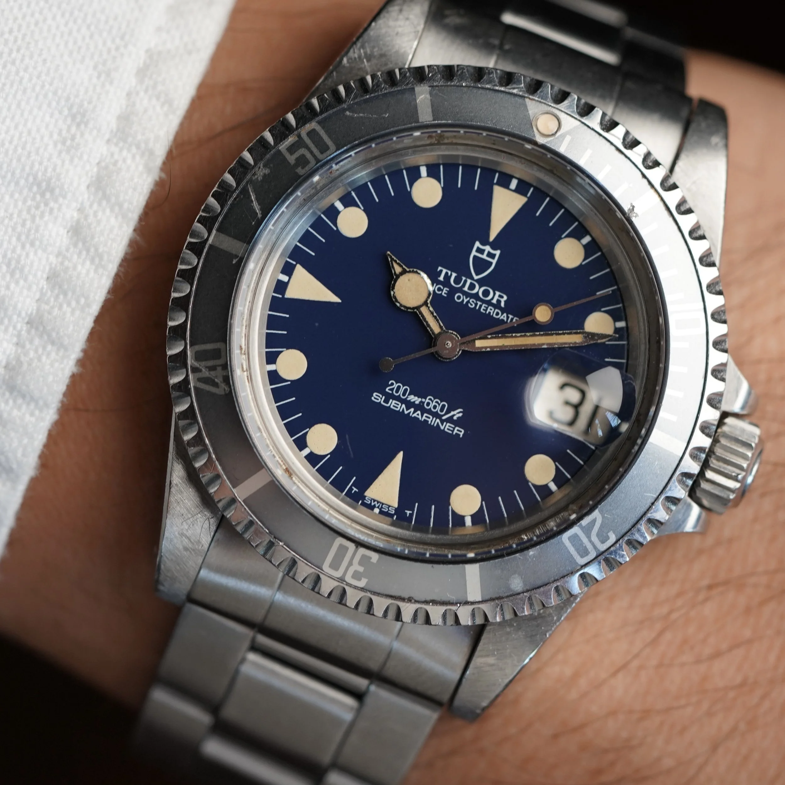 This Tudor Submariner reference 76100 is a very cool watch example. The case appears to be unpolished. The watch dates to circa 1984. It features the lollipop hand. The hour hand has been relumed.
