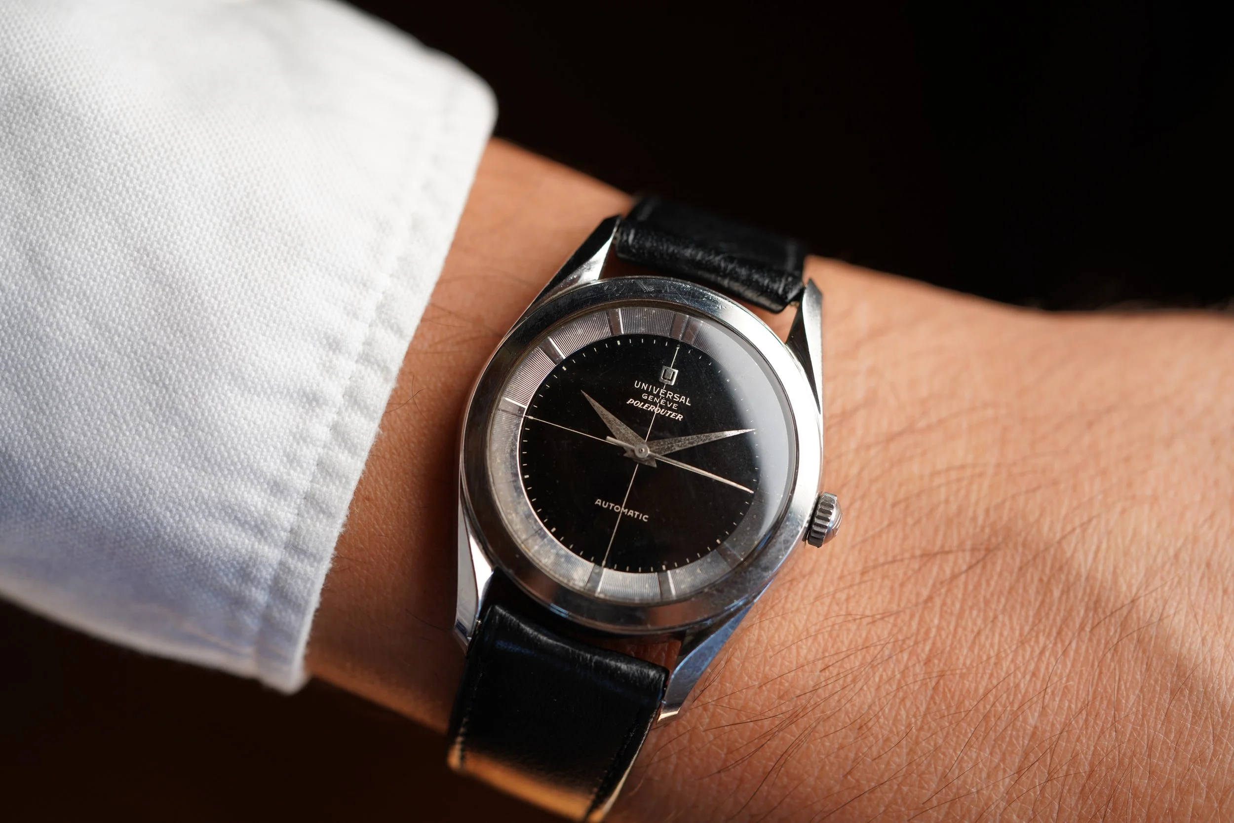 Universal Genève Polerouter Black Gilt Dial Reference S20217-1 Unpolished