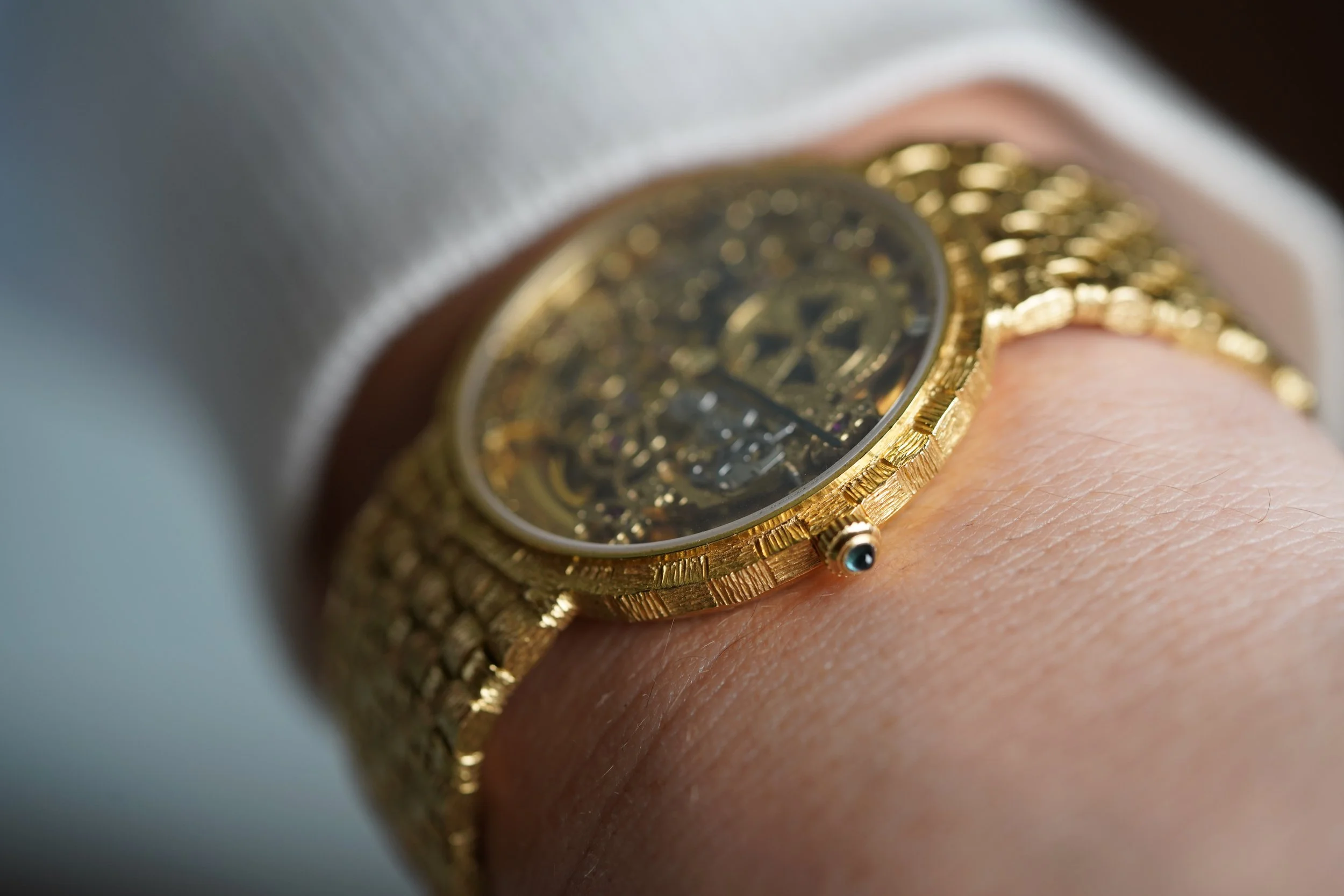 This Vacheron Constantin Patrimony 43030-206J is an incredible timepiece in 18K yellow gold. It measures 34mm in diameter. It features an ornately finished case and bracelet. The bracelet measures a wrist up to 6.9 inches. The watch dates to the 1990s.
